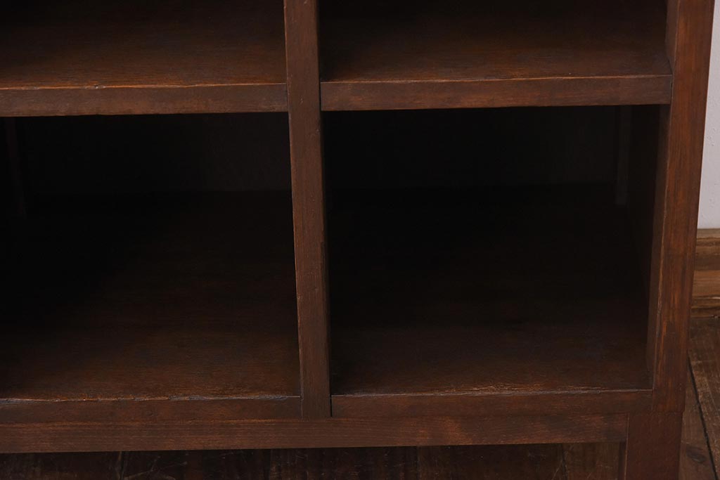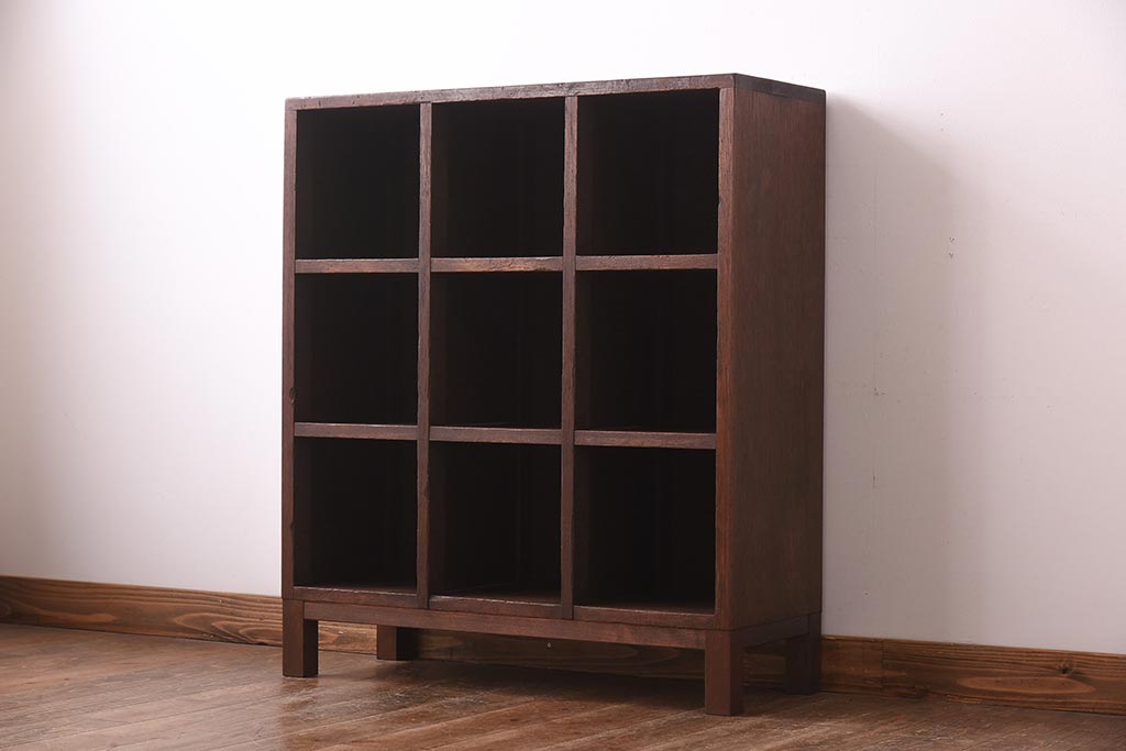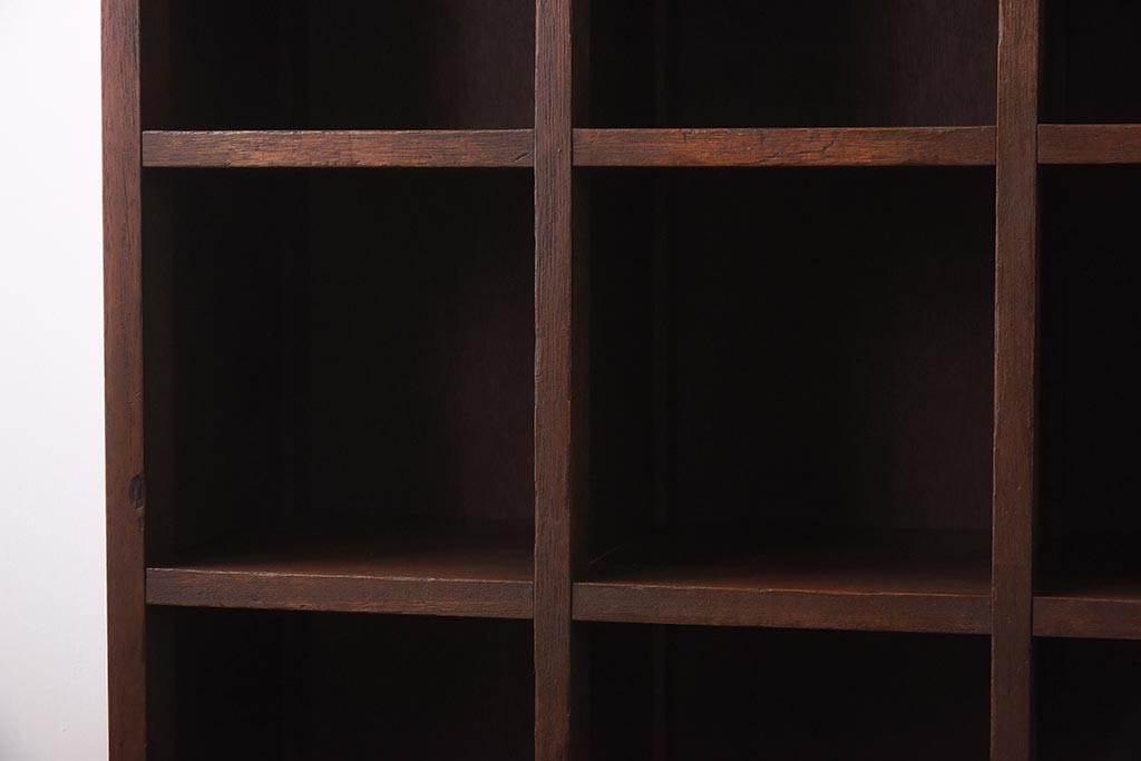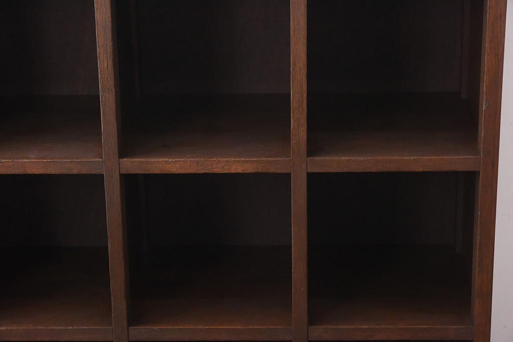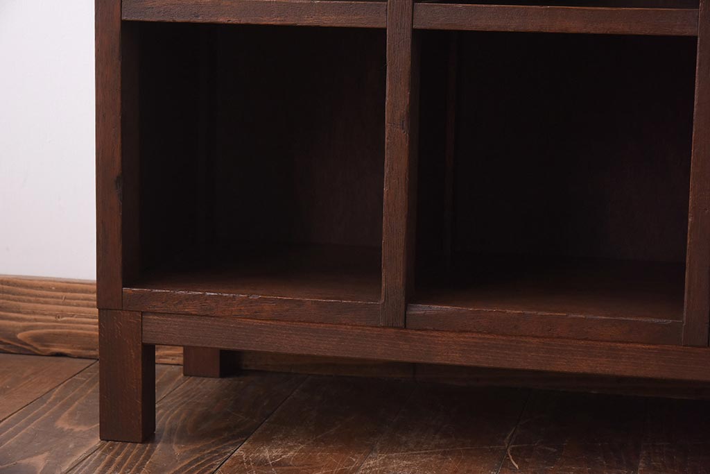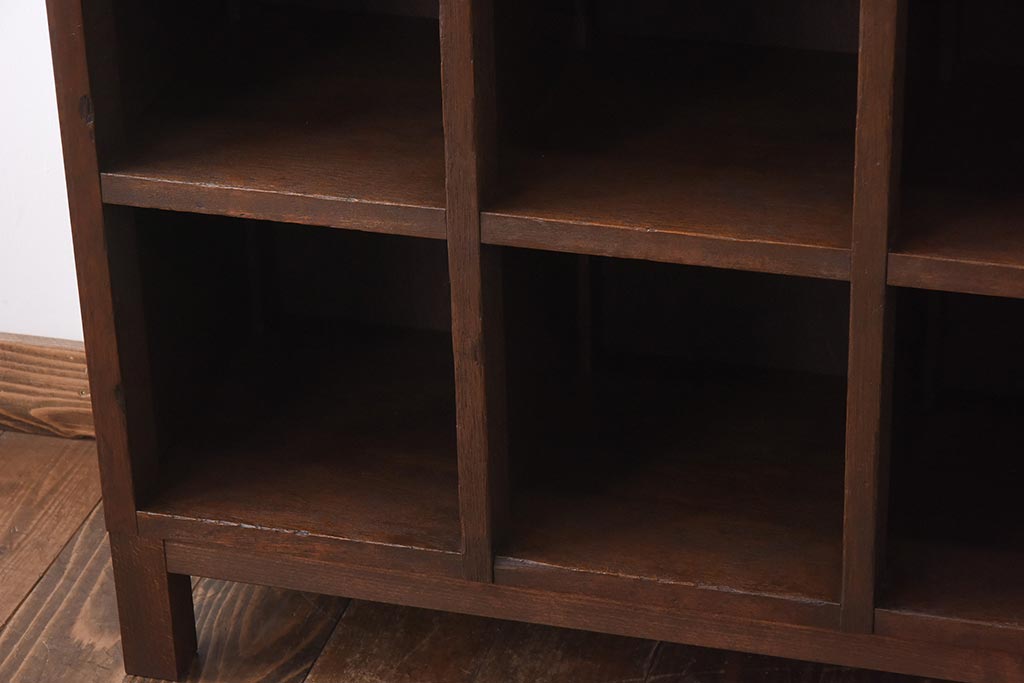 レトロ家具 昭和レトロ 学校の下駄箱をリメイクした味のある脚付きマス目棚(オープンラック、飾り棚)