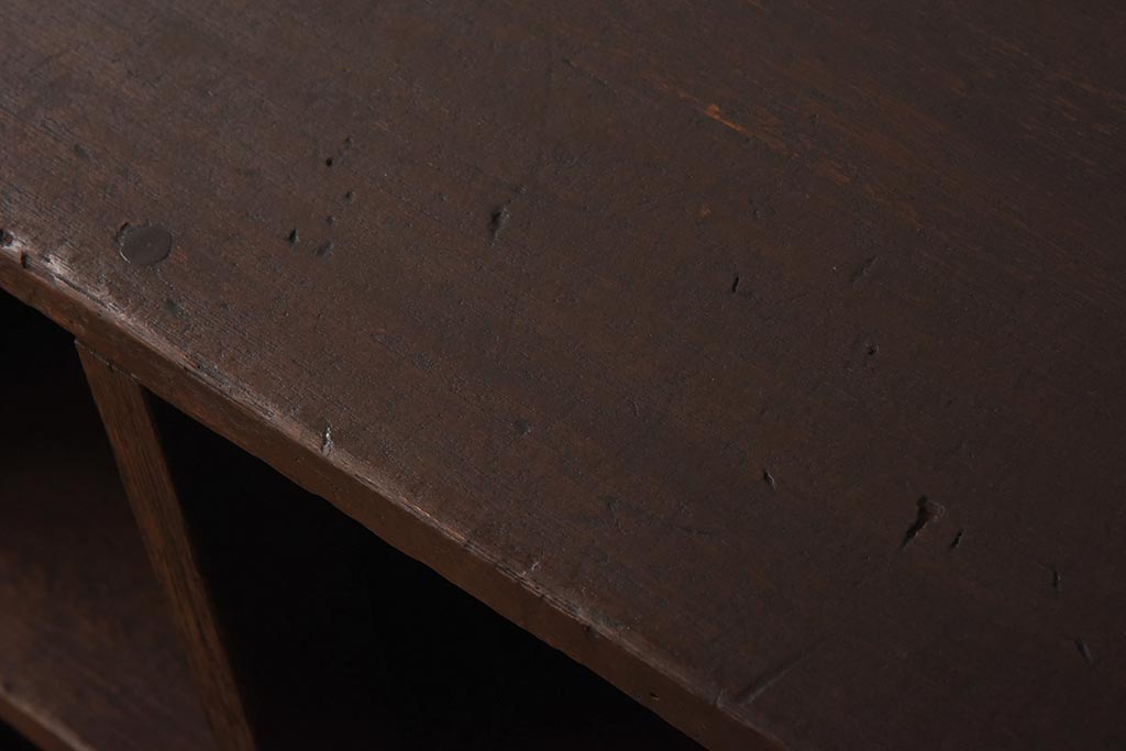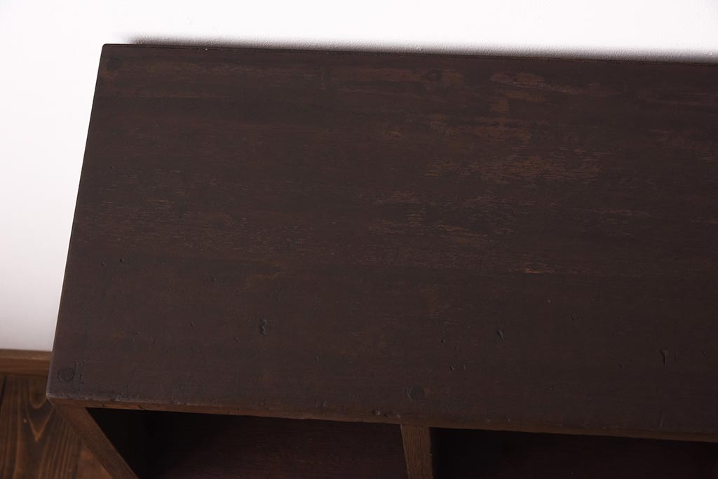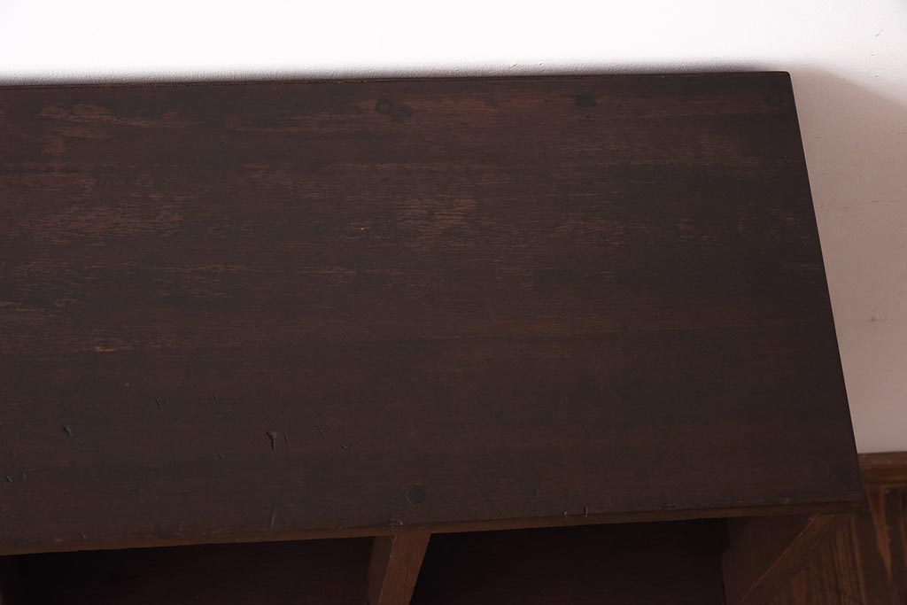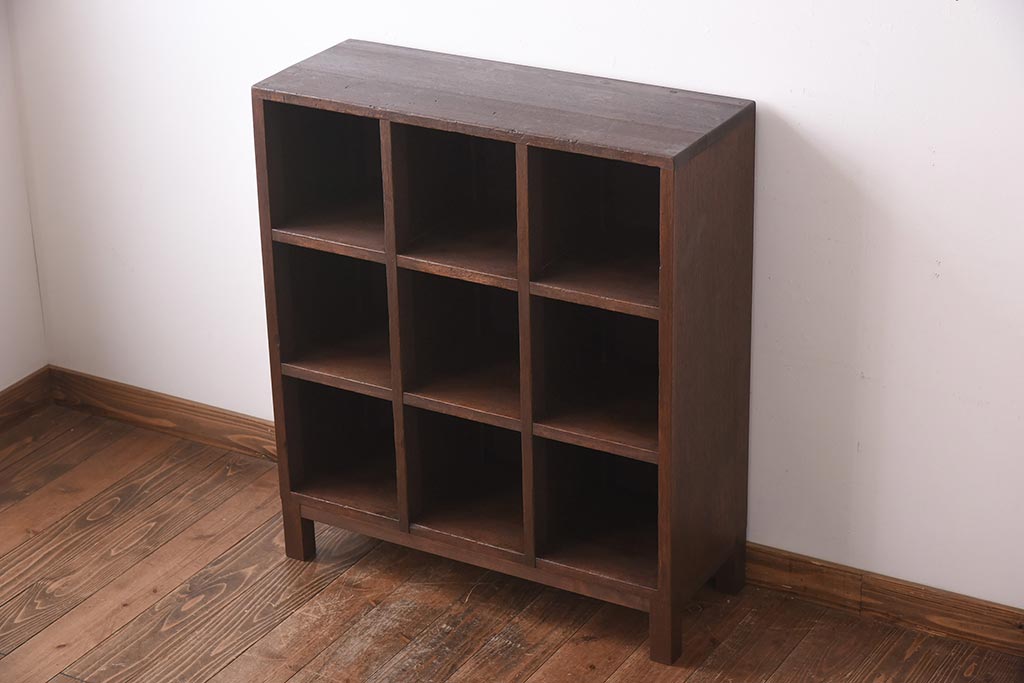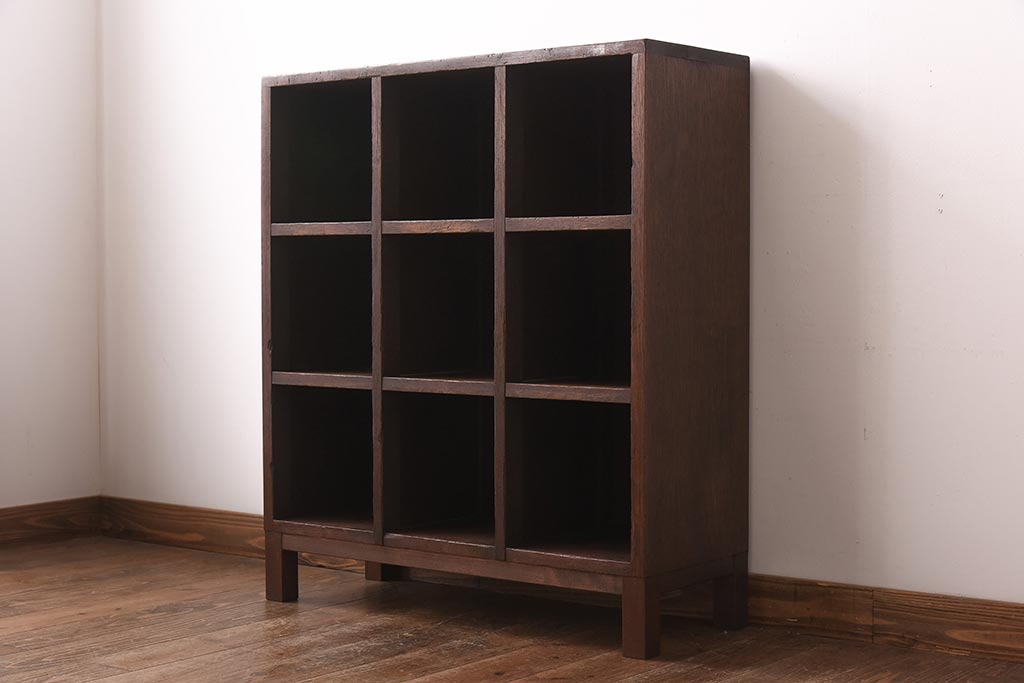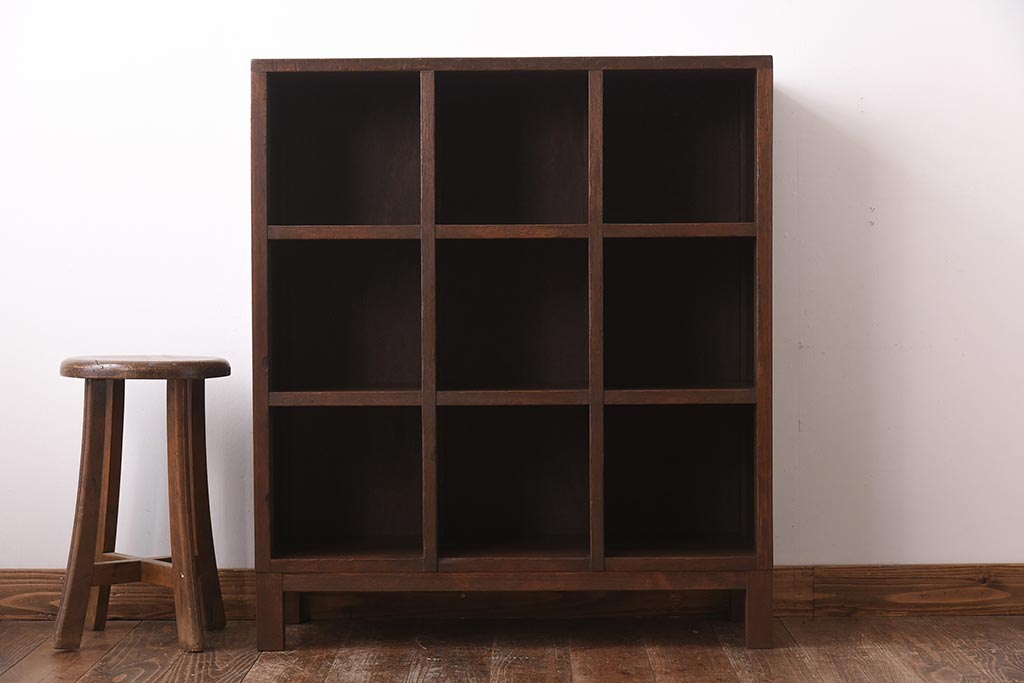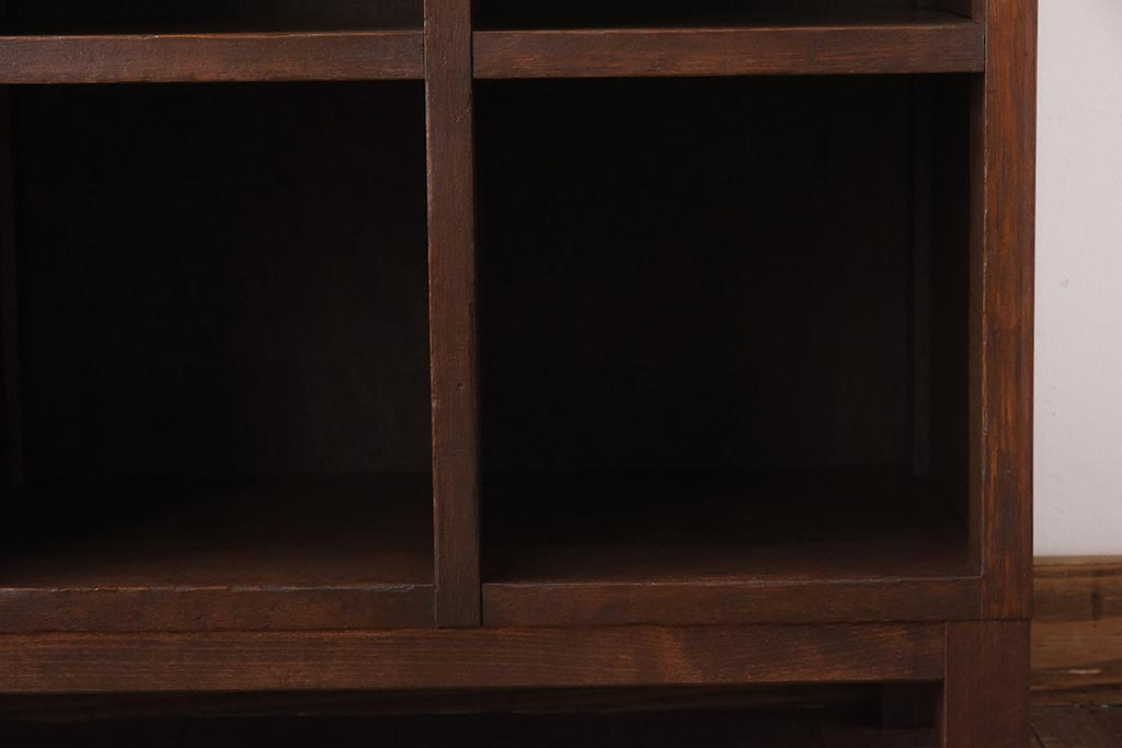 レトロ家具 昭和レトロ 学校の下駄箱をリメイクした味のある脚付きマス目棚(オープンラック、飾り棚)
