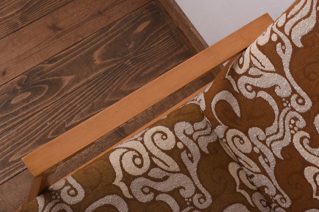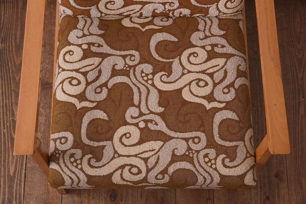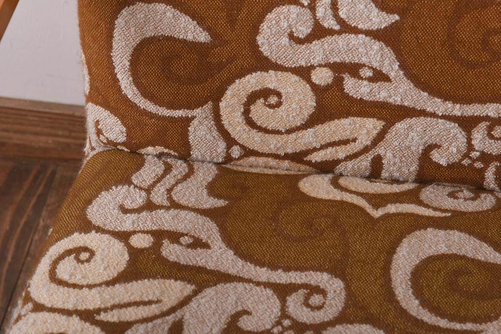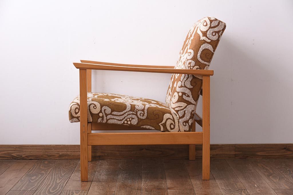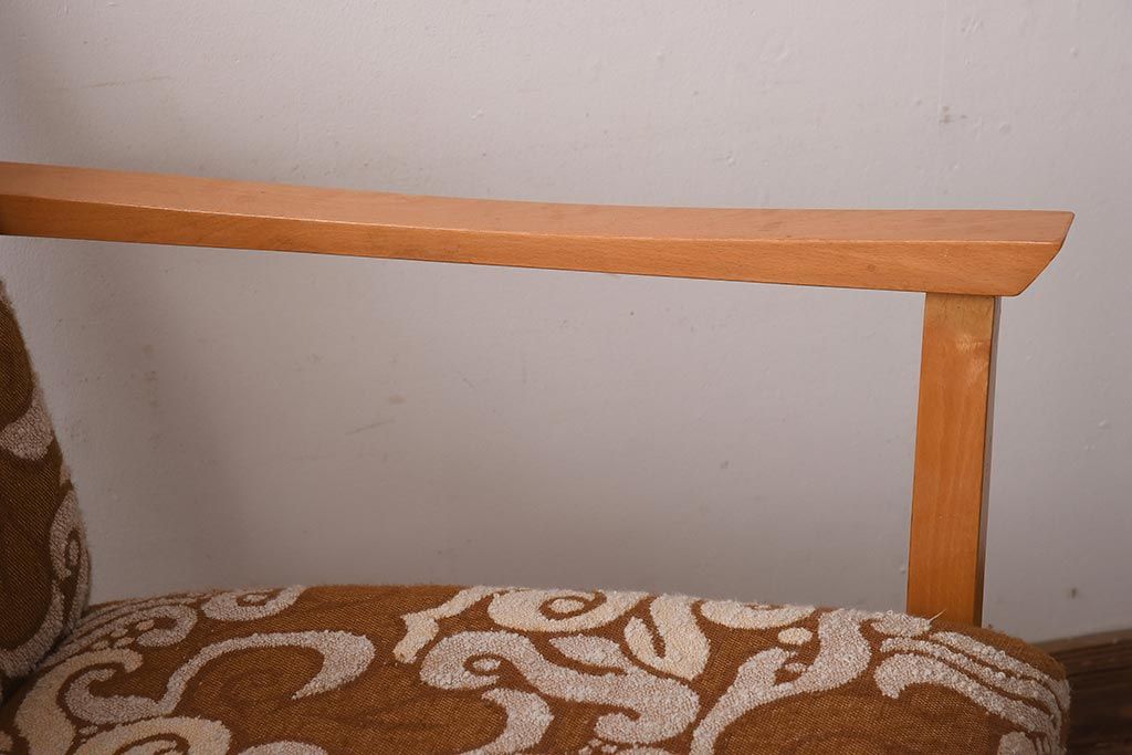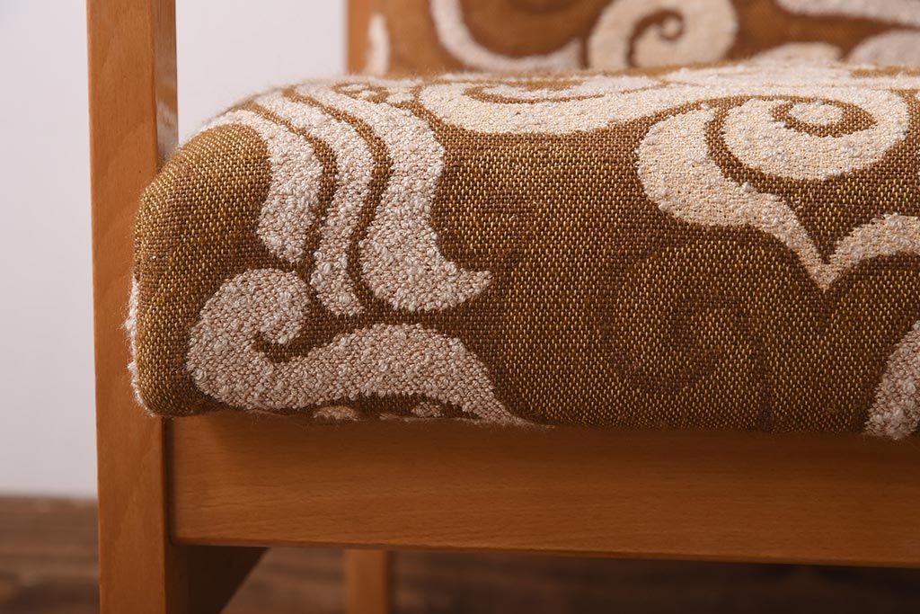 ヴィンテージ家具 イギリスビンテージ ビーチ材 オリエンタル風の模様が目を引く一人掛けソファ(2)
