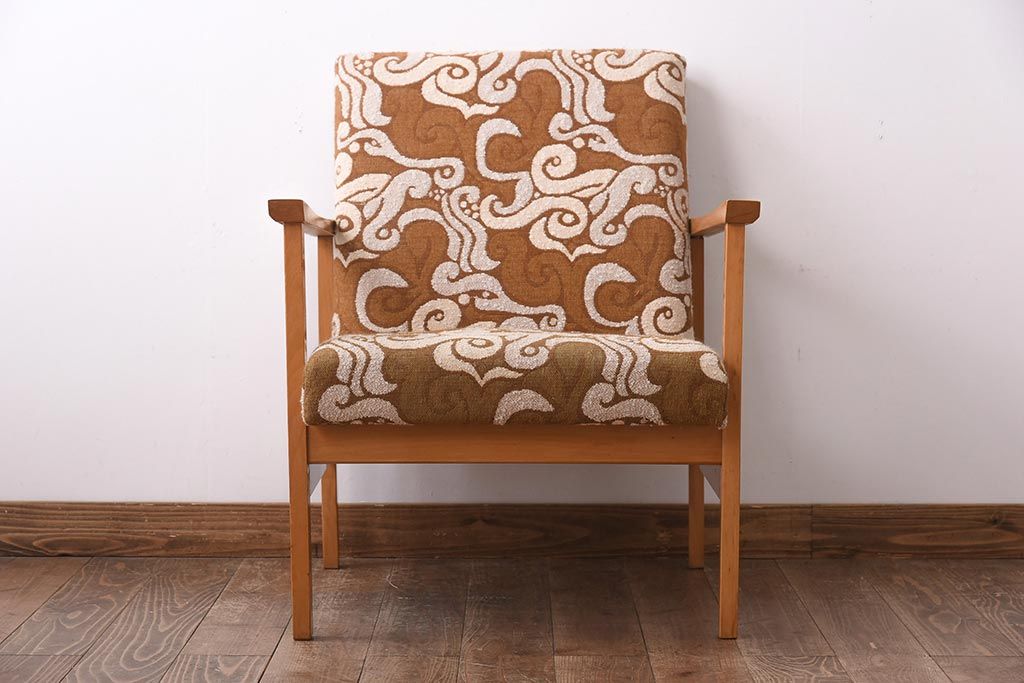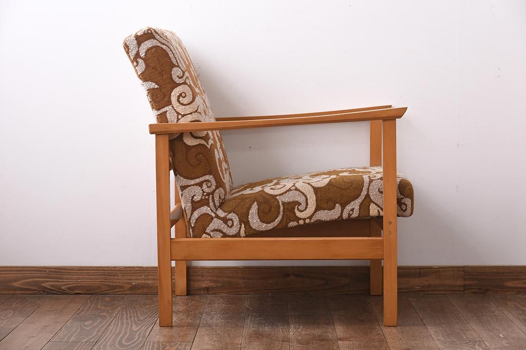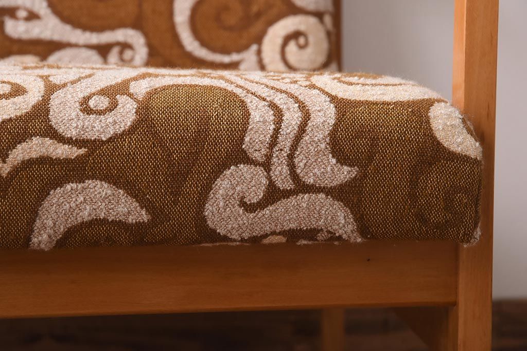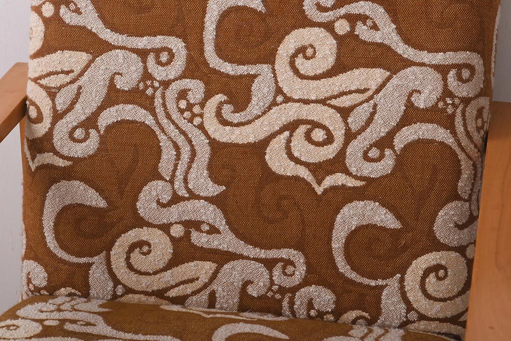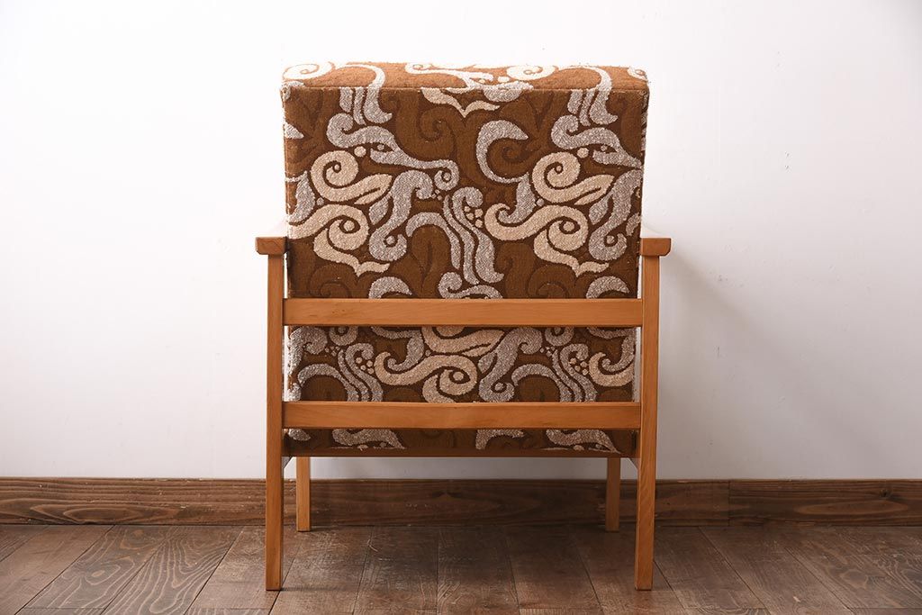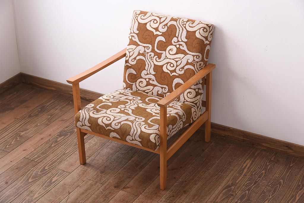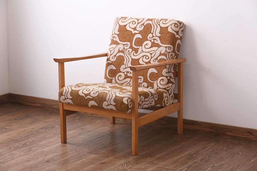 ヴィンテージ家具 イギリスビンテージ ビーチ材 オリエンタル風の模様が目を引く一人掛けソファ(2)