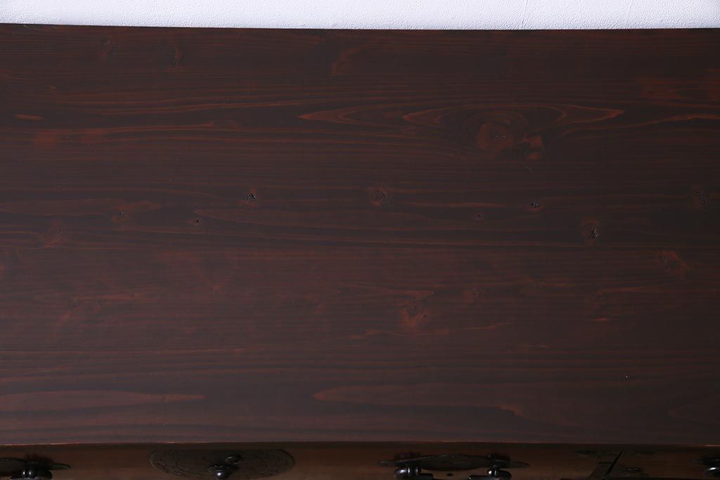 ラフジュ工房> 和箪笥 > アンティーク家具 和製アンティーク リメイク 前面栗材 細かな装飾の金具が目を引く米沢箪笥ローボード(ローチェスト、引き出し、和タンス)