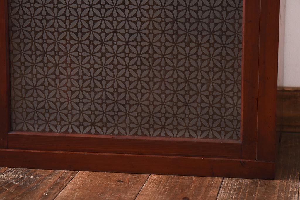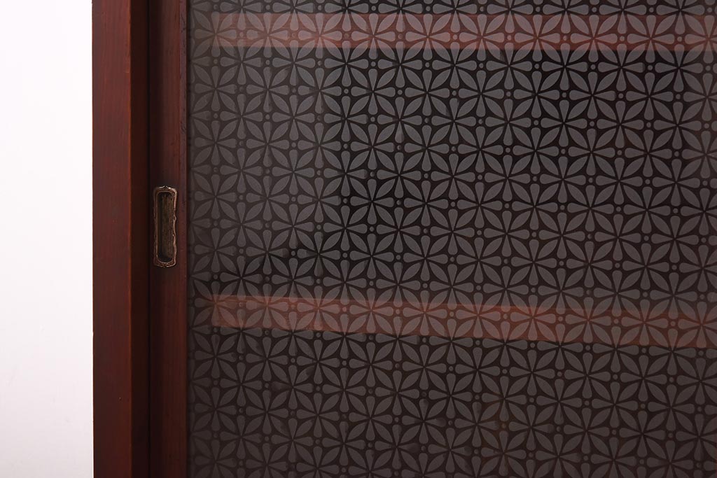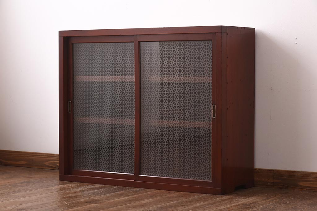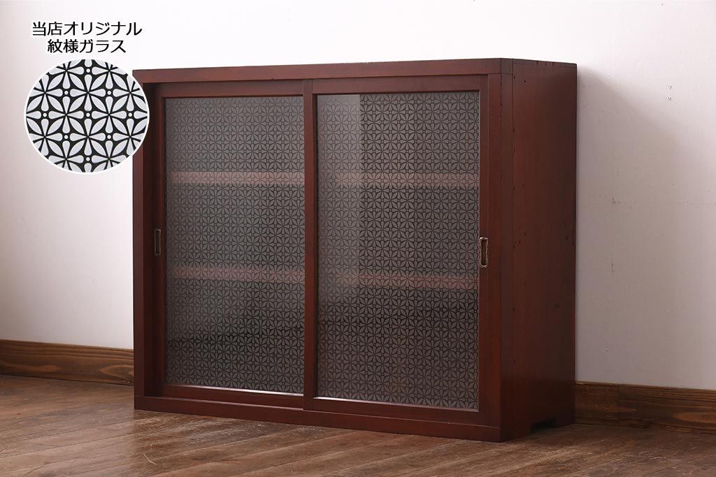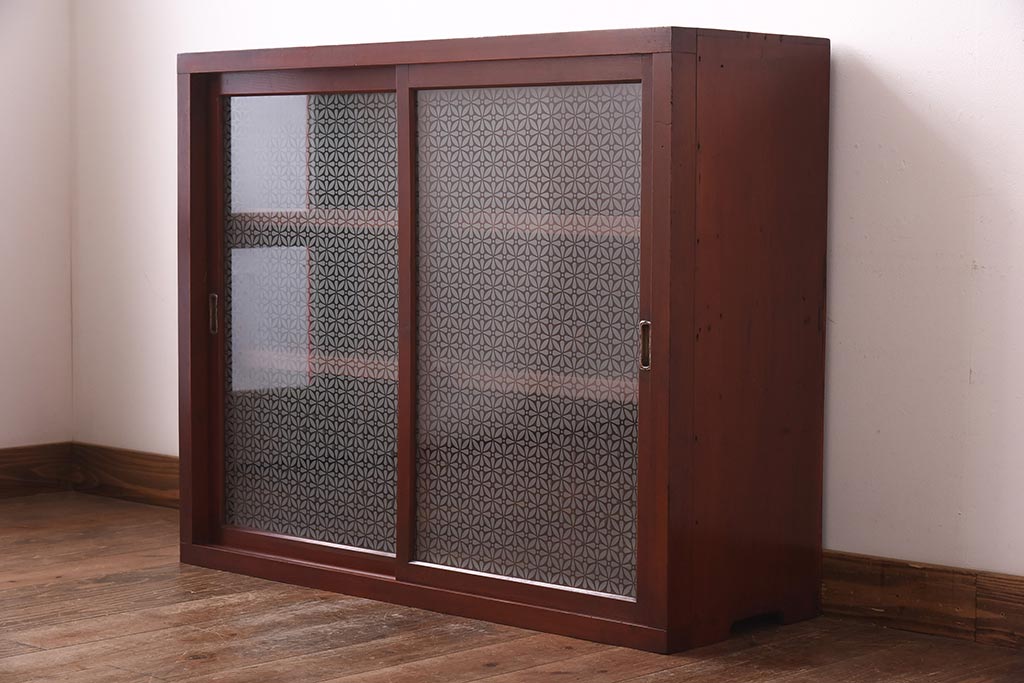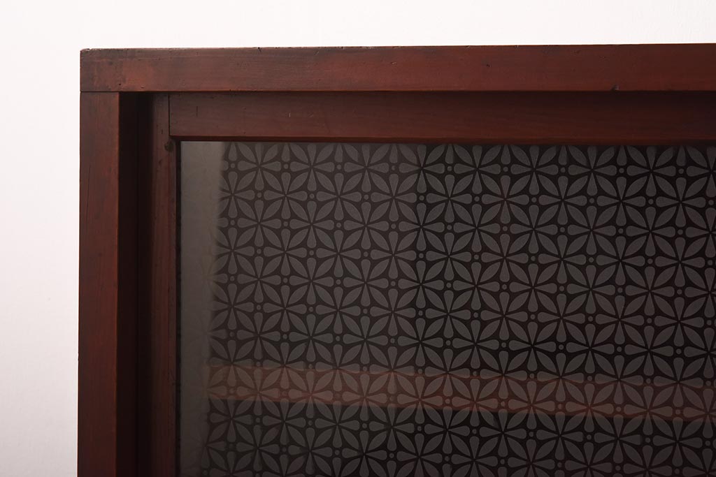 和製アンティーク 当店オリジナル紋様ガラス レトロな雰囲気がお洒落なガラス戸棚(収納棚、食器棚)です。