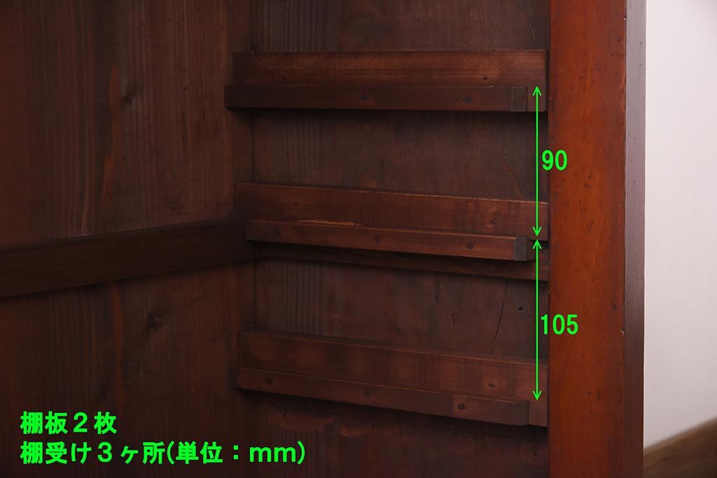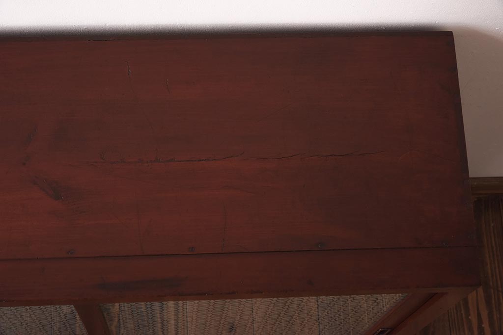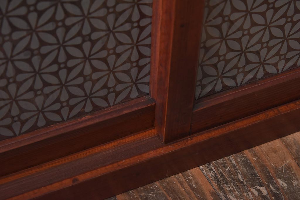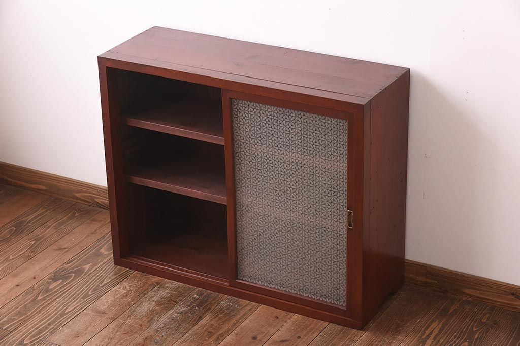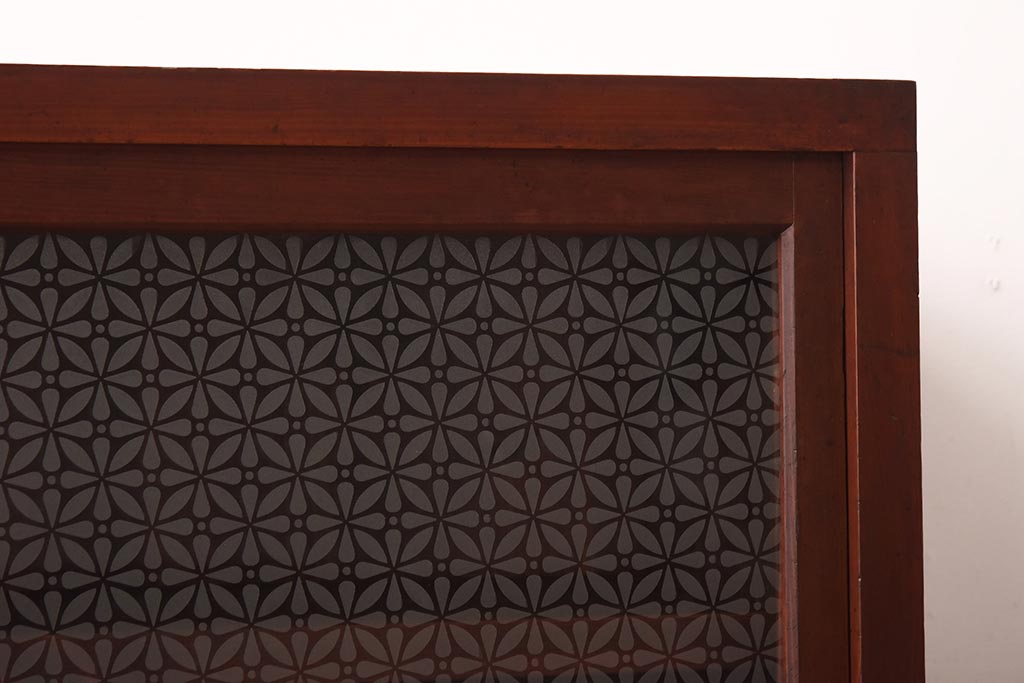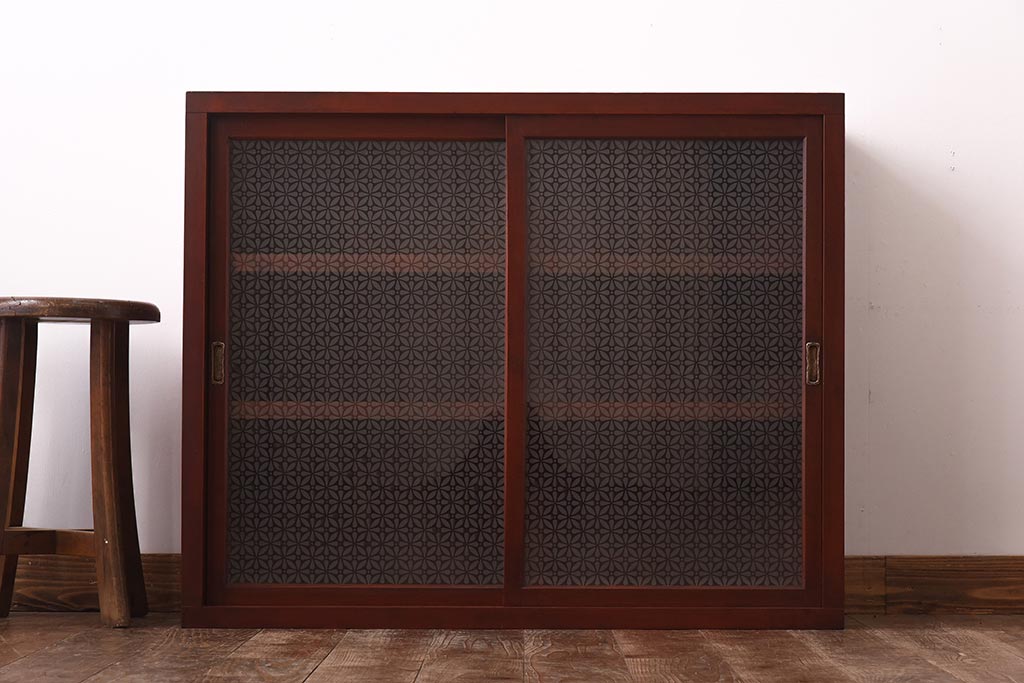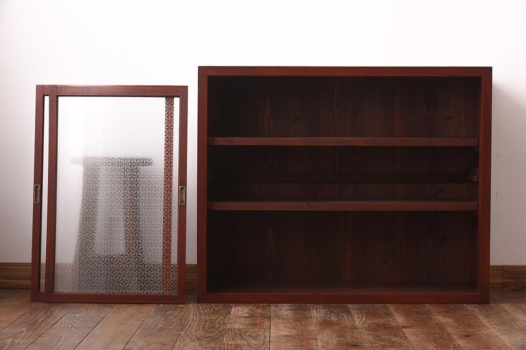 和製アンティーク 当店オリジナル紋様ガラス レトロな雰囲気がお洒落なガラス戸棚(収納棚、食器棚)です。