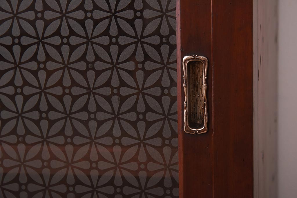 レトロ家具 和製アンティーク 当店オリジナル紋様ガラス レトロな雰囲気がお洒落なガラス戸棚(収納棚、食器棚)