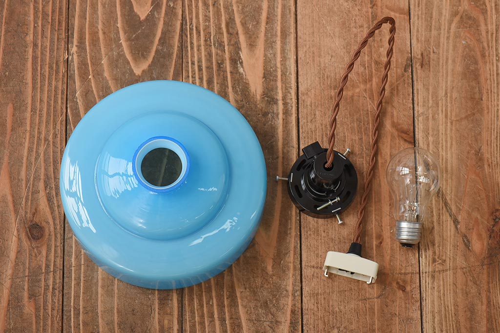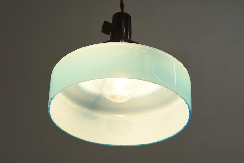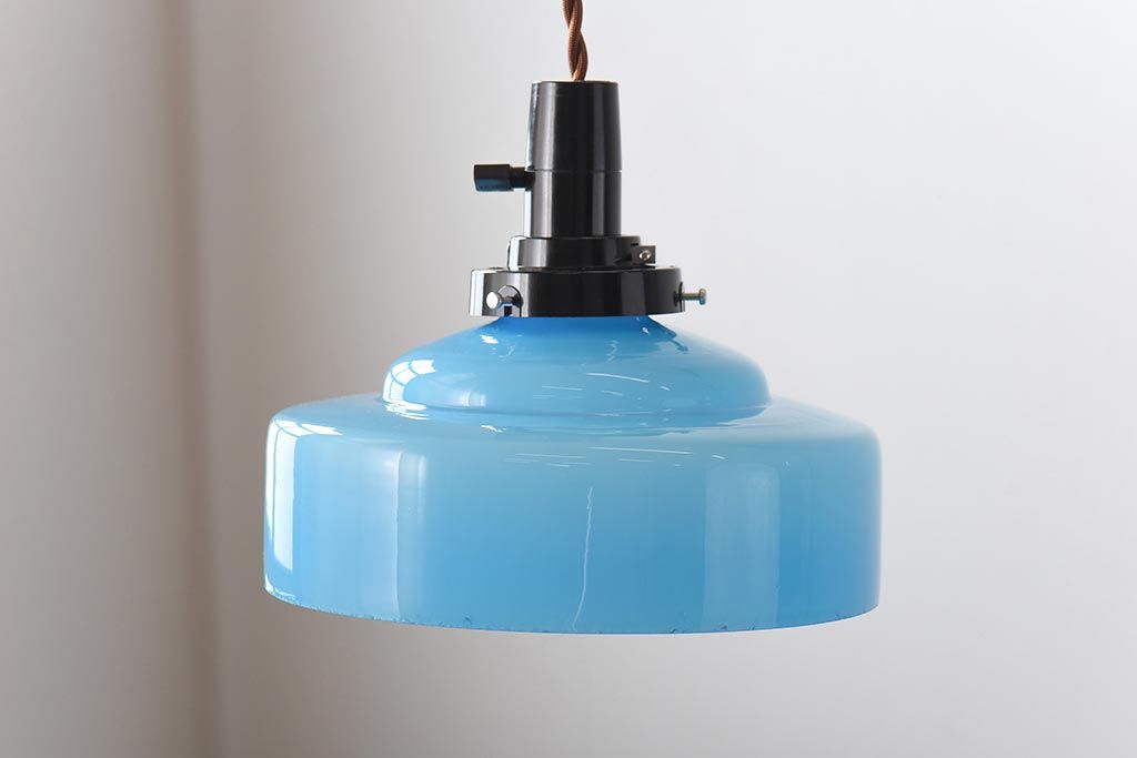 昭和初期 戦前 優しげな青色がお洒落な天井照明(ペンダントライト、シェード)