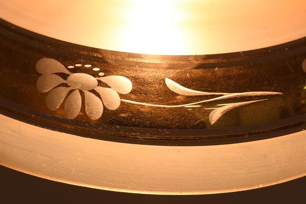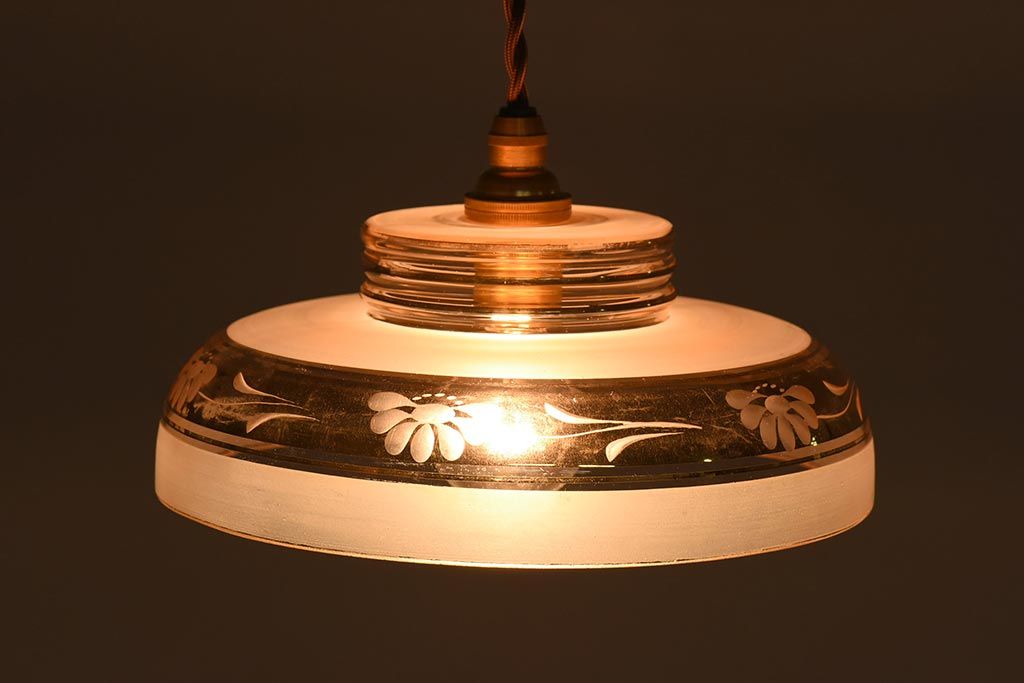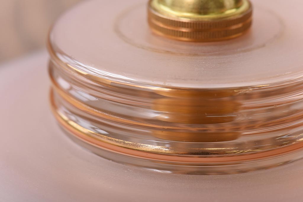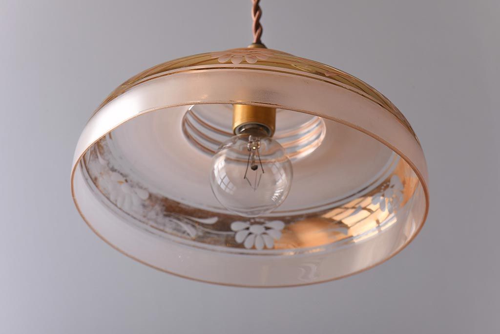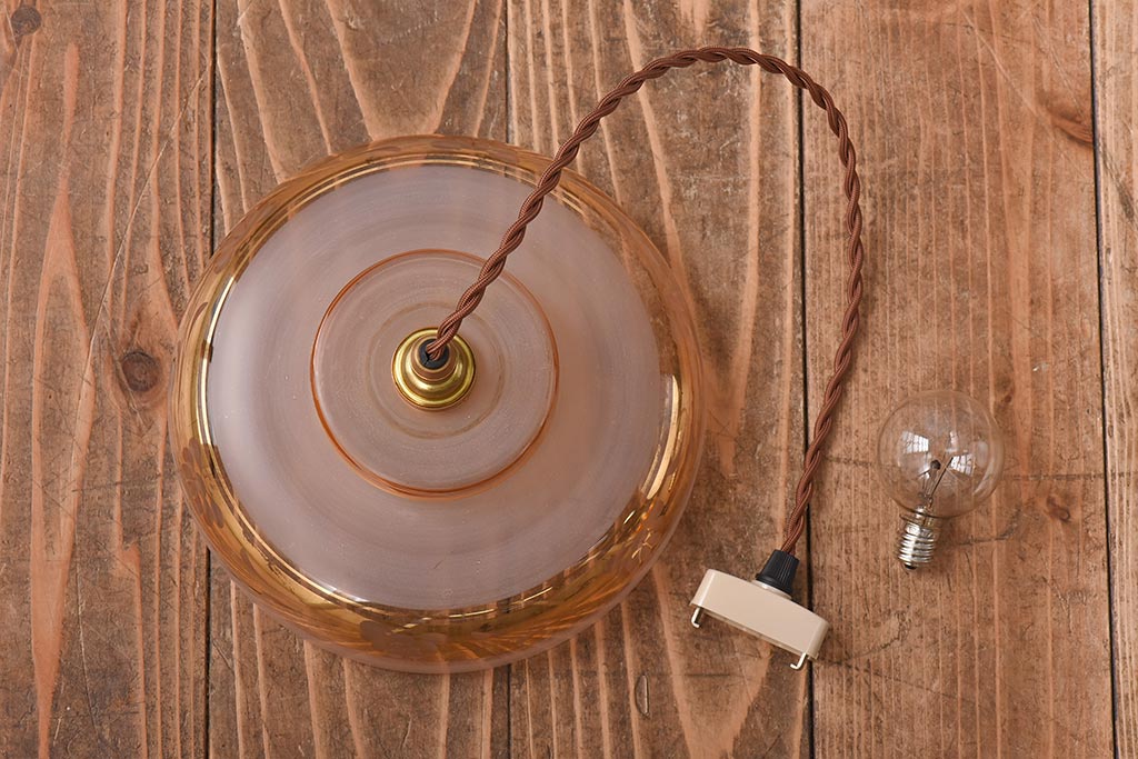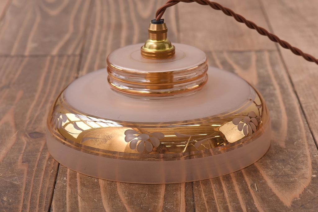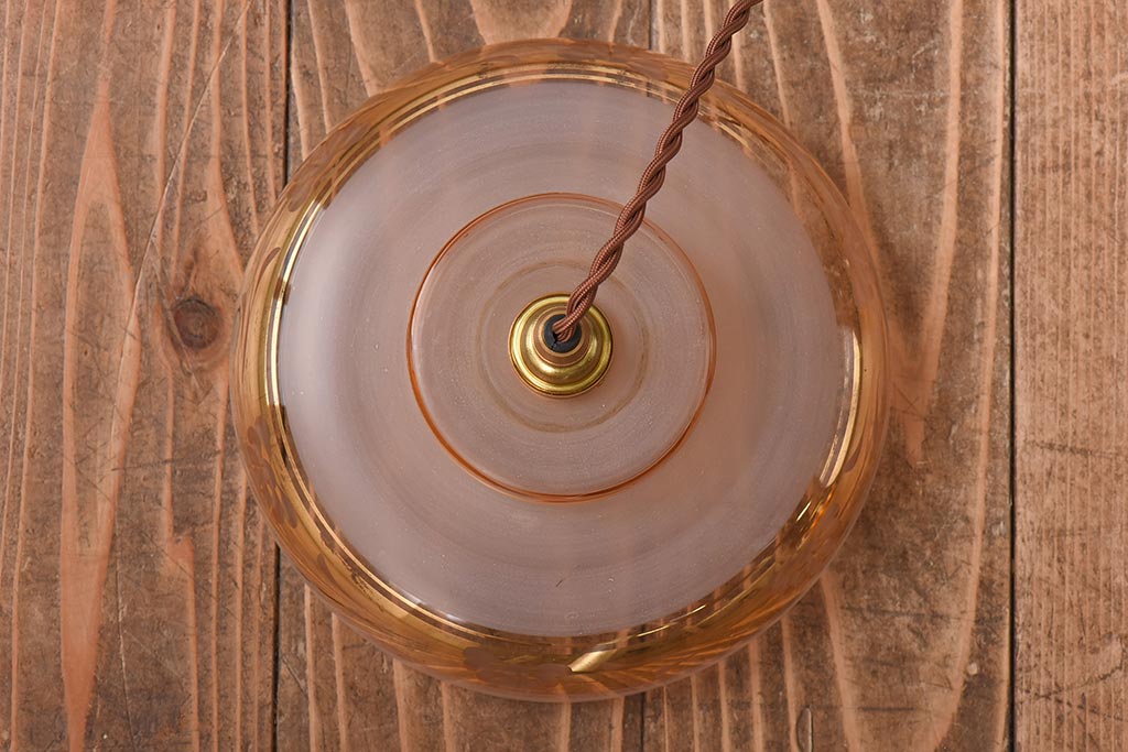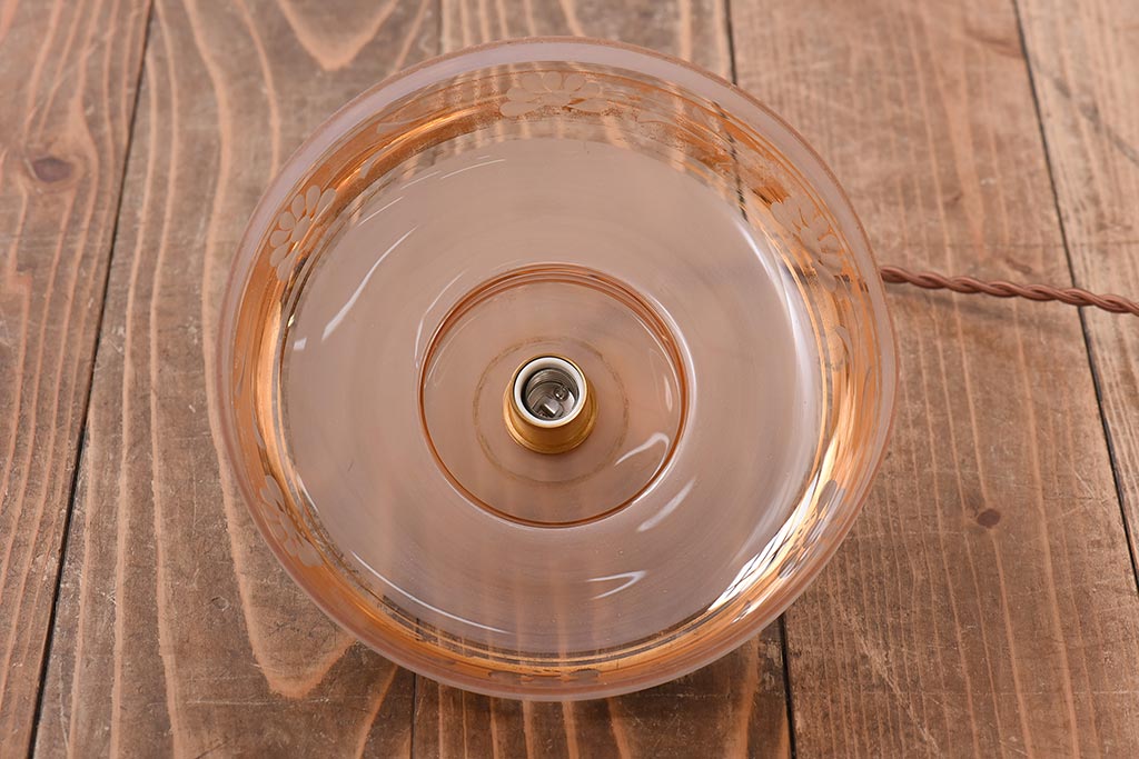 フランスビンテージ 淡いピンクにゴールドの帯がお洒落なペンダントライト(吊り下げ照明、シェード)