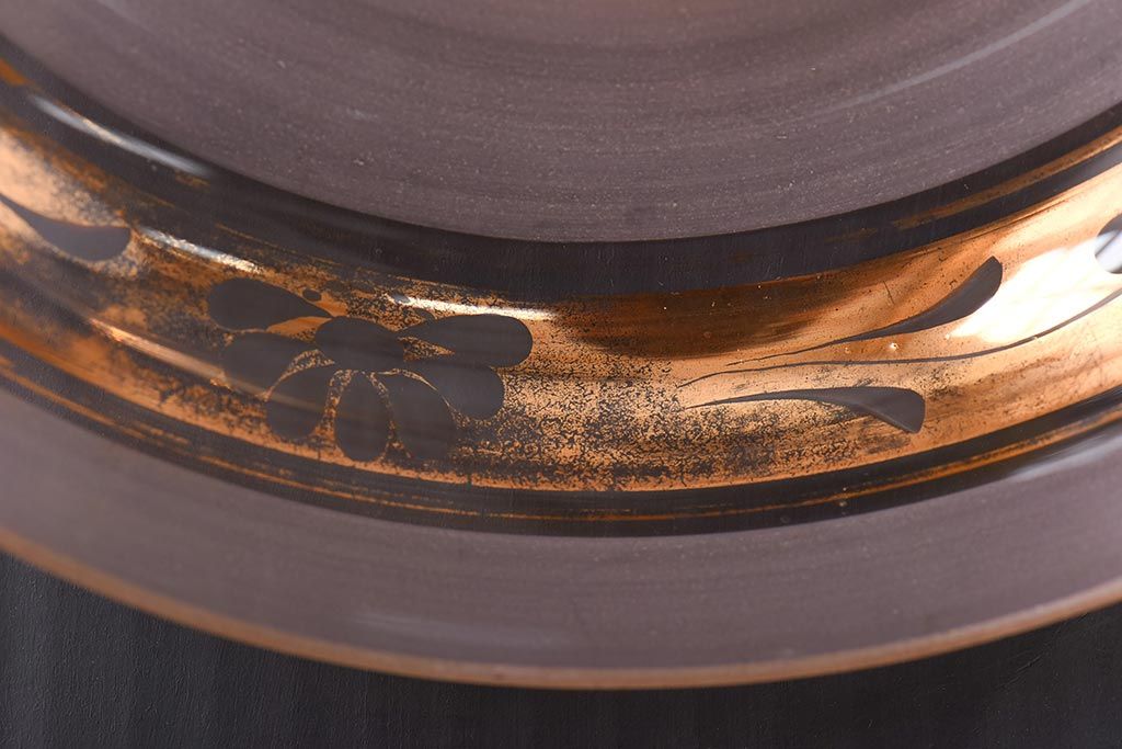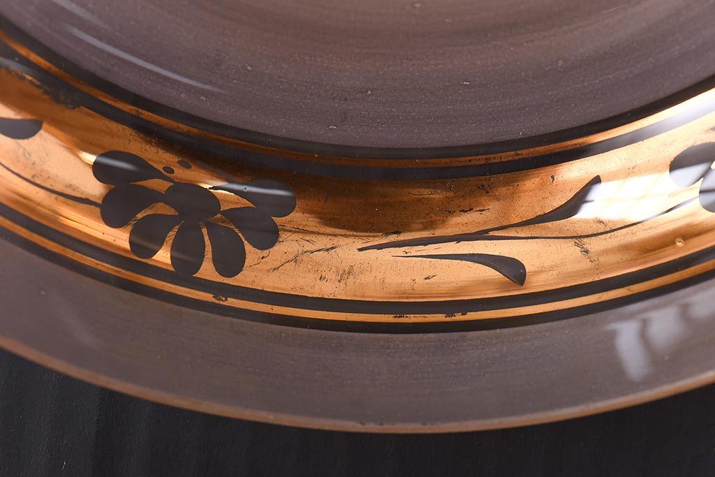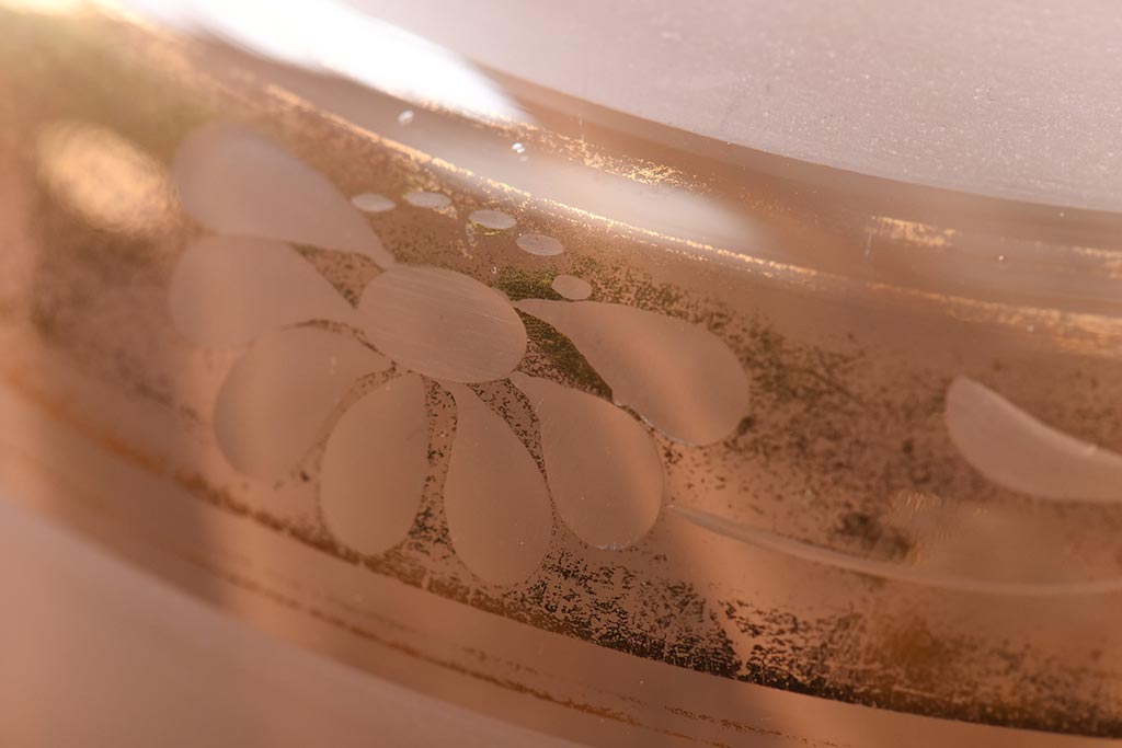 フランスビンテージ 淡いピンクにゴールドの帯がお洒落なペンダントライト(吊り下げ照明、シェード)です。