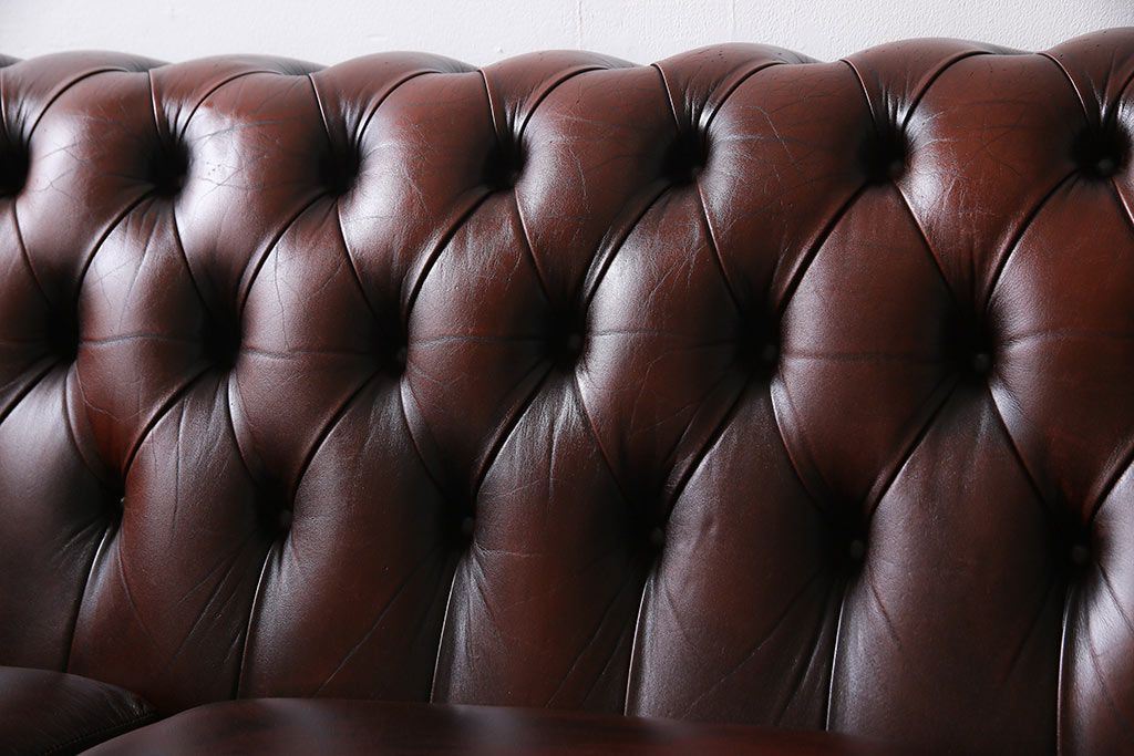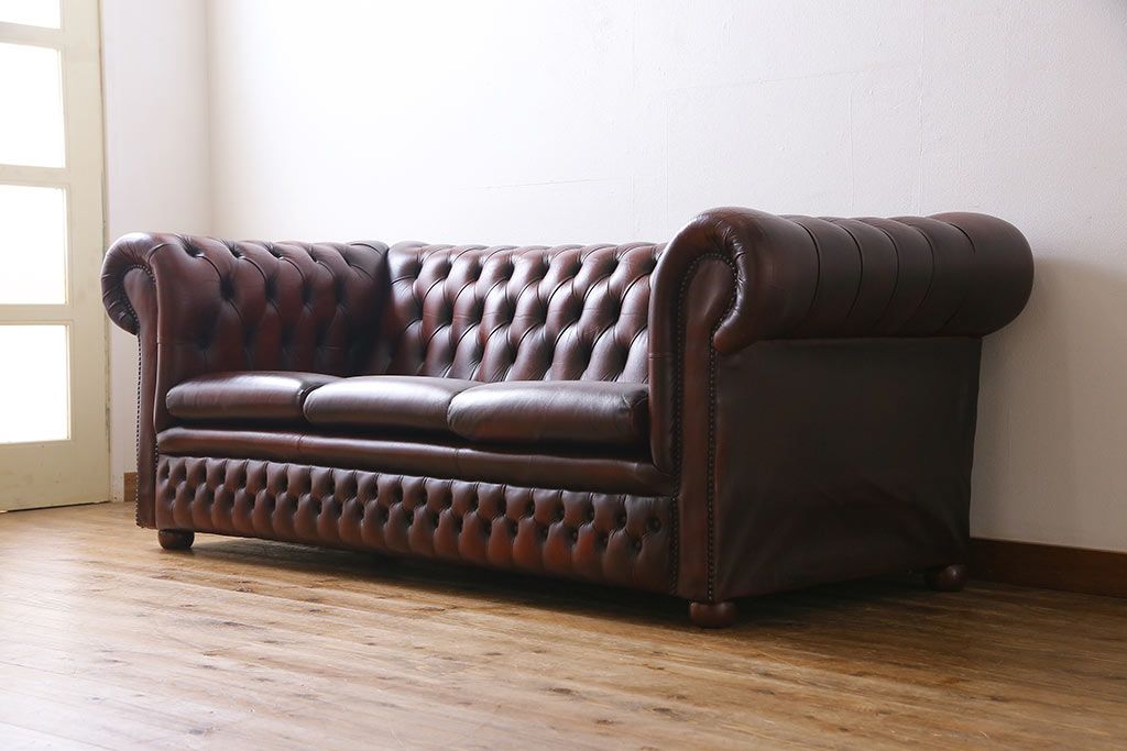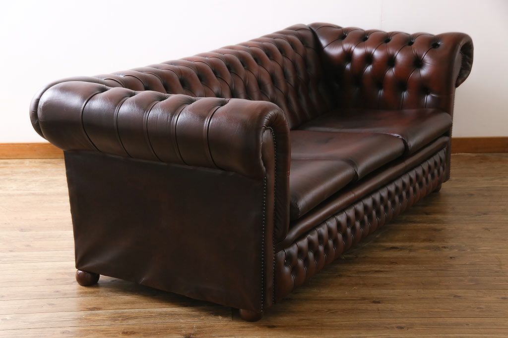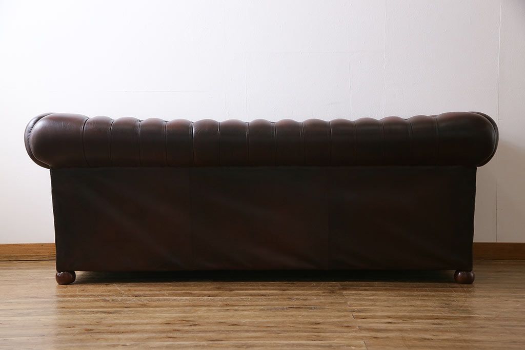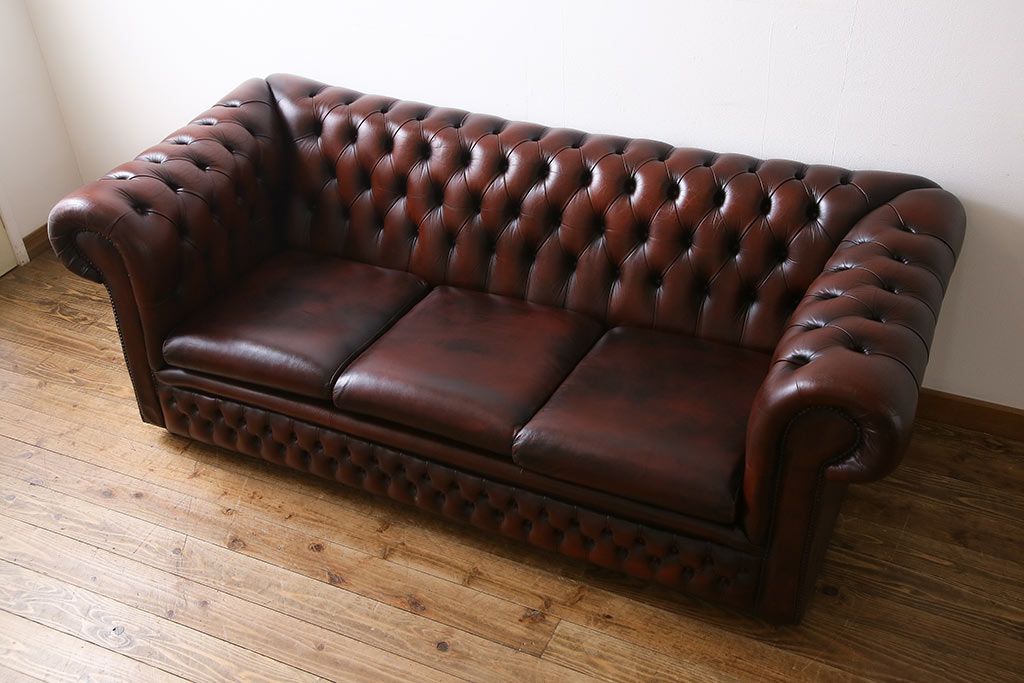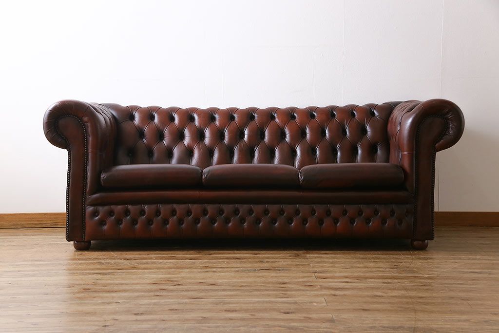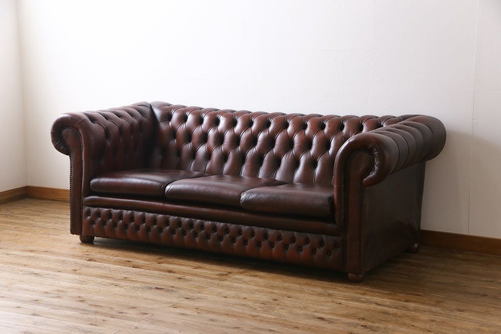 ヴィンテージ家具 イギリスビンテージ 本革 なめらかなレザーの風合いが魅力的なチェスターフィールドソファ(3人掛け)