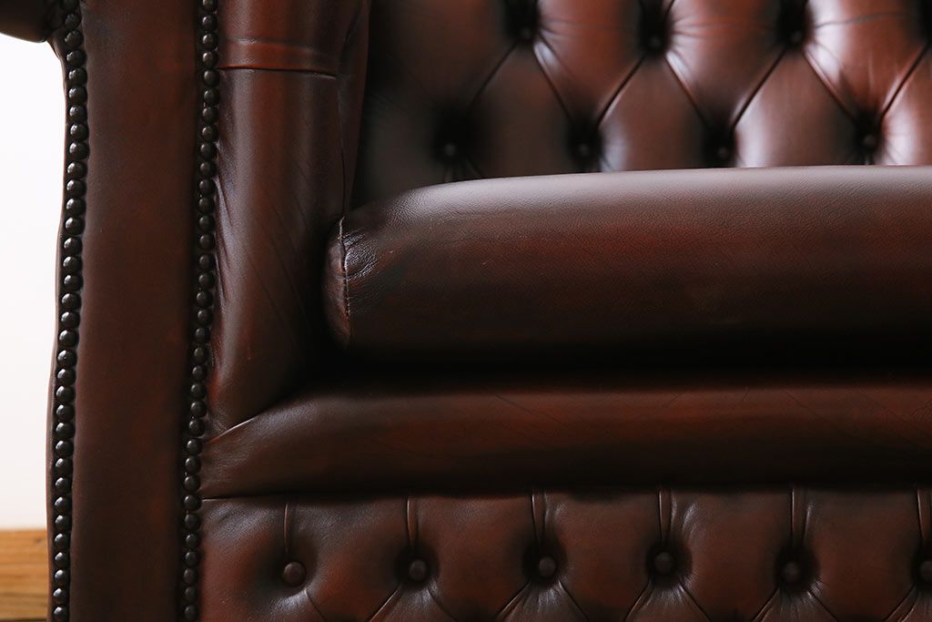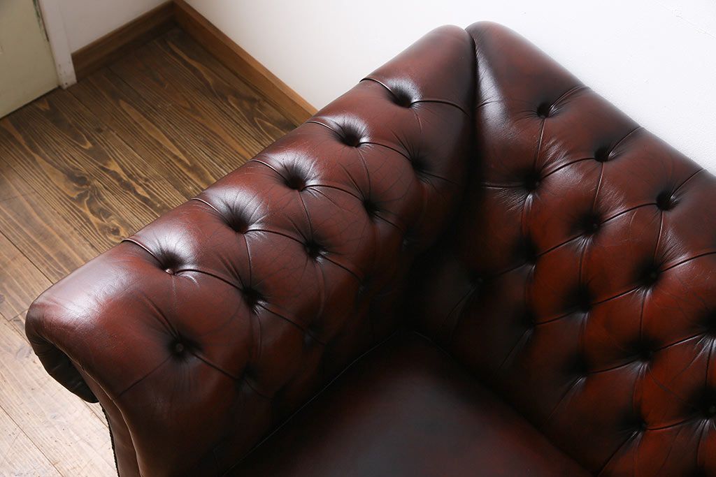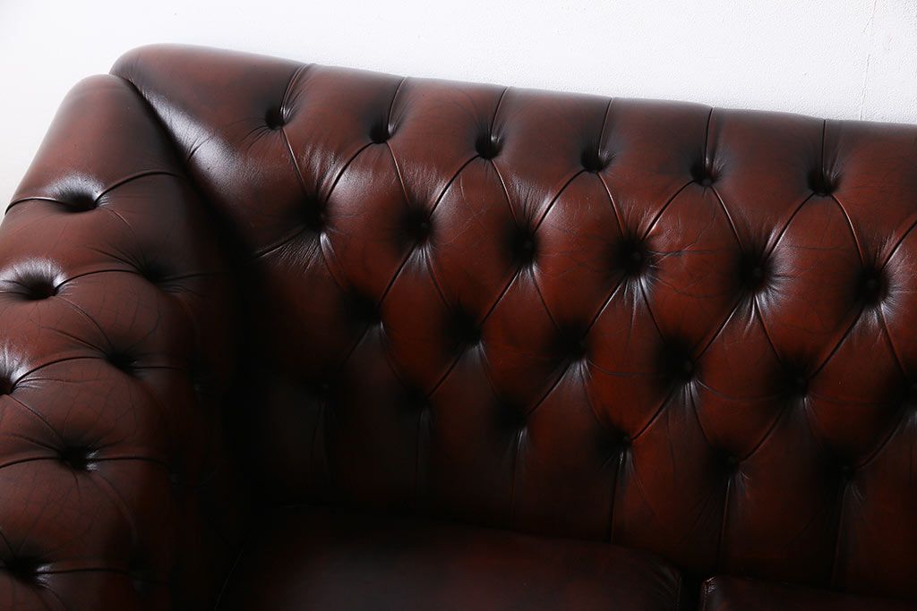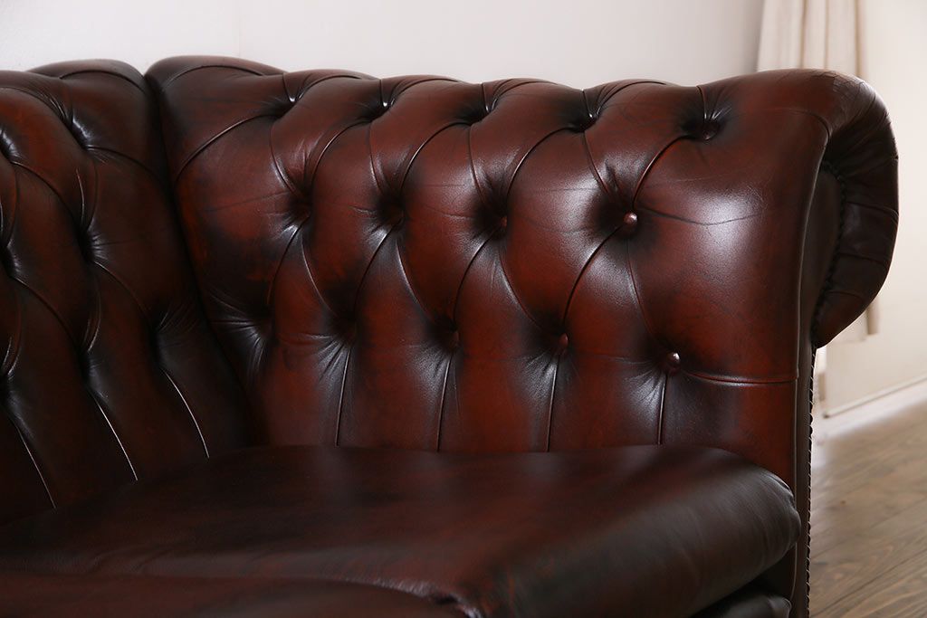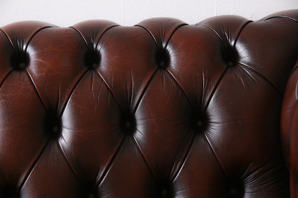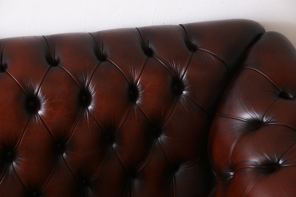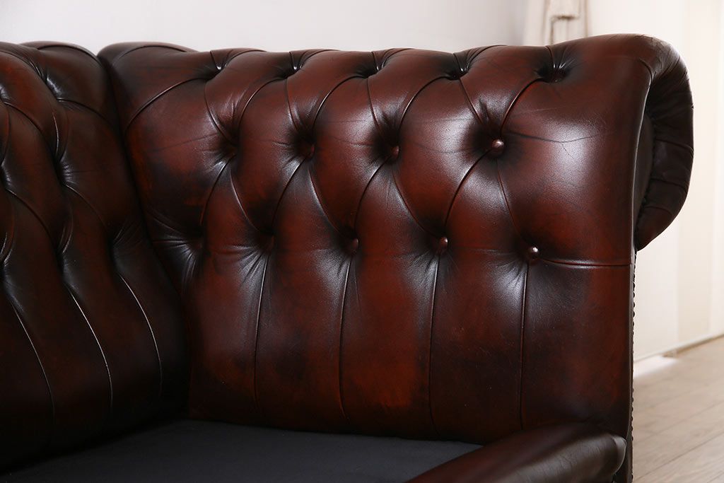ヴィンテージ家具 イギリスビンテージ 本革 なめらかなレザーの風合いが魅力的なチェスターフィールドソファ(3人掛け)