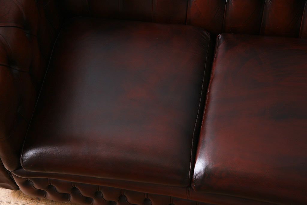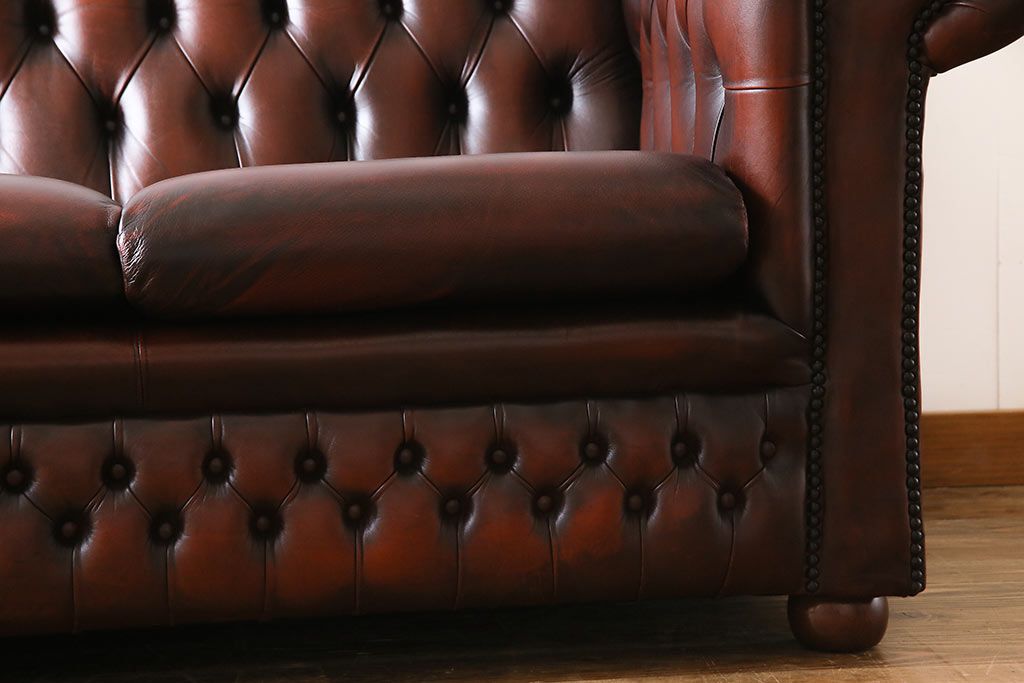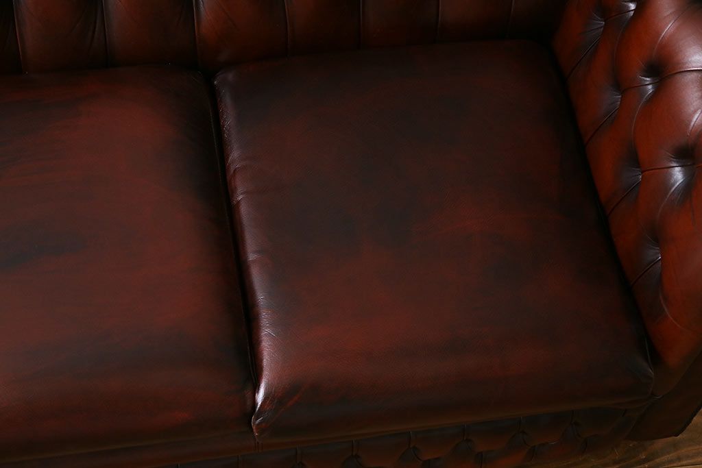 ソファ > ヴィンテージ家具 イギリスビンテージ 本革 なめらかなレザーの風合いが魅力的なチェスターフィールドソファ(3人掛け)