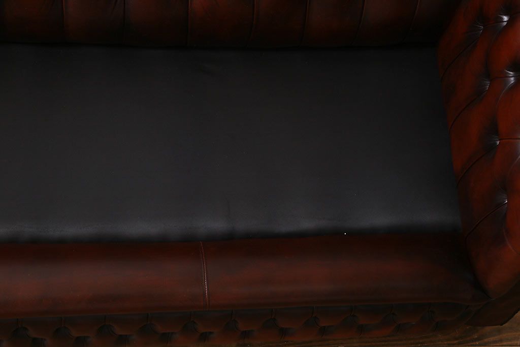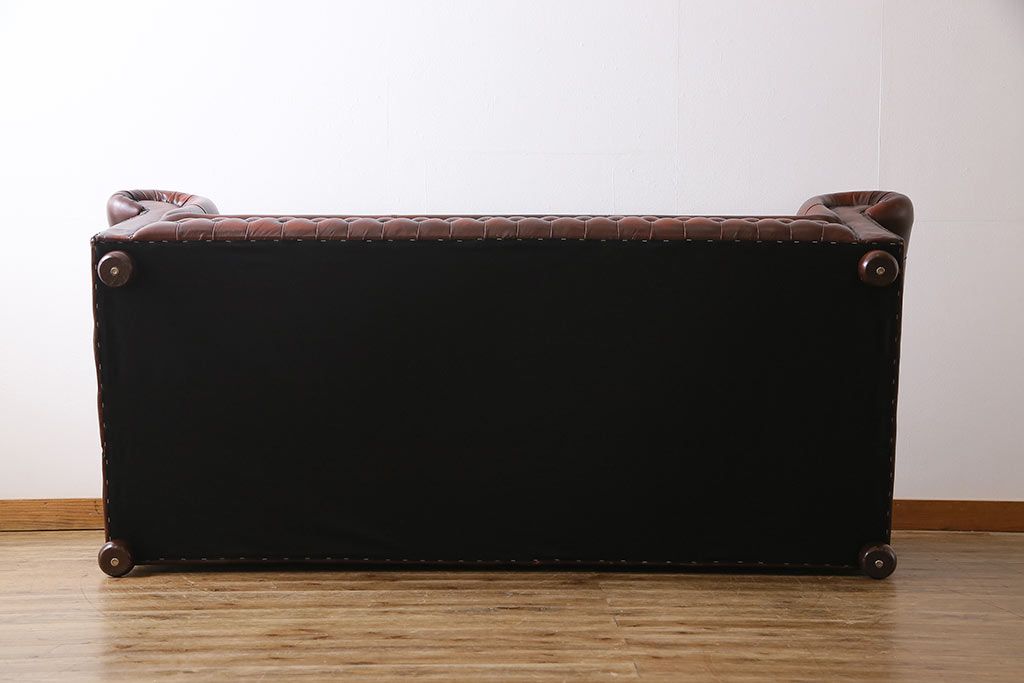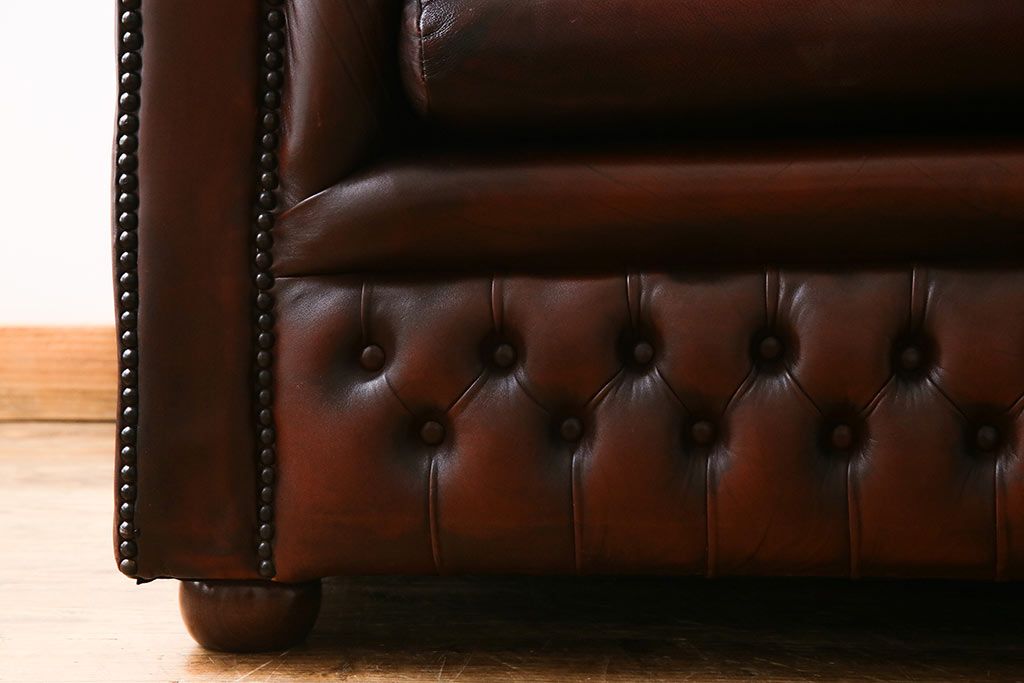 ソファ> チェスターフィールド > ヴィンテージ家具 イギリスビンテージ 本革 なめらかなレザーの風合いが魅力的なチェスターフィールドソファ(3人掛け)