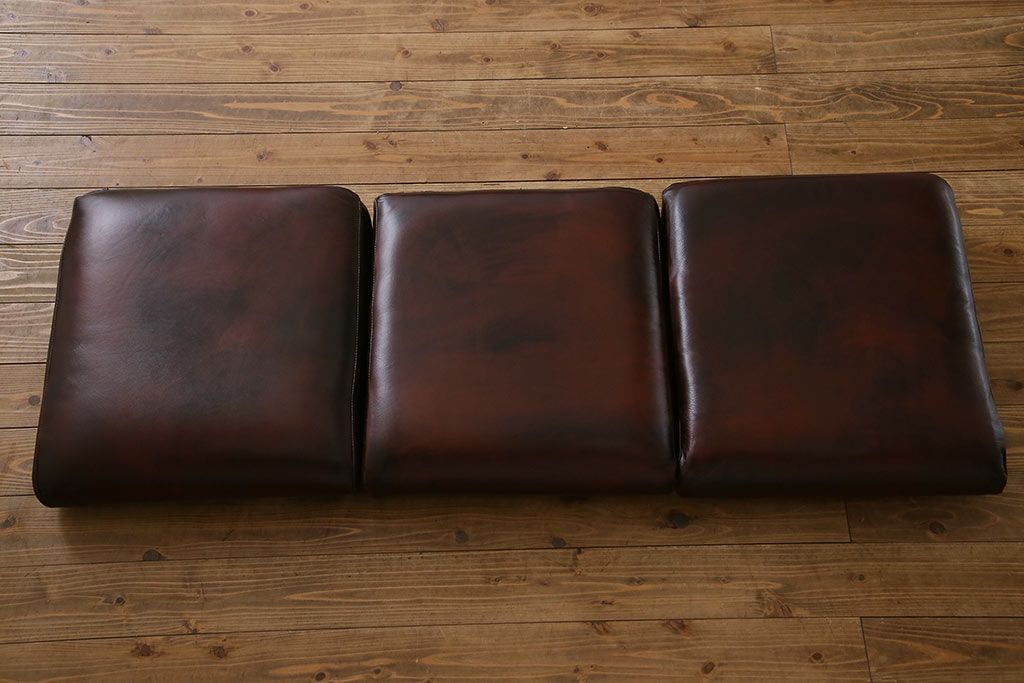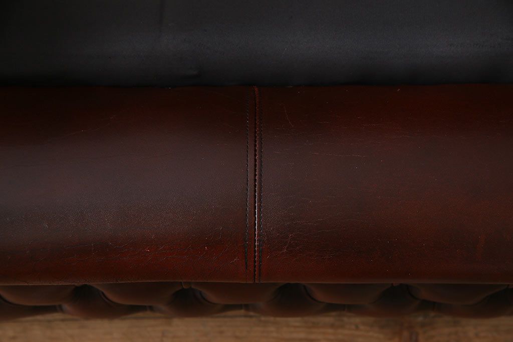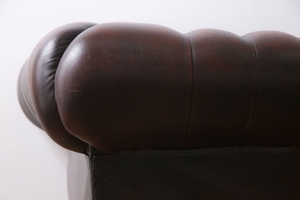 イギリスビンテージ 本革 なめらかなレザーの風合いが魅力的なチェスターフィールドソファ(3人掛け)です。