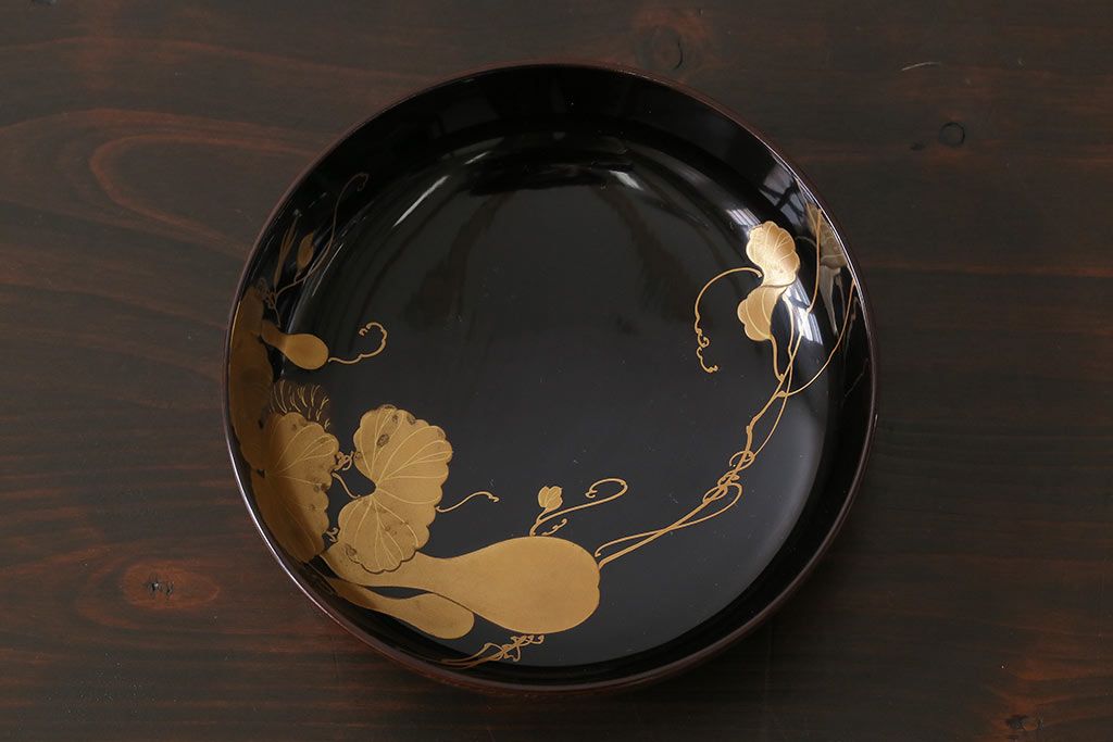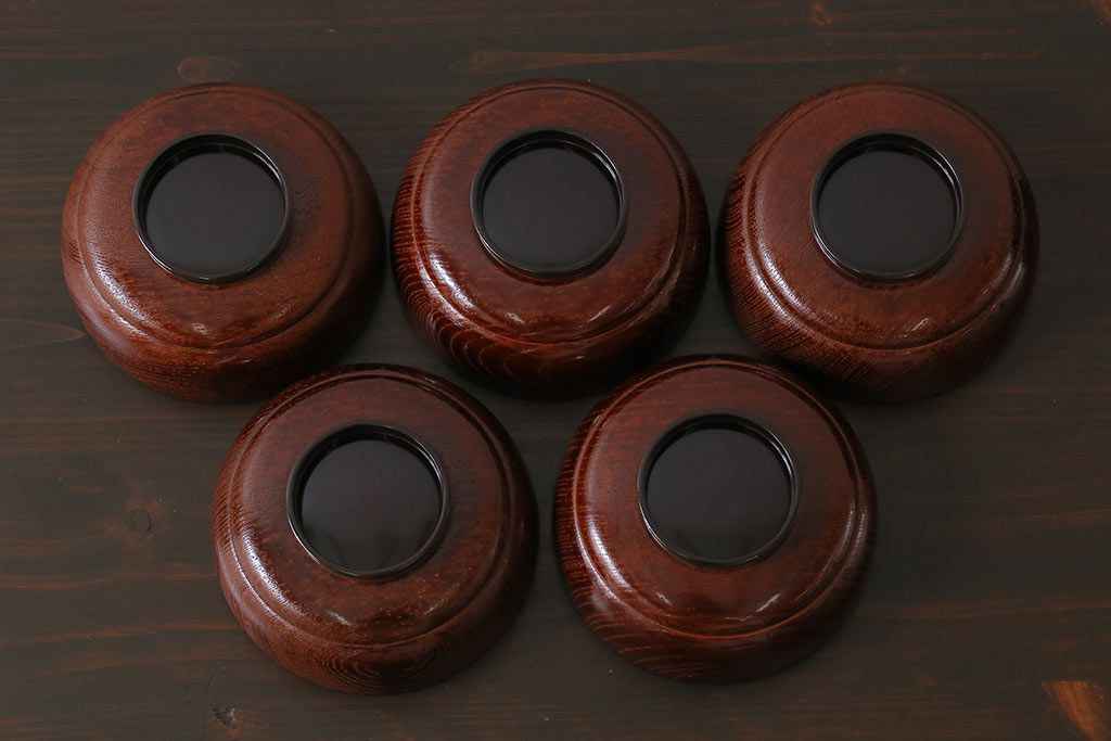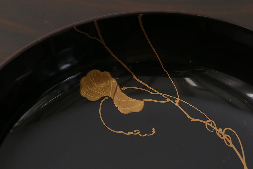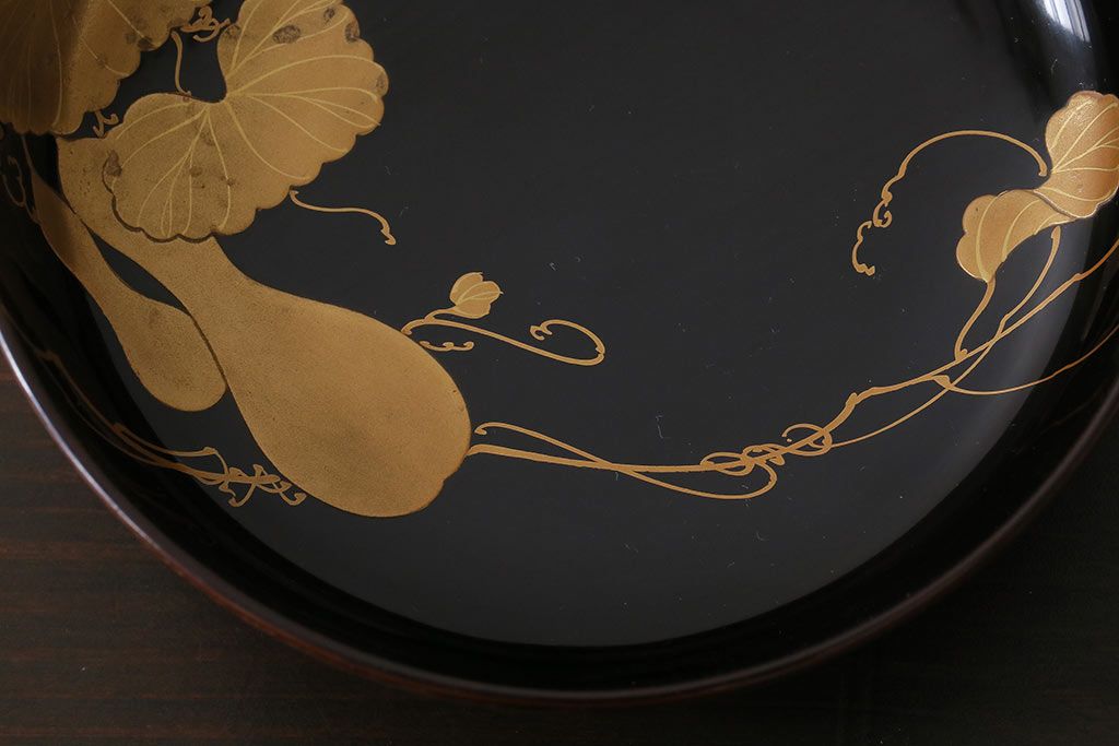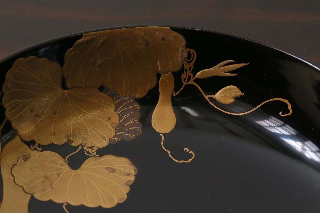 和製アンティーク 輪島塗 高蒔絵 瓢箪の図 上質な蓋付き木製椀(漆器、和食器)5客セット