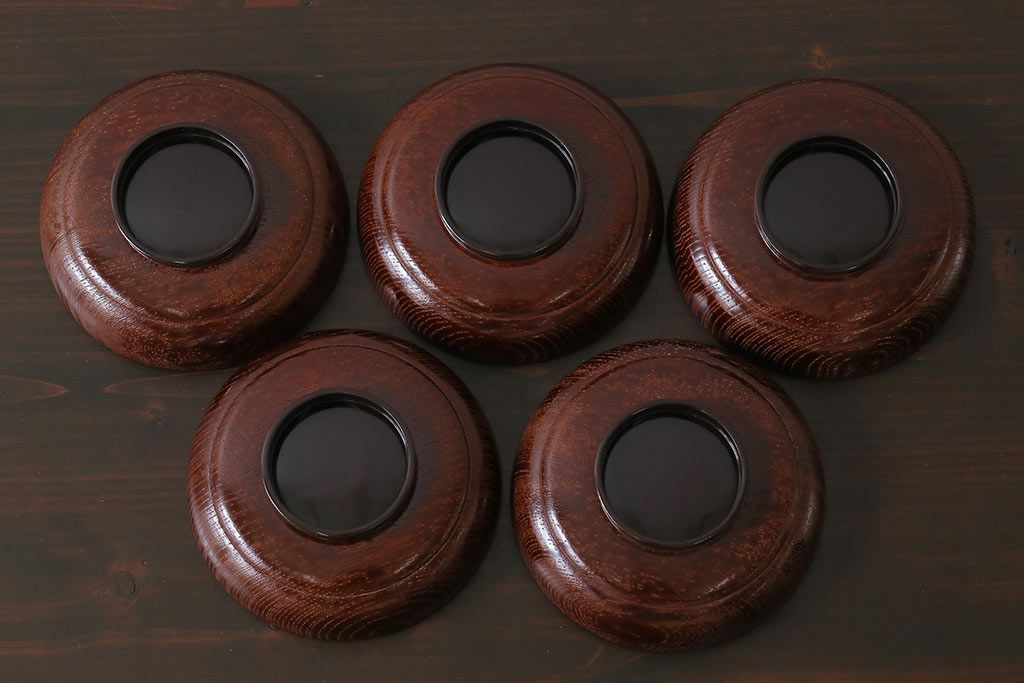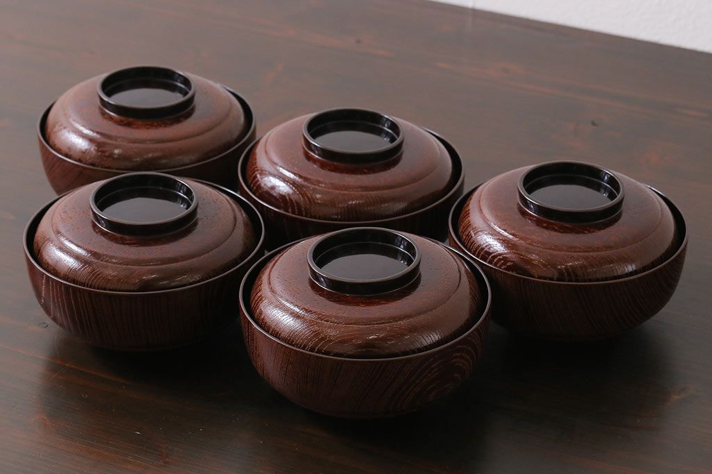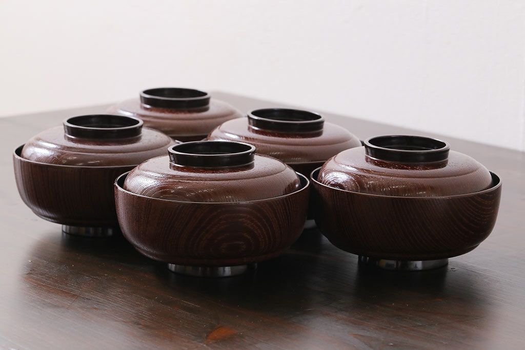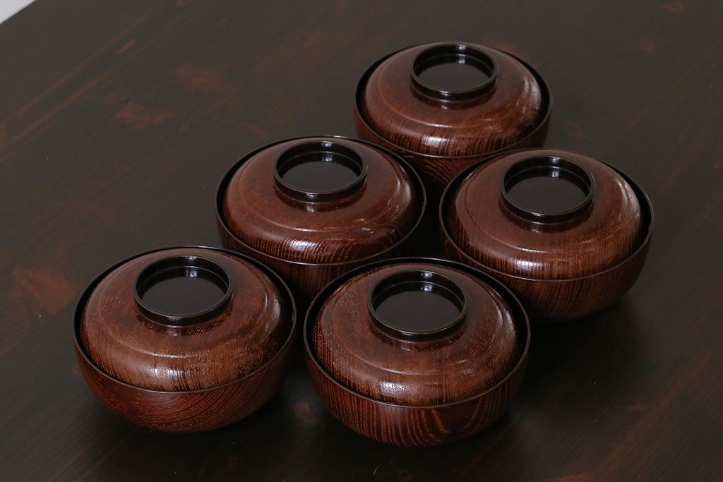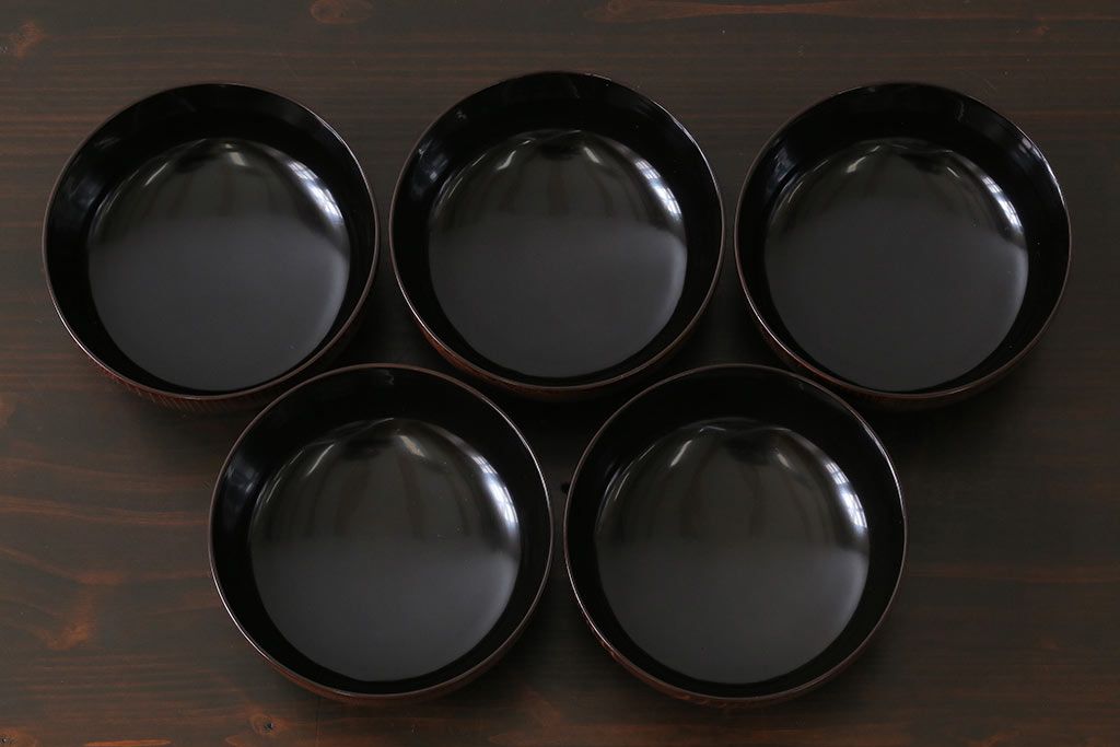 和製アンティーク 輪島塗 高蒔絵 瓢箪の図 上質な蓋付き木製椀(漆器、和食器)5客セット