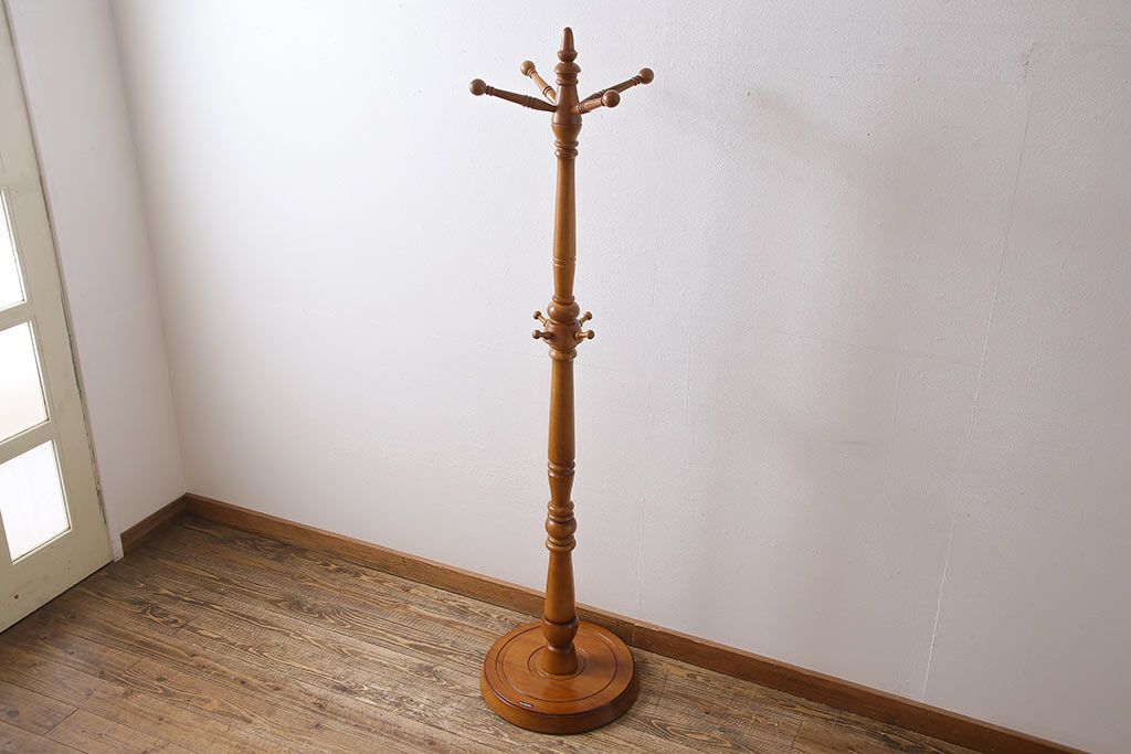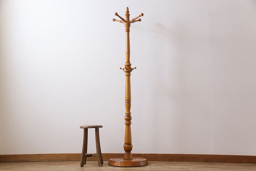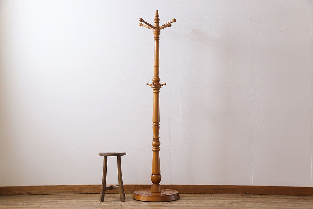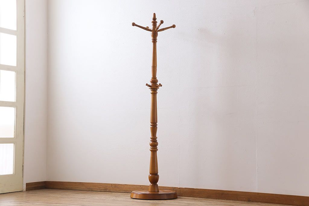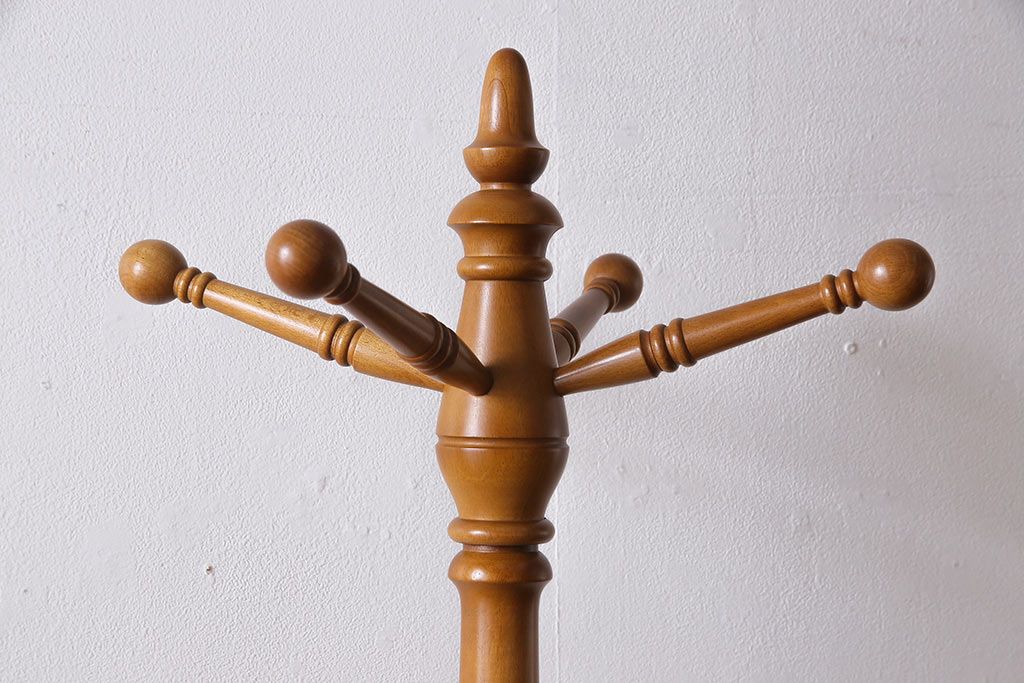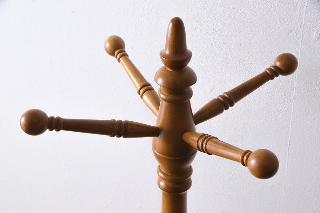 アンティーク雑貨 中古 ビンテージカリモク 上品な挽き物加工が施されたポールハンガー