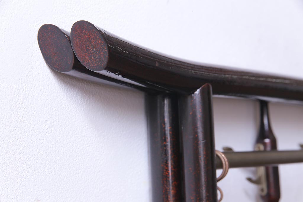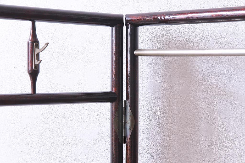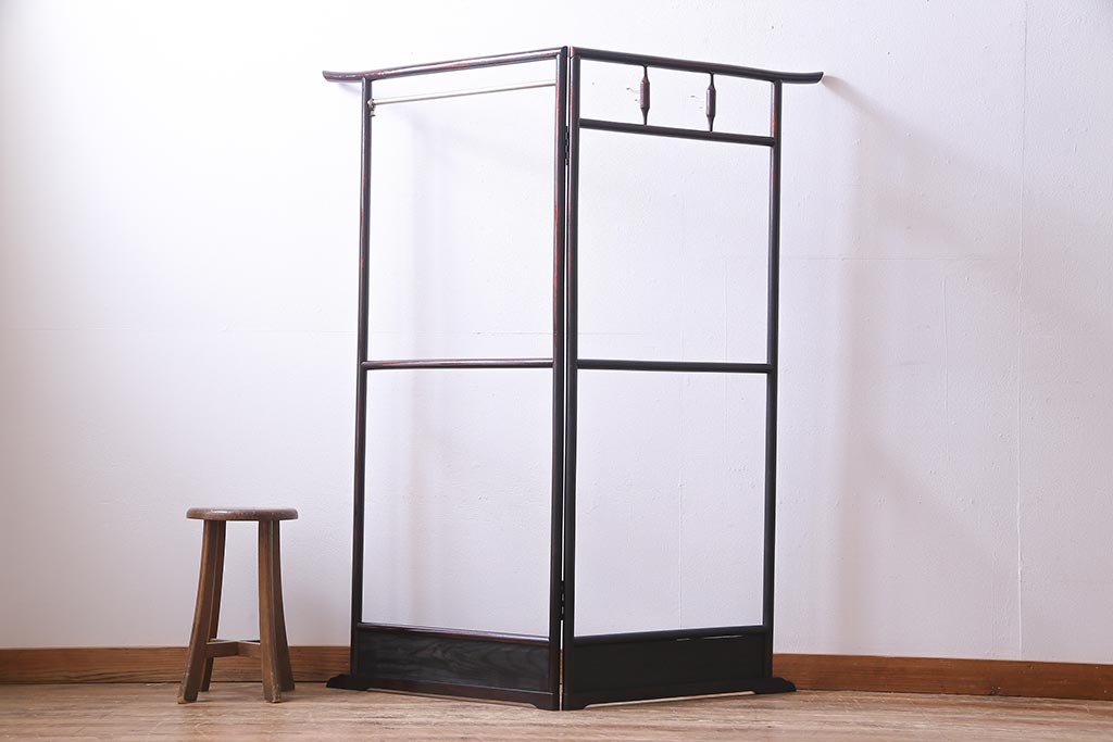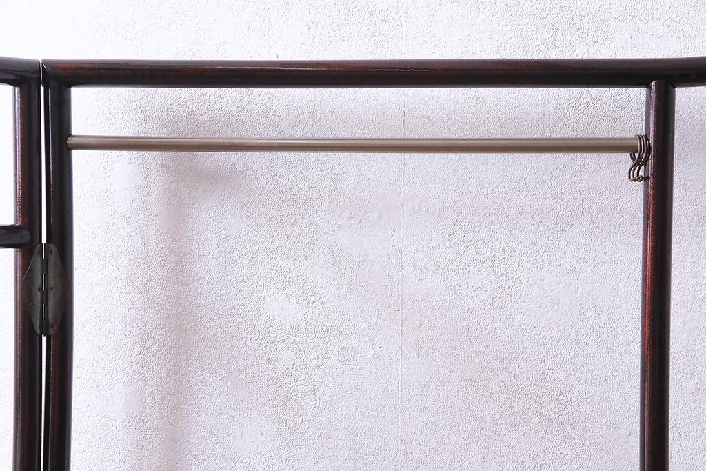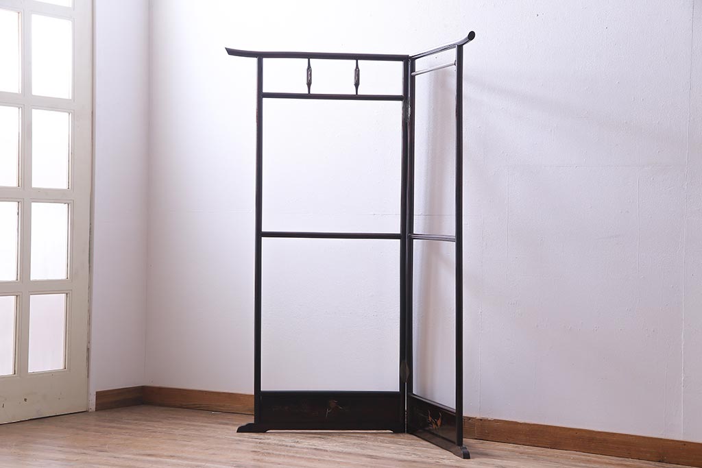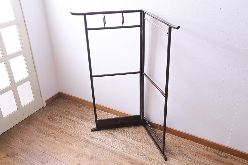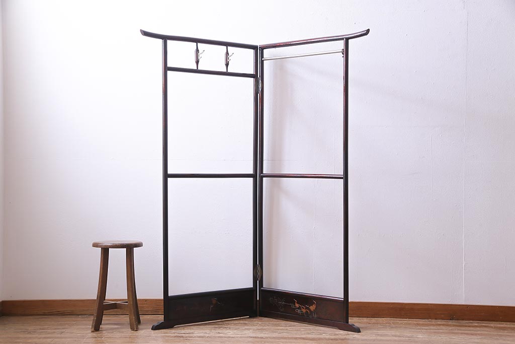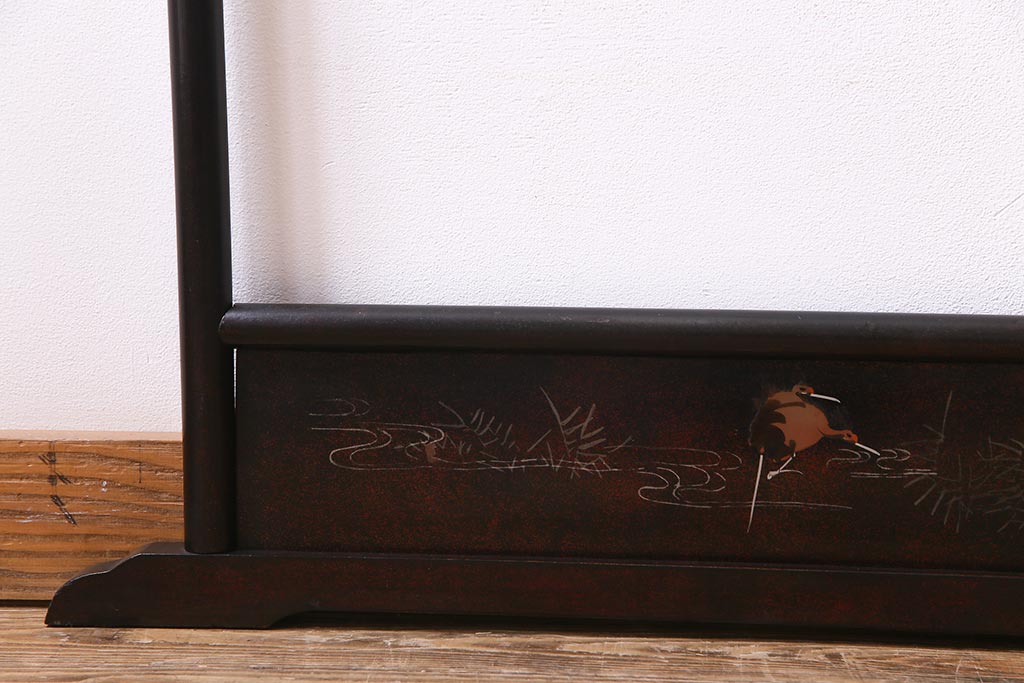 アンティーク雑貨 昭和中期 鶴図柄 フック付き 艶やかな漆塗りが上品な二つ折り衣桁