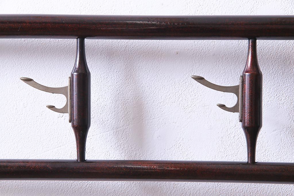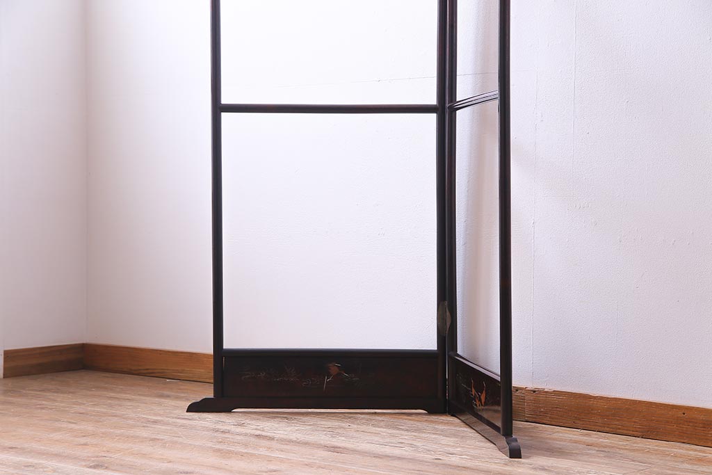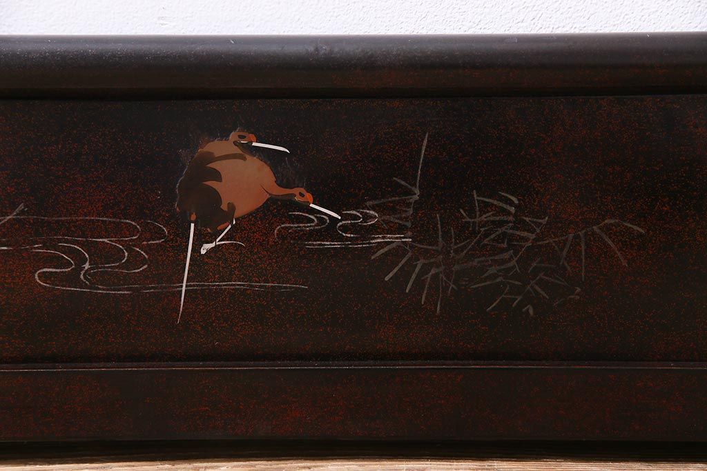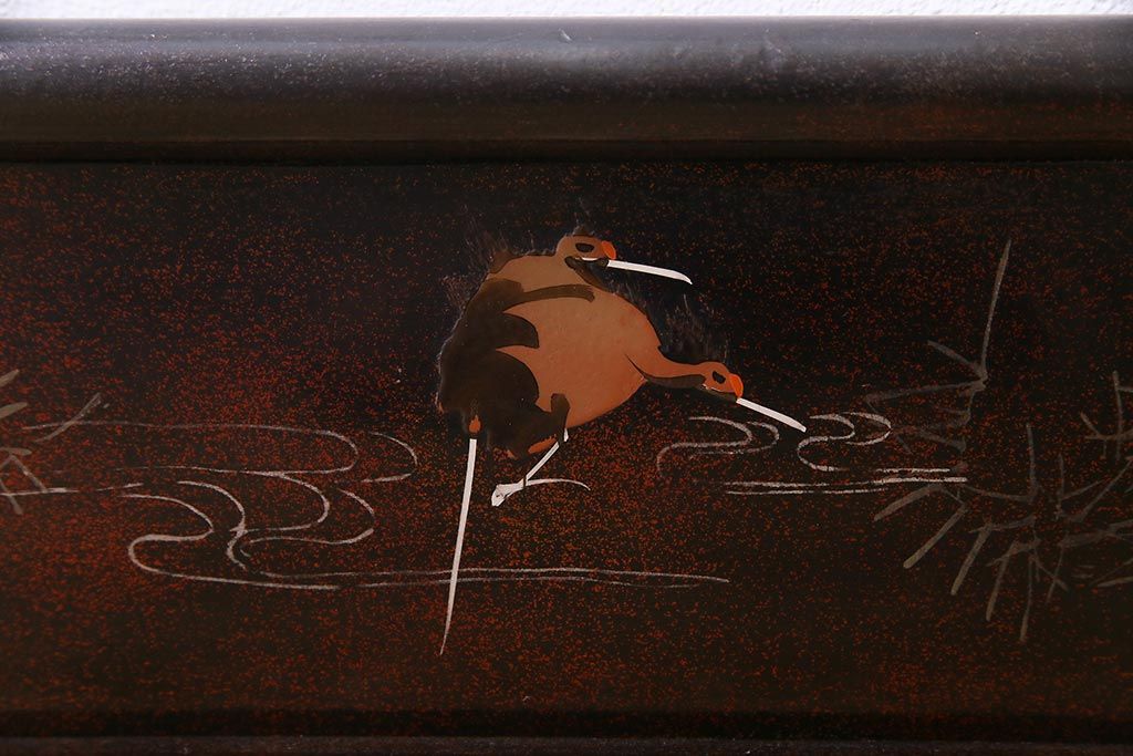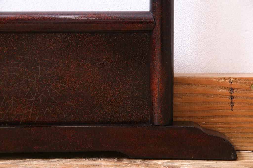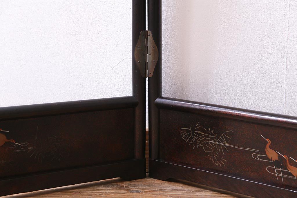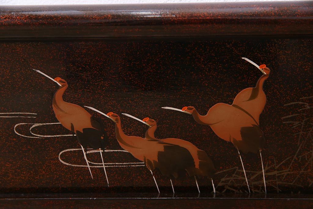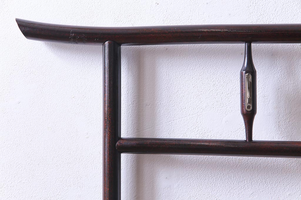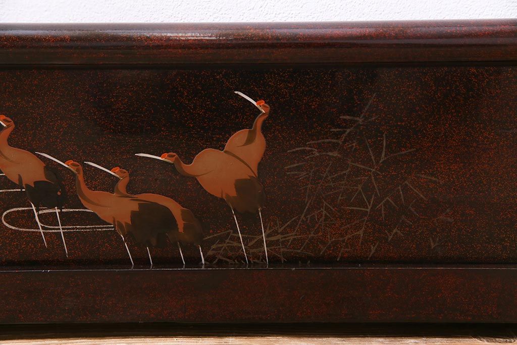 アンティーク雑貨 昭和中期 鶴図柄 フック付き 艶やかな漆塗りが上品な二つ折り衣桁