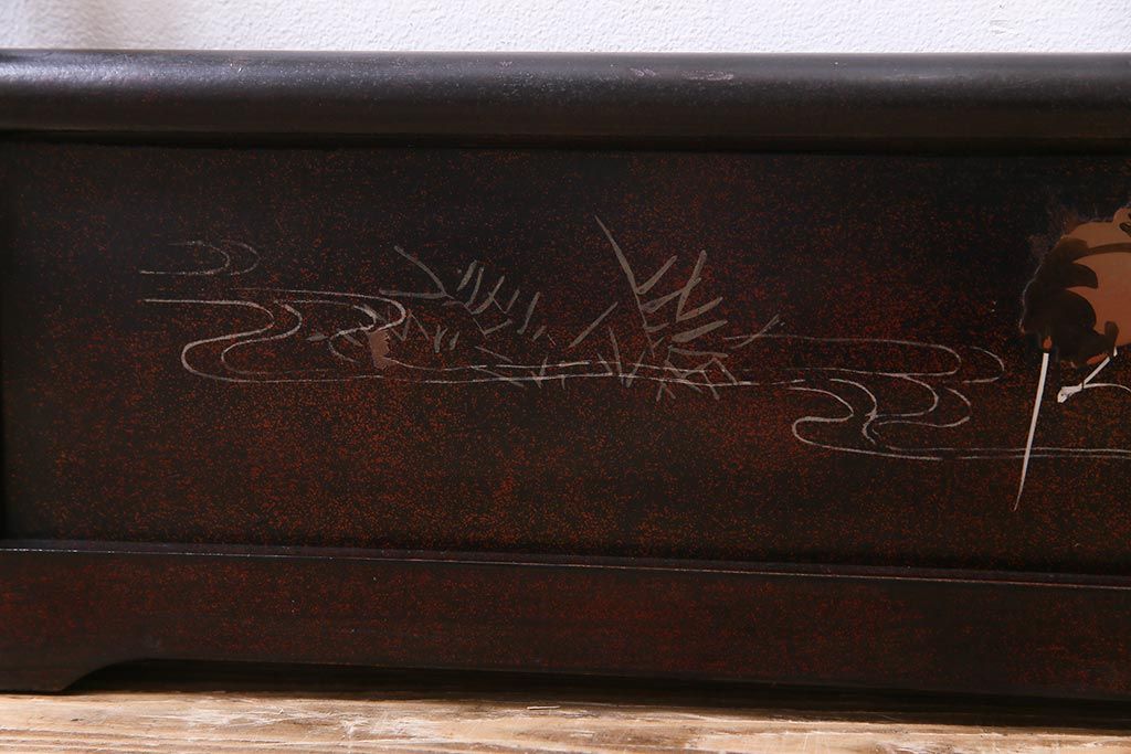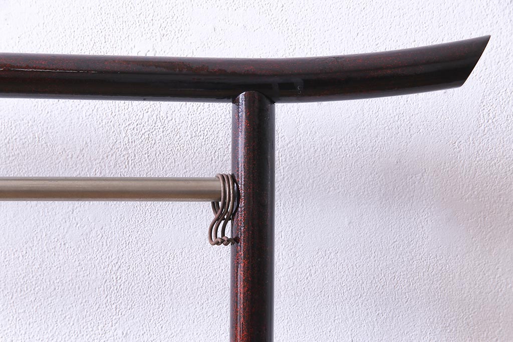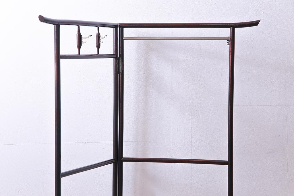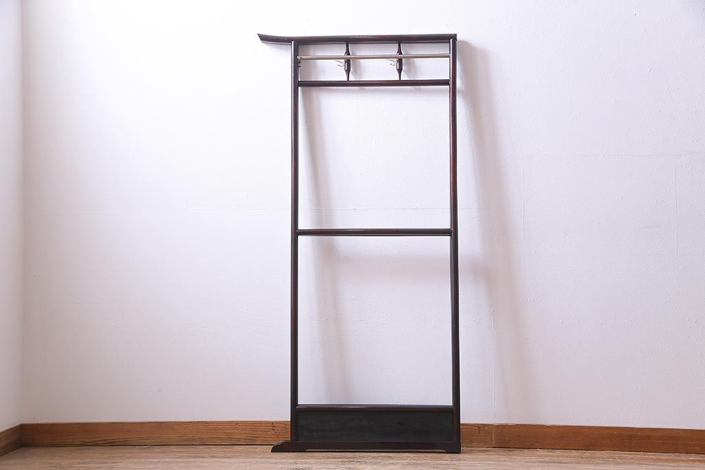 昭和中期 鶴図柄 フック付き 艶やかな漆塗りが上品な二つ折り衣桁です。