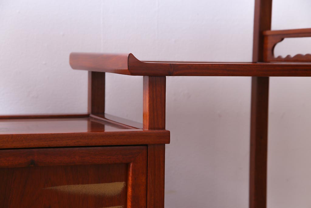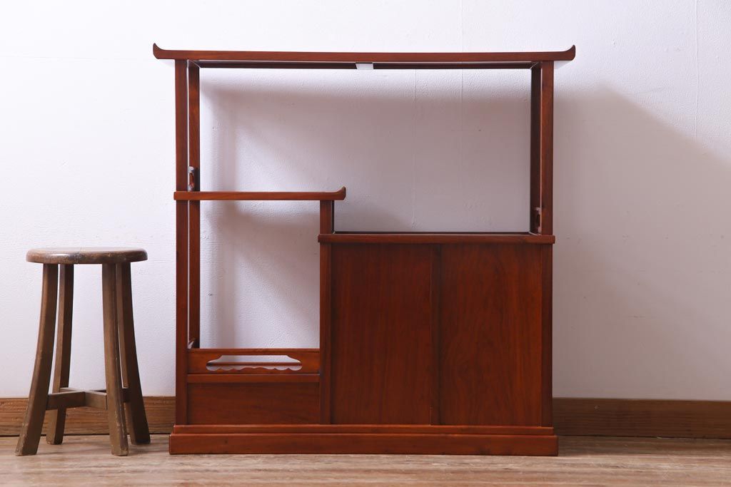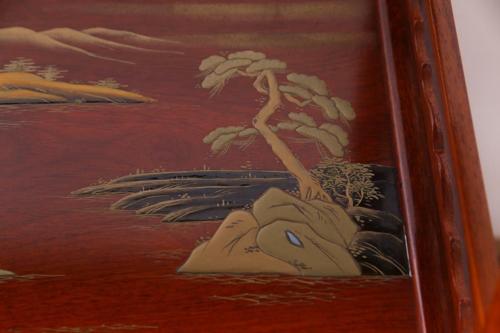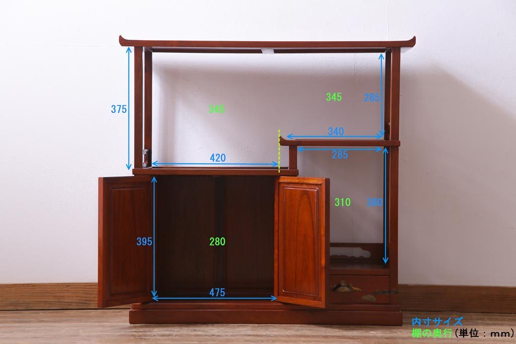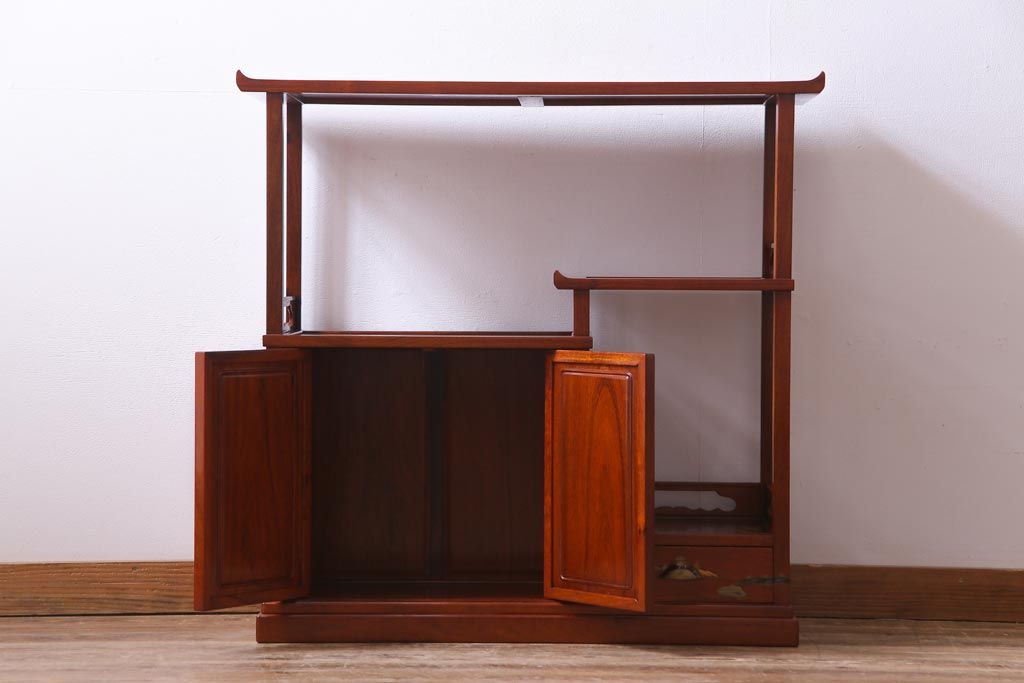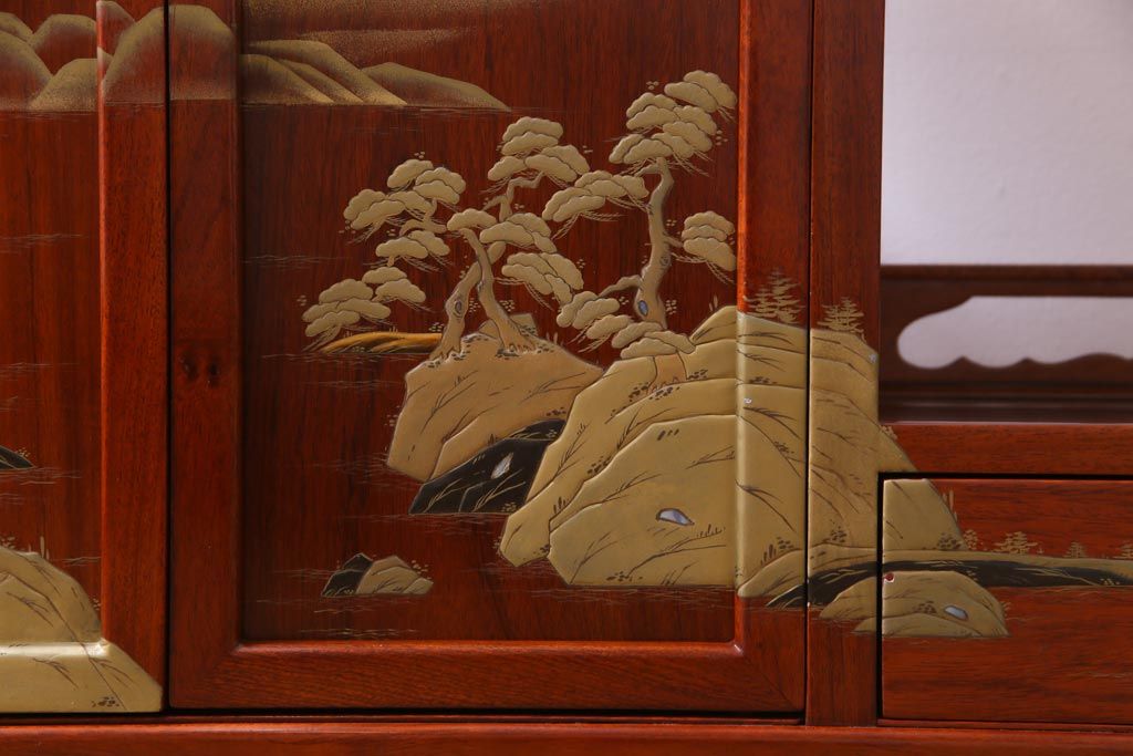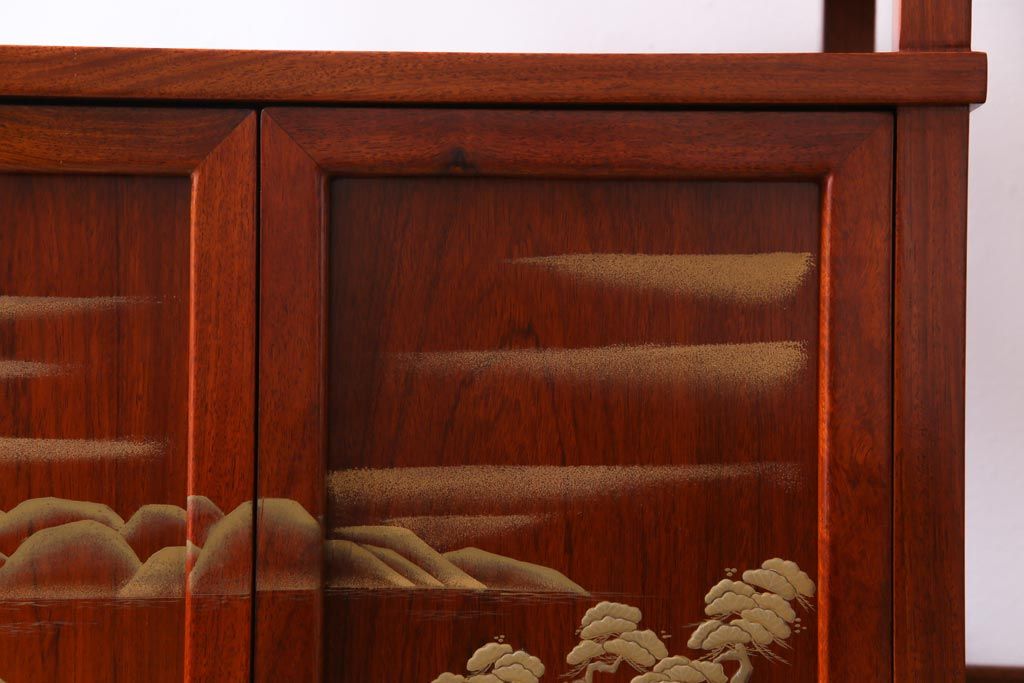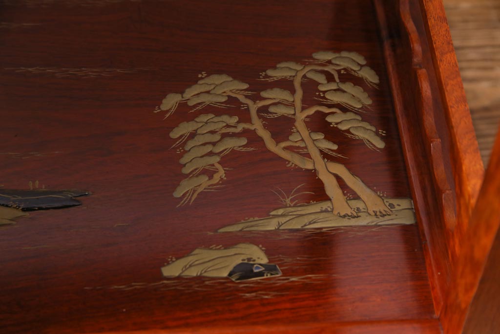 民芸家具 > 中古 カリン材 漆塗り 蒔絵で描かれた松の図が美しい茶棚(飾り棚、花梨材)(定価約40万円)