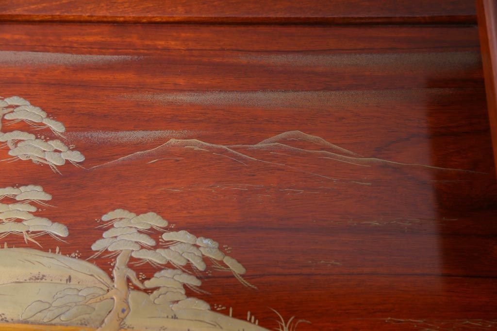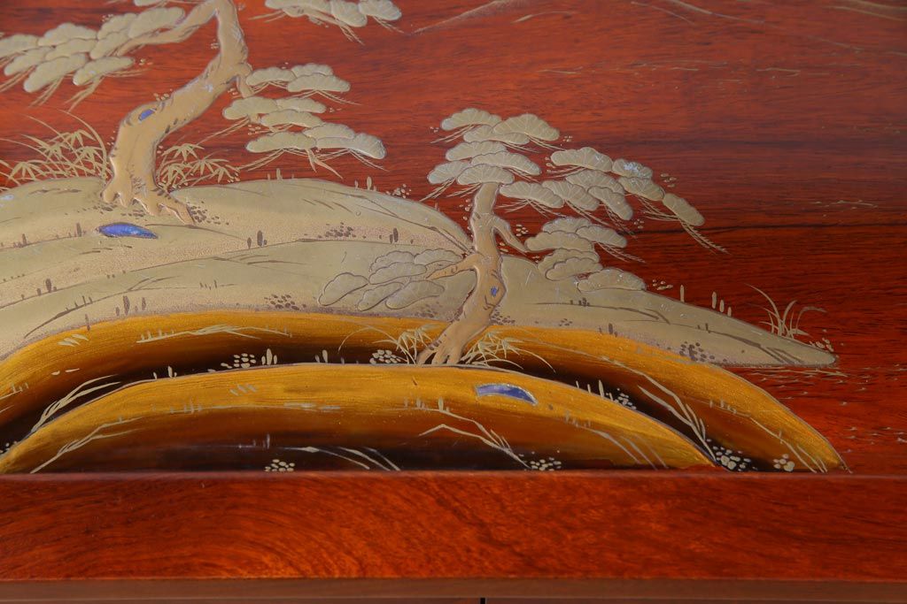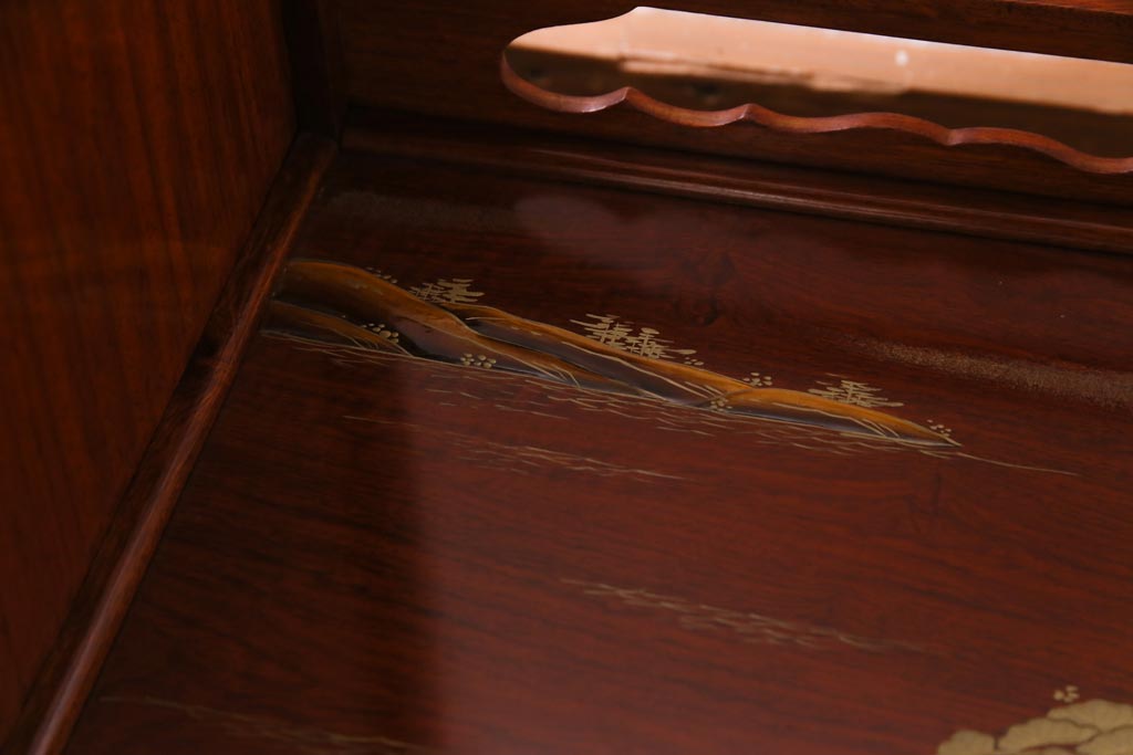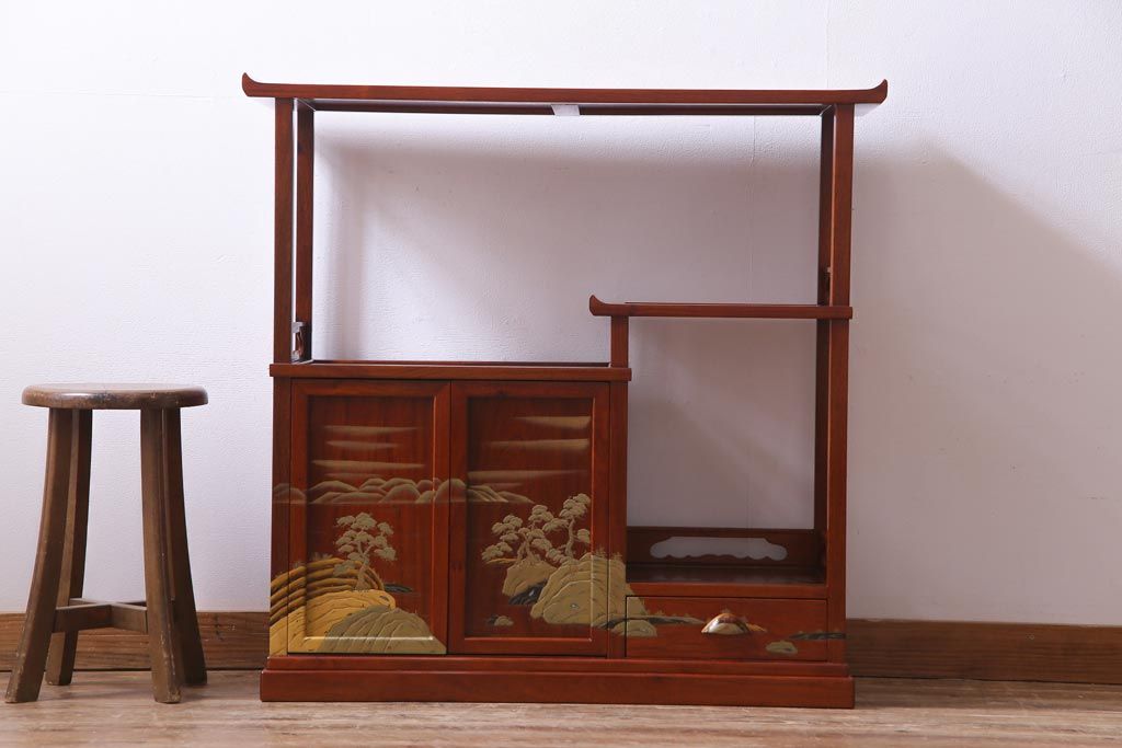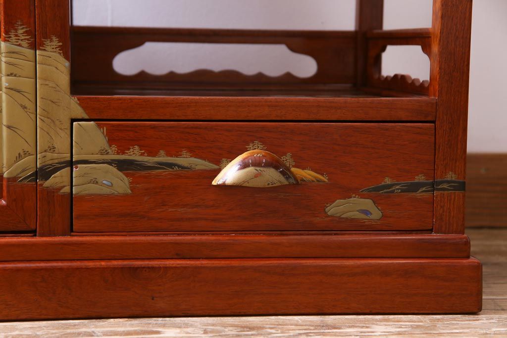 和箪笥 > 中古 カリン材 漆塗り 蒔絵で描かれた松の図が美しい茶棚(飾り棚、花梨材)(定価約40万円)