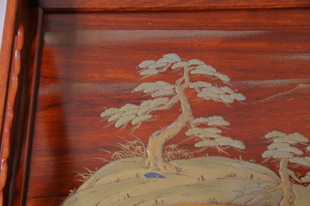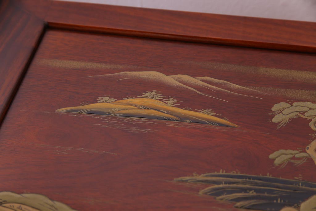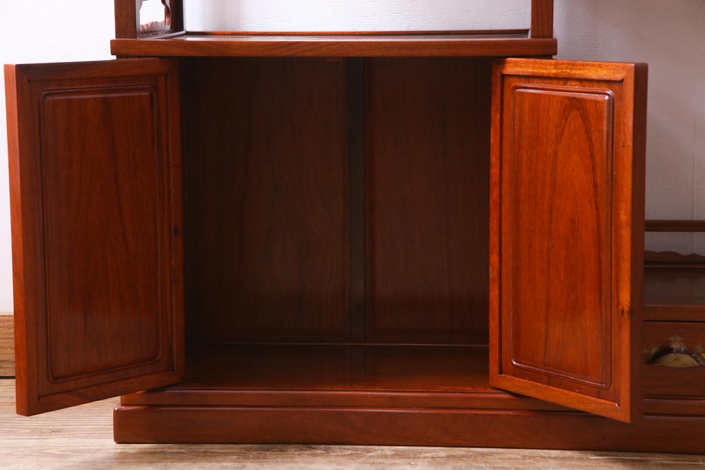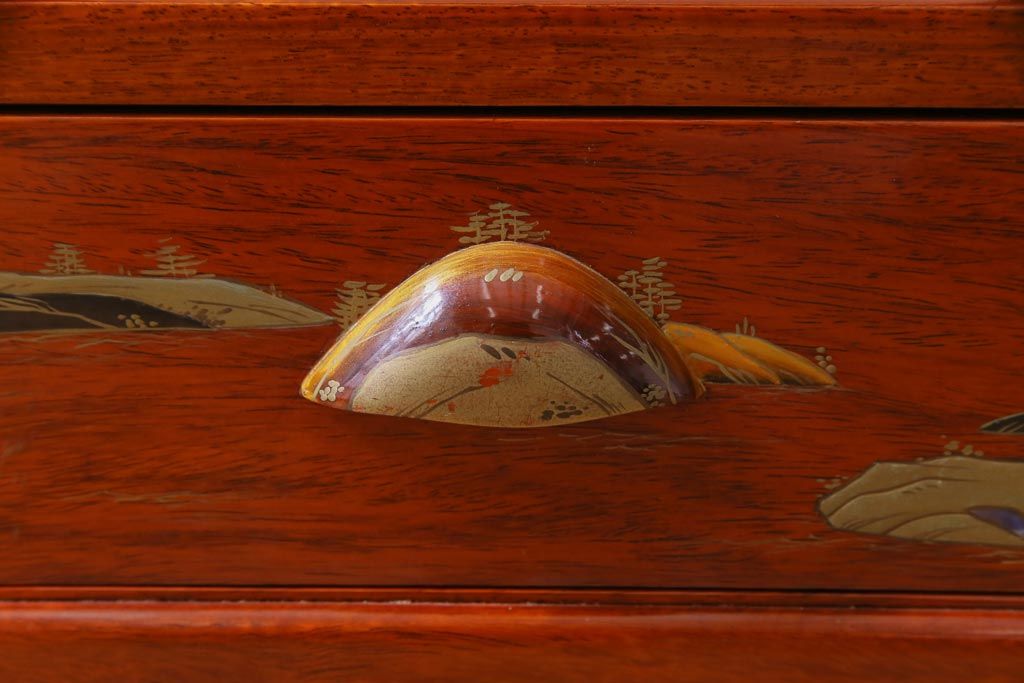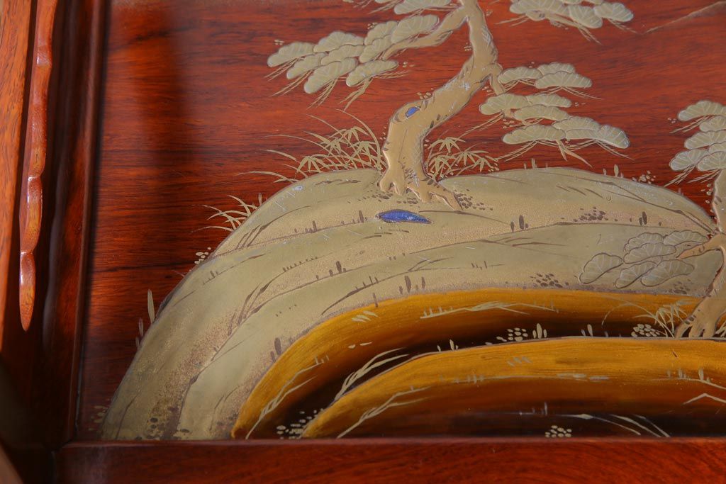 和箪笥 > 中古 カリン材 漆塗り 蒔絵で描かれた松の図が美しい茶棚(飾り棚、花梨材)(定価約40万円)