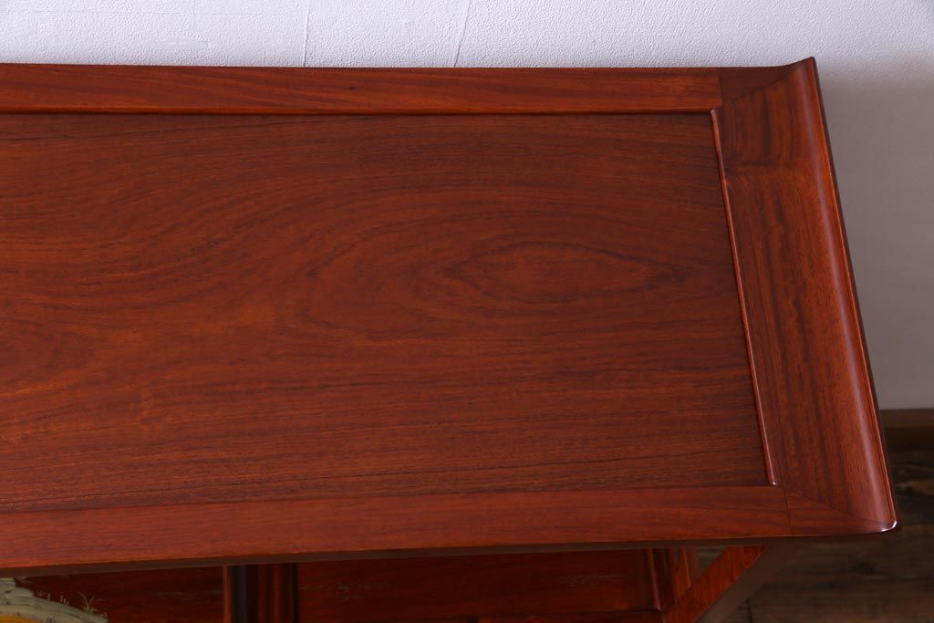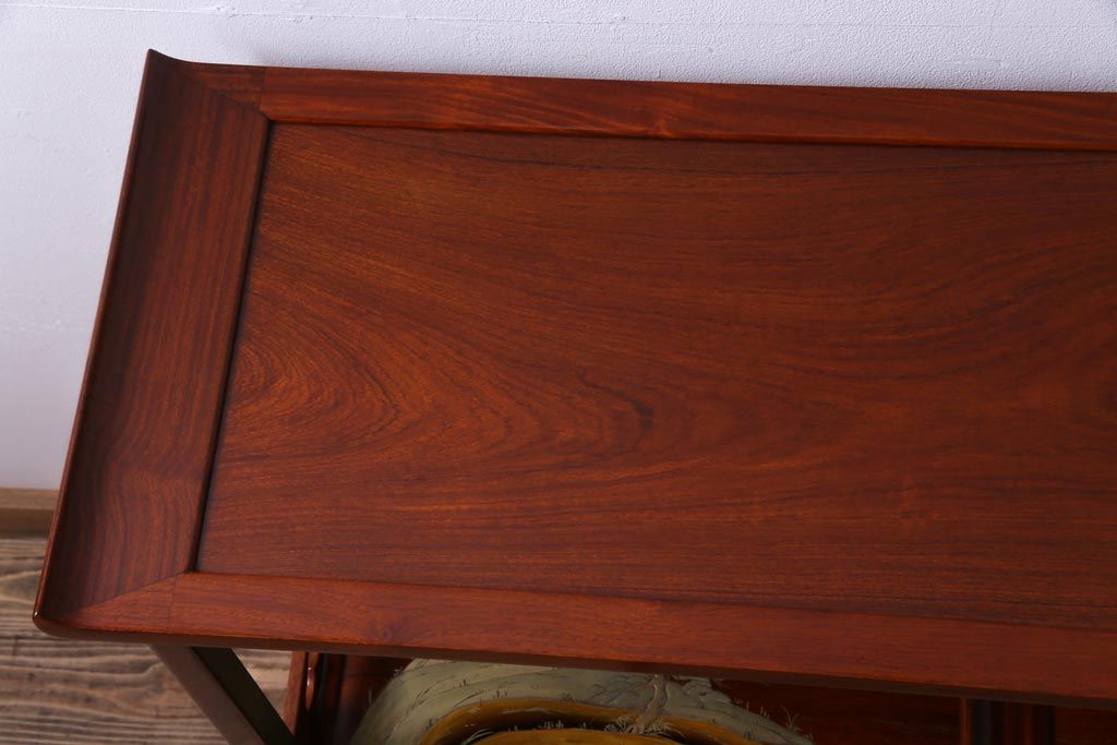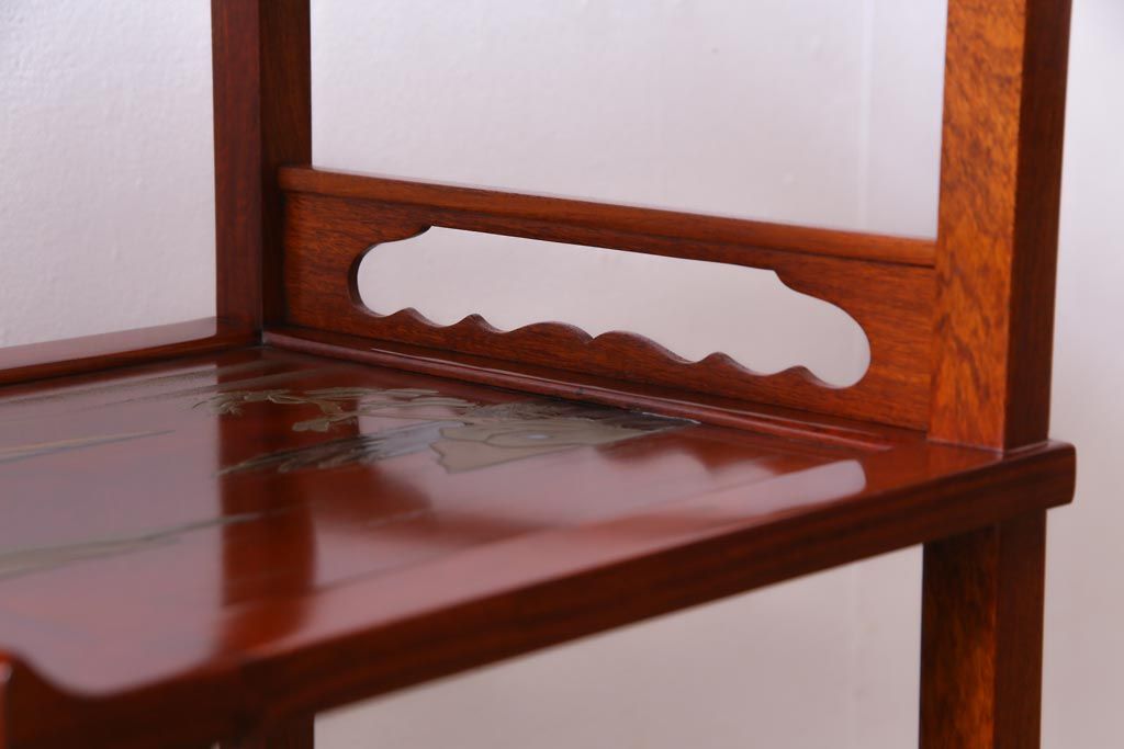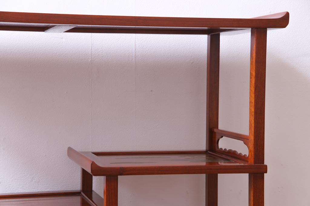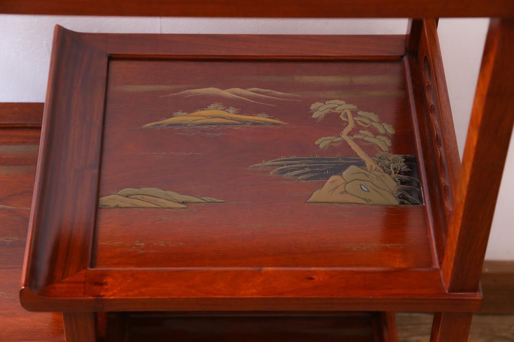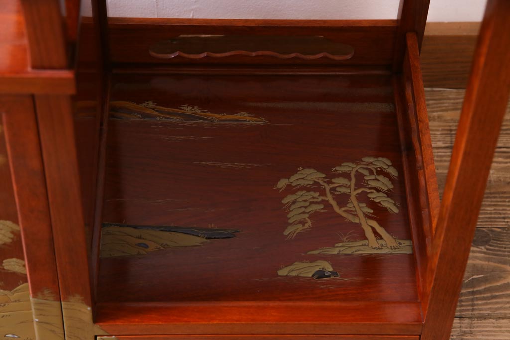 中古 カリン材 漆塗り 蒔絵で描かれた松の図が美しい茶棚(飾り棚、花梨材)(定価約40万円)