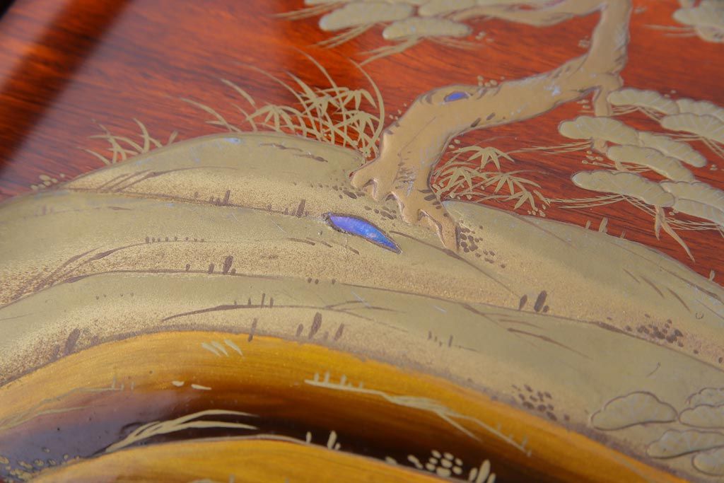 立体的な高蒔絵の松や岩場の差で奥行が感じられ