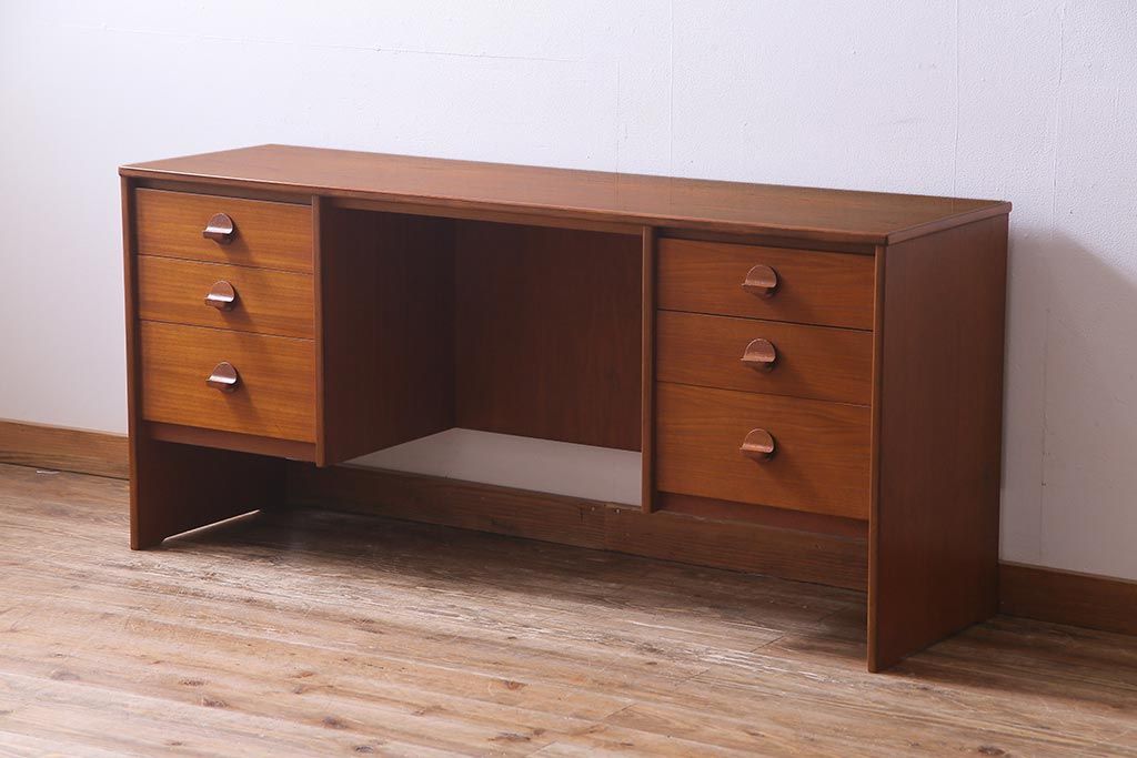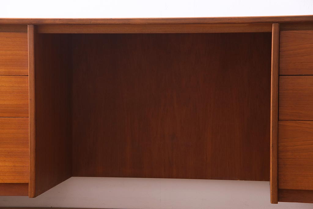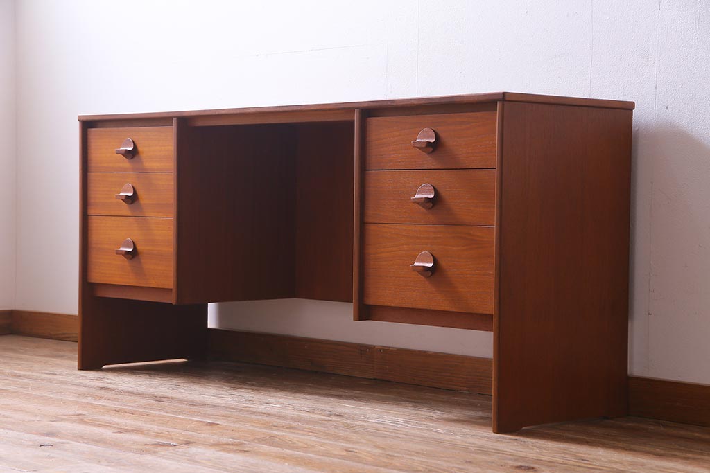 ヴィンテージ家具 イギリスビンテージ STAG社 チーク材 すっきりとしたシルエットのワークデスク(両袖机、在宅ワーク、在宅用)