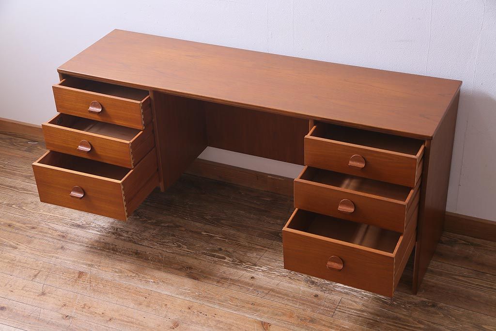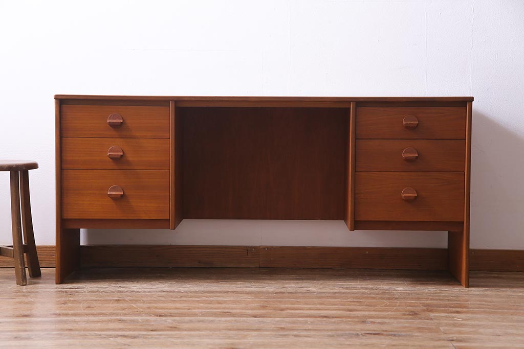 ラフジュ工房> デスク> 片袖机・両袖机 > ヴィンテージ家具 イギリスビンテージ STAG社 チーク材 すっきりとしたシルエットのワークデスク(両袖机、在宅ワーク、在宅用)