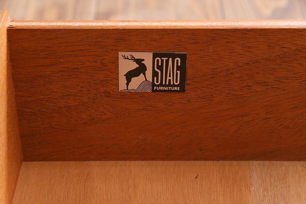 ラフジュ工房> デスク> ワークデスク > ヴィンテージ家具 イギリスビンテージ STAG社 チーク材 すっきりとしたシルエットのワークデスク(両袖机、在宅ワーク、在宅用)