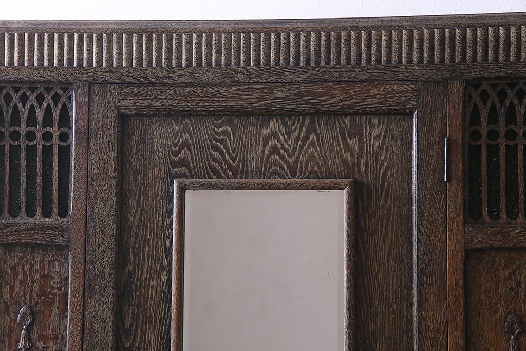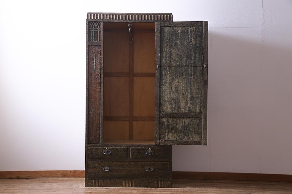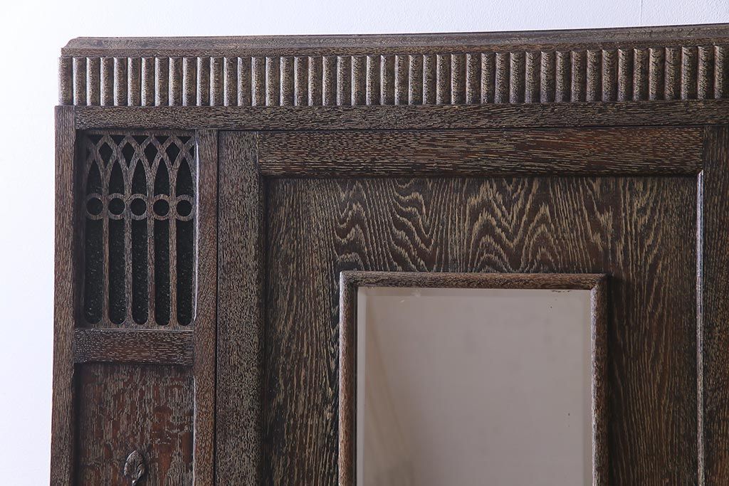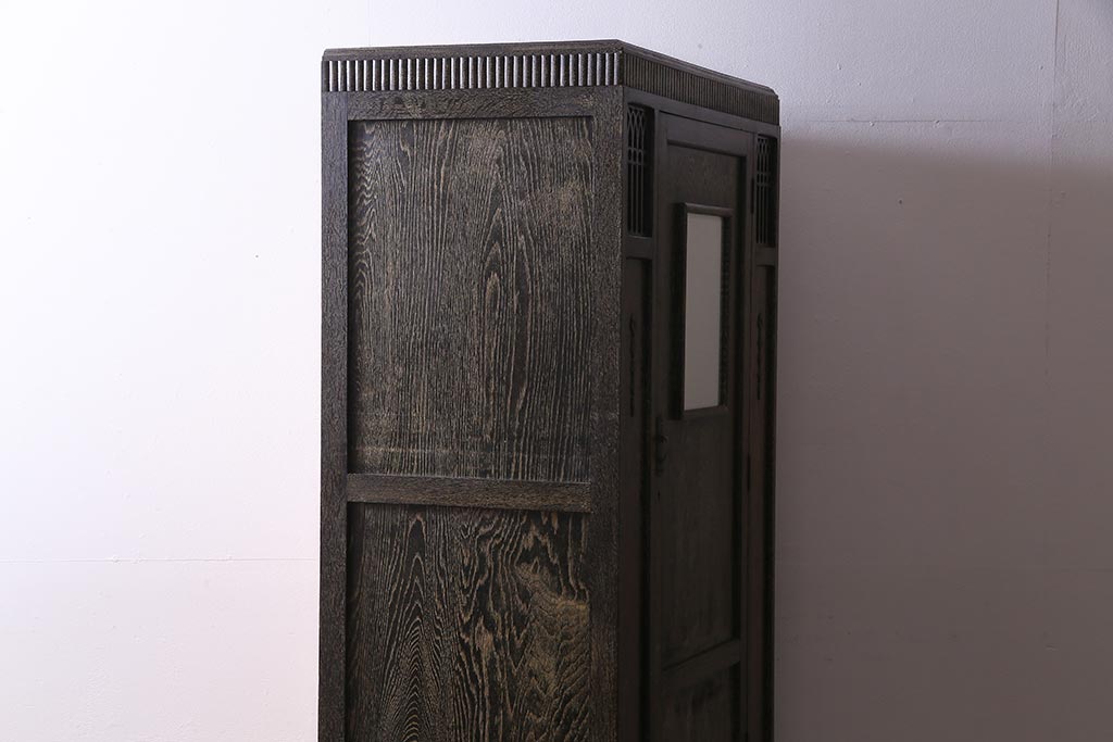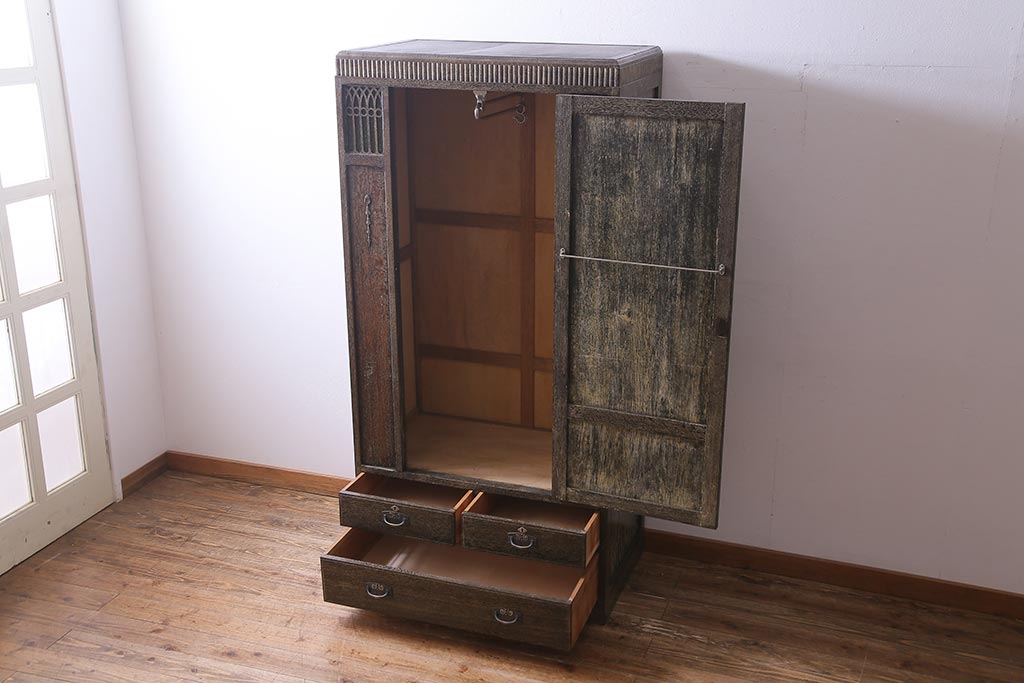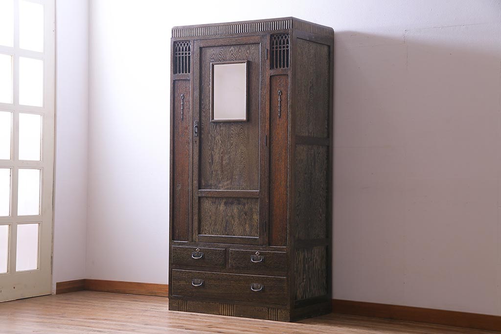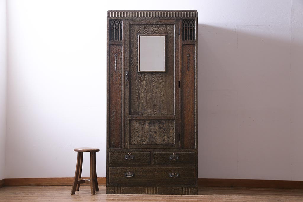 アンティーク家具 大正ロマン 当時物色ガラス 透かしやレリーフが目を引くワードローブ(洋服タンス)