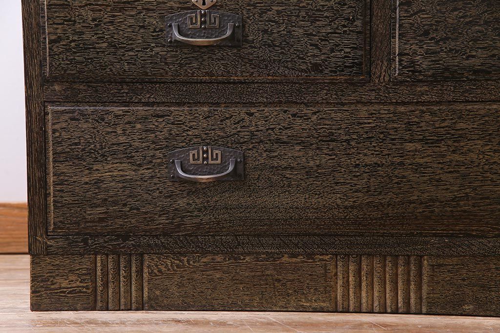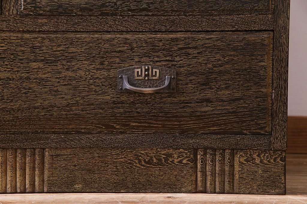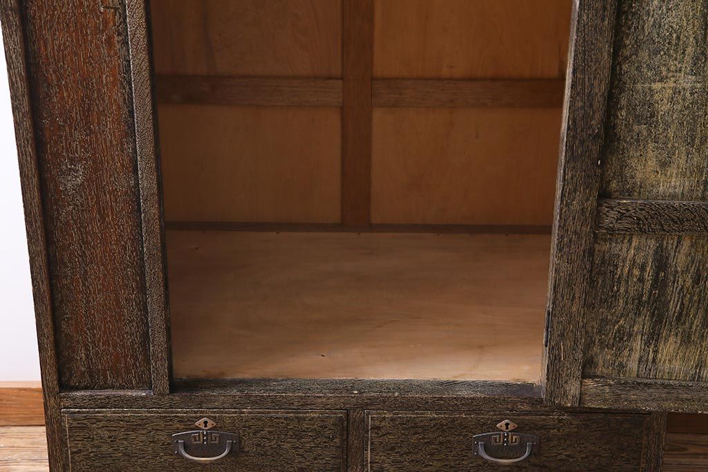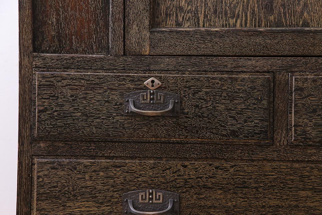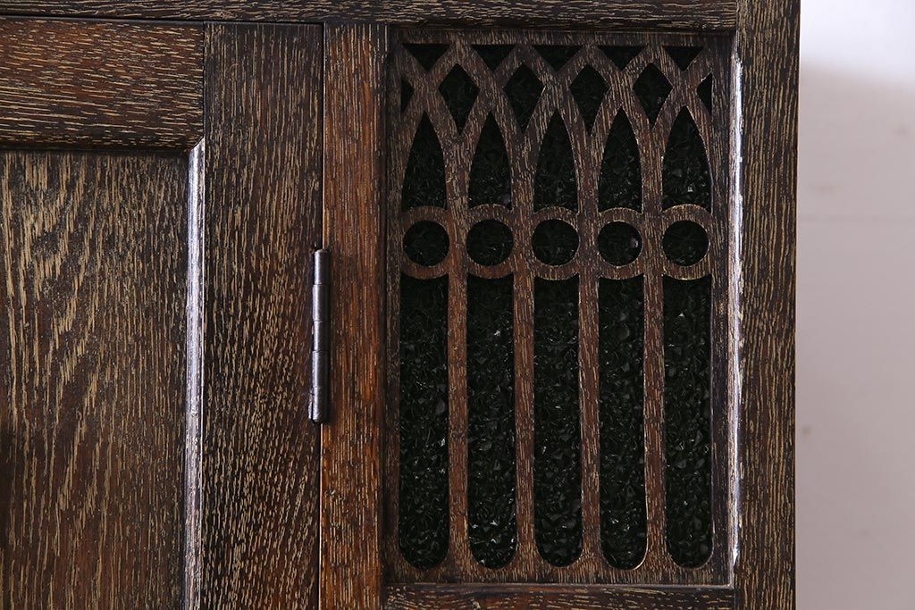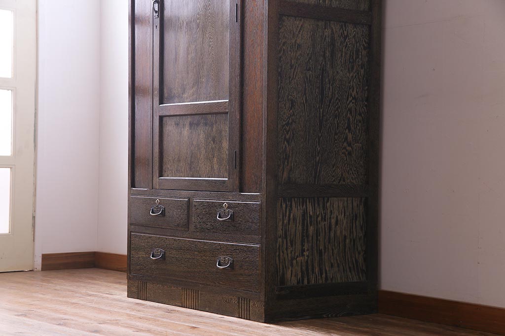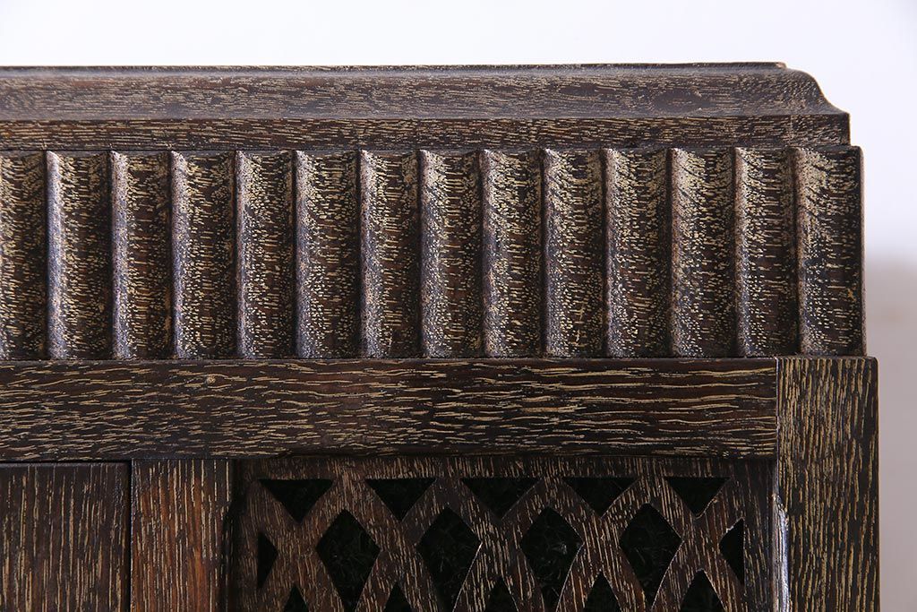アンティーク家具 大正ロマン 当時物色ガラス 透かしやレリーフが目を引くワードローブ(洋服タンス)