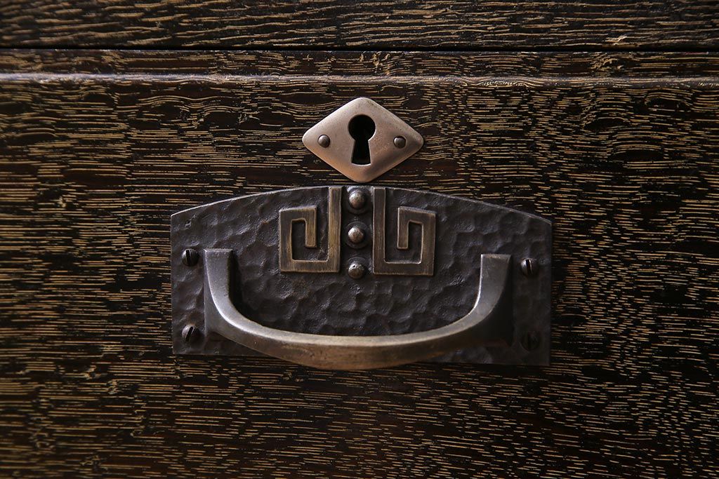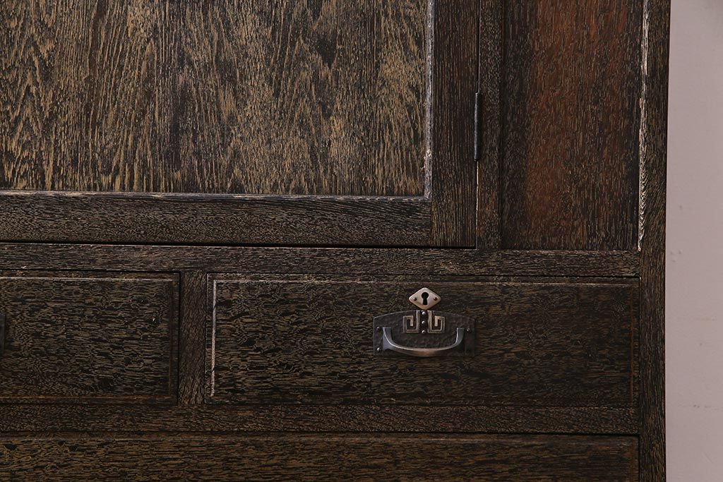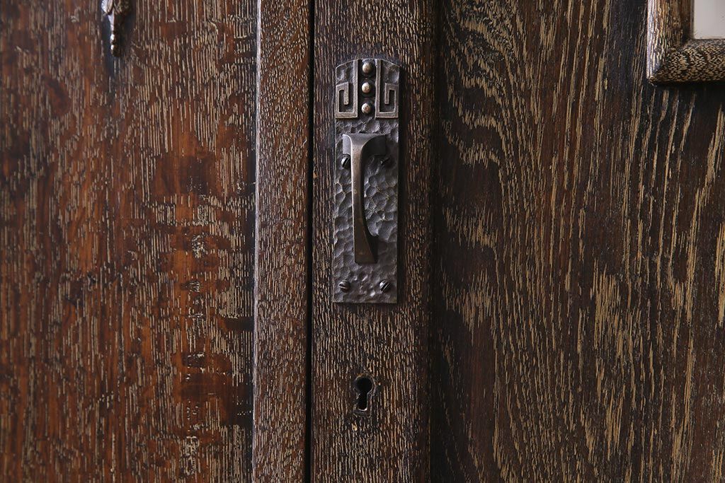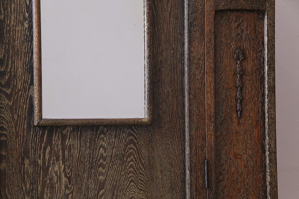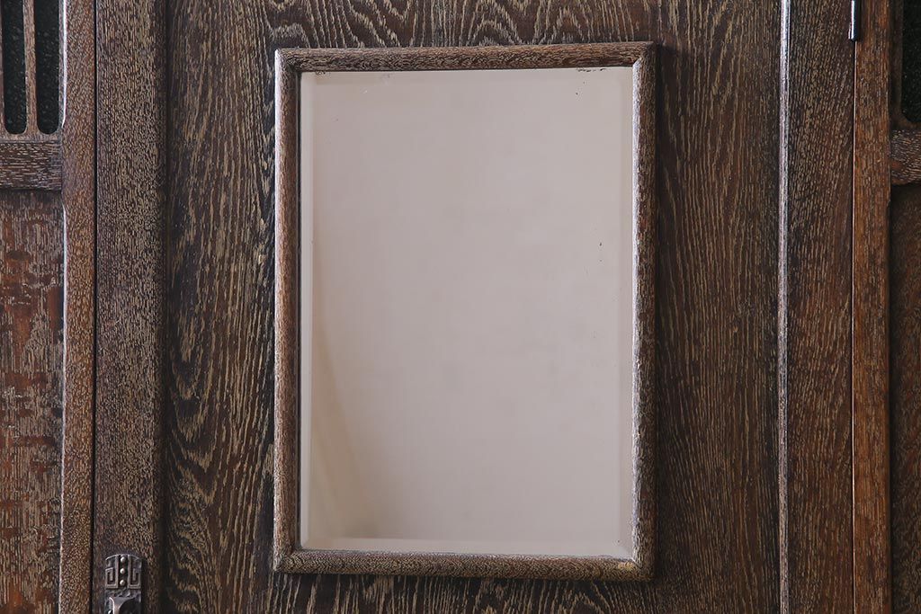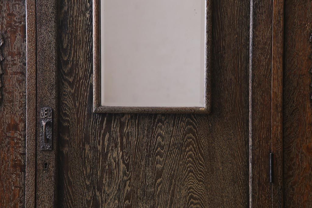 ラフジュ工房> ワードローブ・ロッカー> ワードローブ > アンティーク家具 大正ロマン 当時物色ガラス 透かしやレリーフが目を引くワードローブ(洋服タンス)