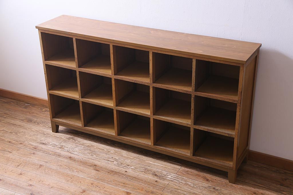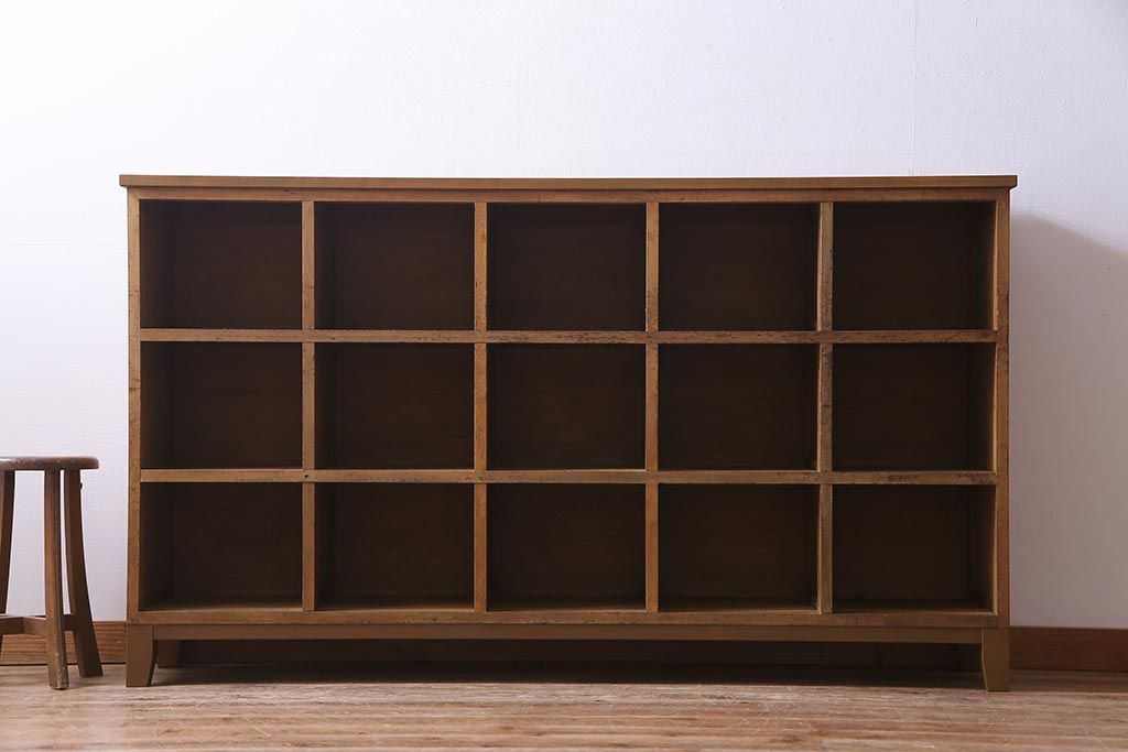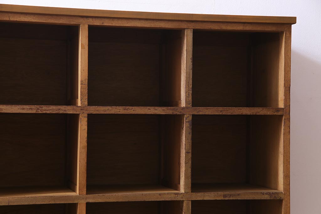 昭和レトロ 脚付き 素朴な木味が懐かしい雰囲気を醸し出すロッカー(下駄箱、マス目棚)(1)です。