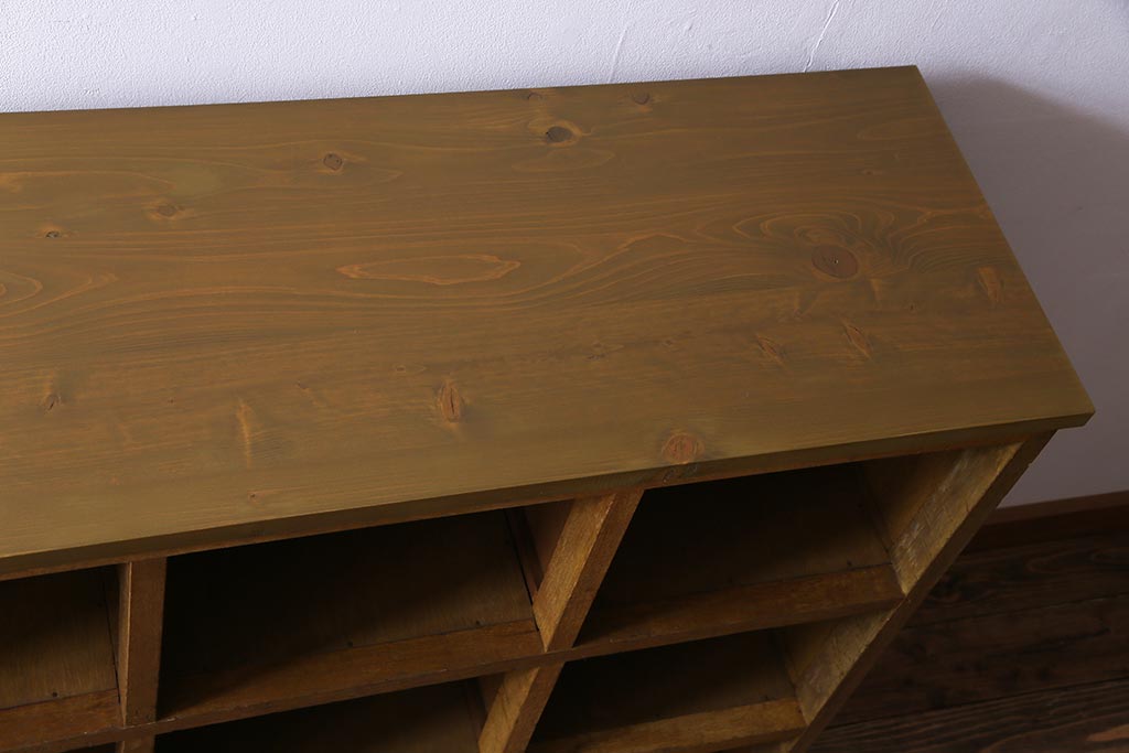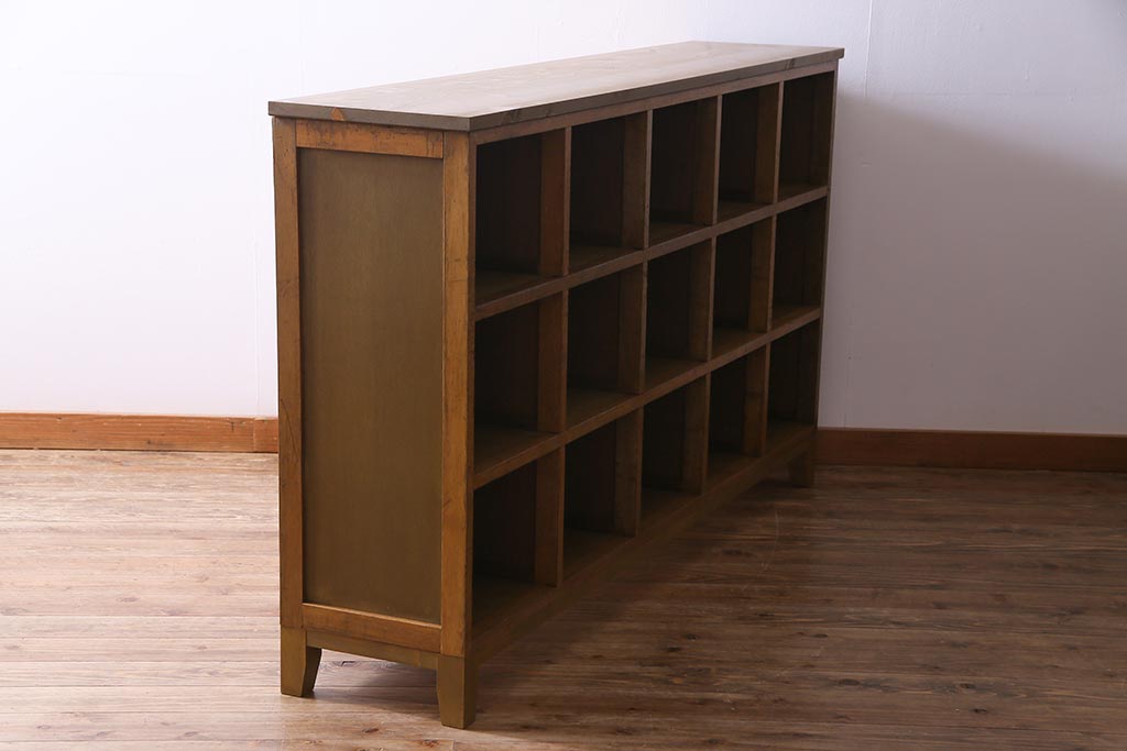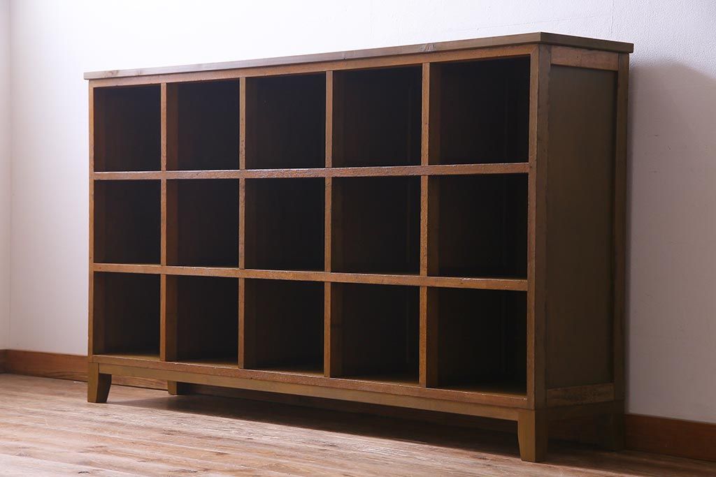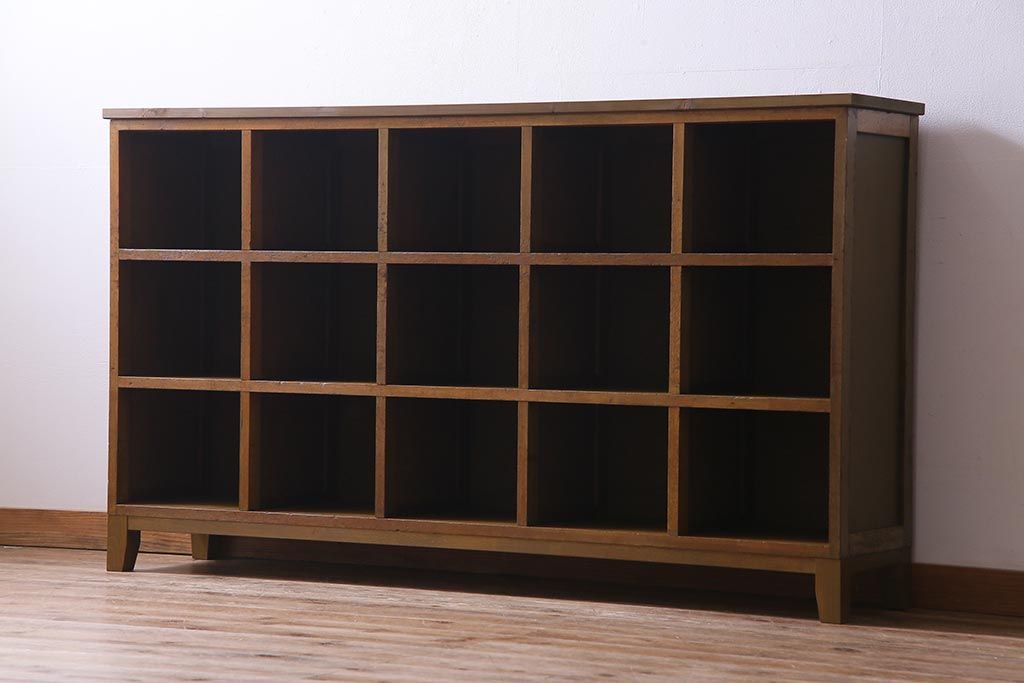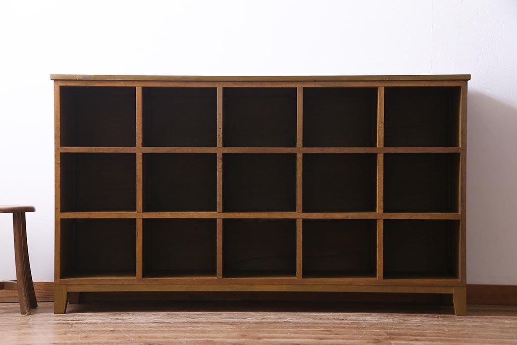 ラフジュ工房> オープンラック・シェルフ> ディスプレイラック > レトロ家具 昭和レトロ 脚付き 素朴な木味が懐かしい雰囲気を醸し出すロッカー(下駄箱、マス目棚)(2)