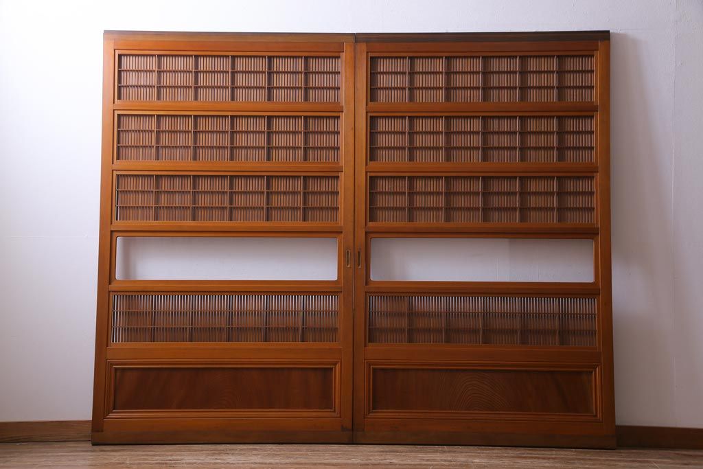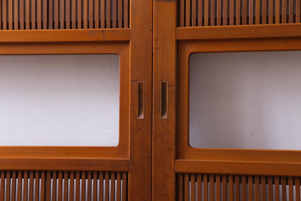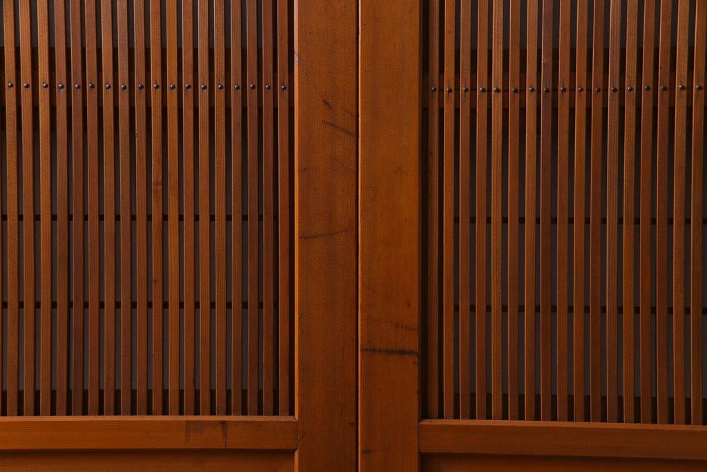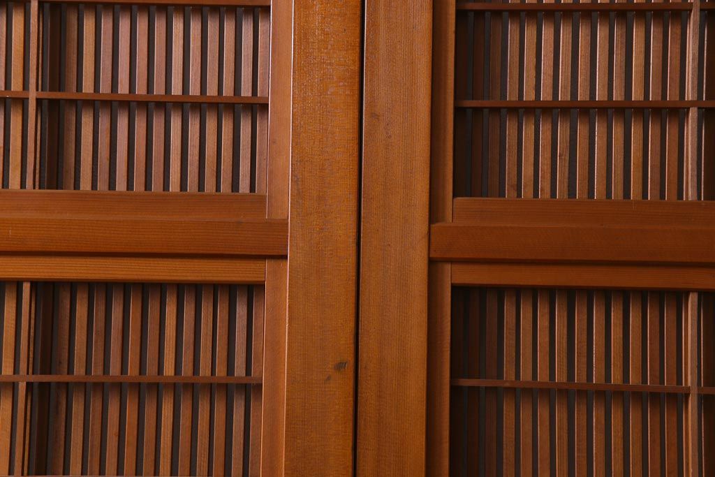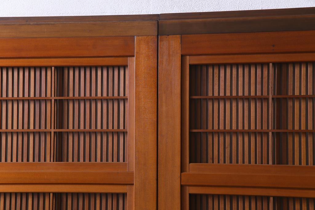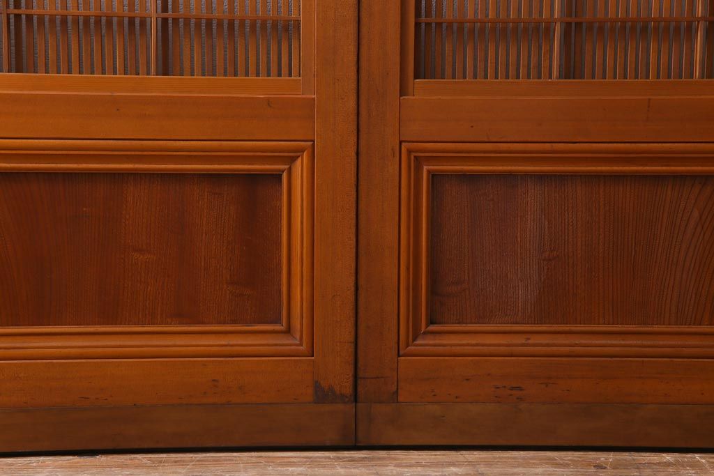 昭和中期 極上品 腰板ケヤキ材 趣と品のある佇まいが魅力の万本格子戸2枚セット(引き戸、建具)
