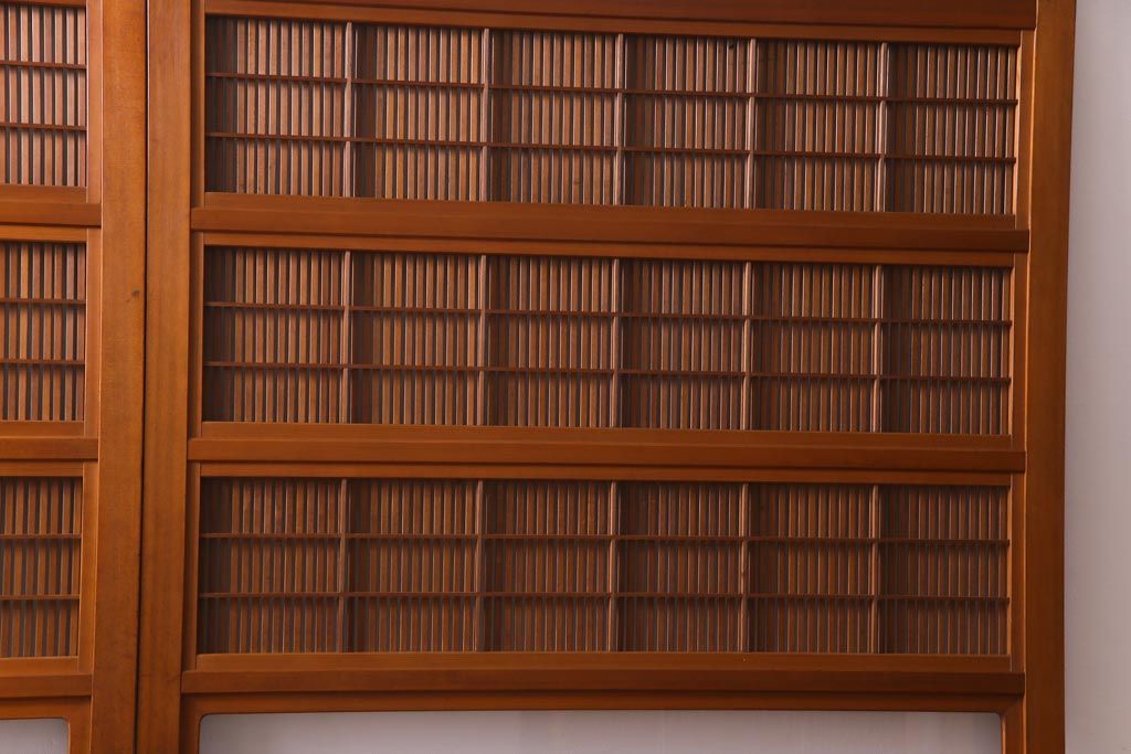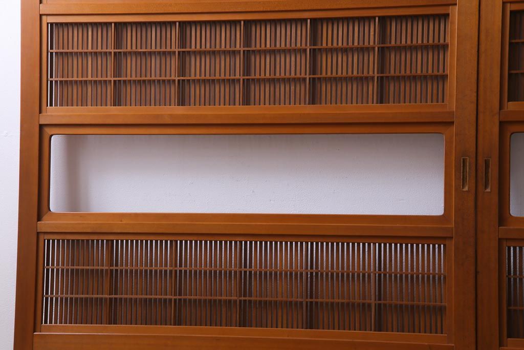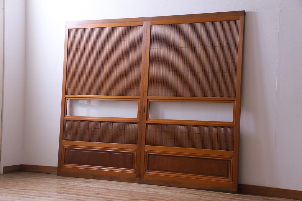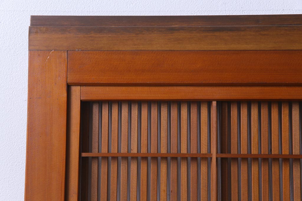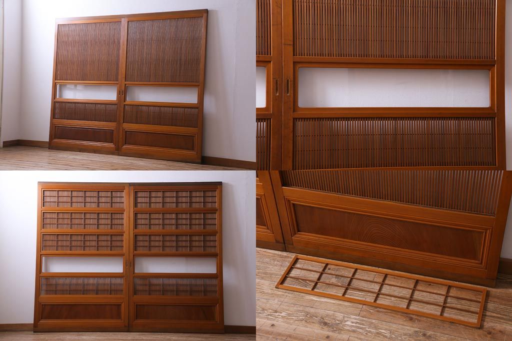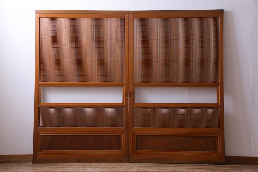昭和中期 極上品 腰板ケヤキ材 趣と品のある佇まいが魅力の万本格子戸2枚セット(引き戸、建具)
