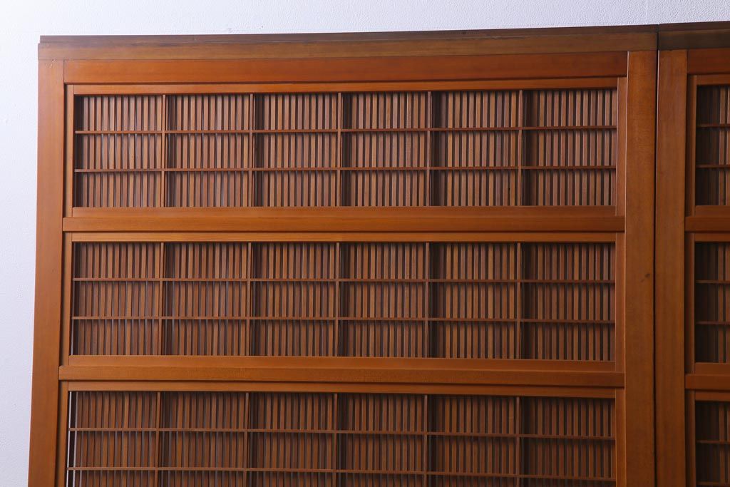 昭和中期 極上品 腰板ケヤキ材 趣と品のある佇まいが魅力の万本格子戸2枚セット(引き戸、建具)です。