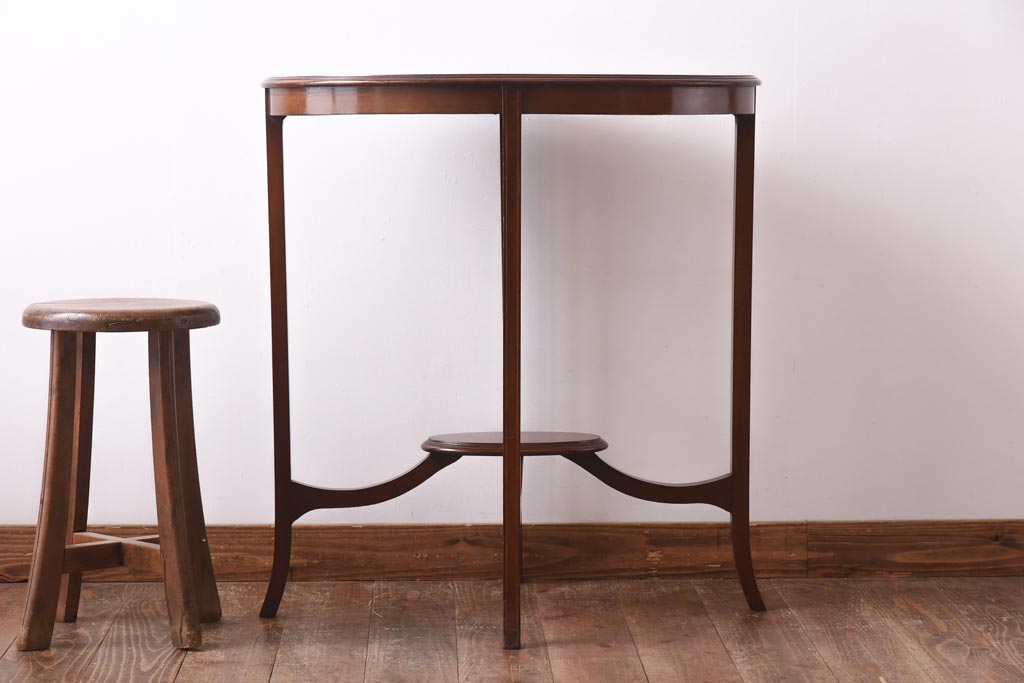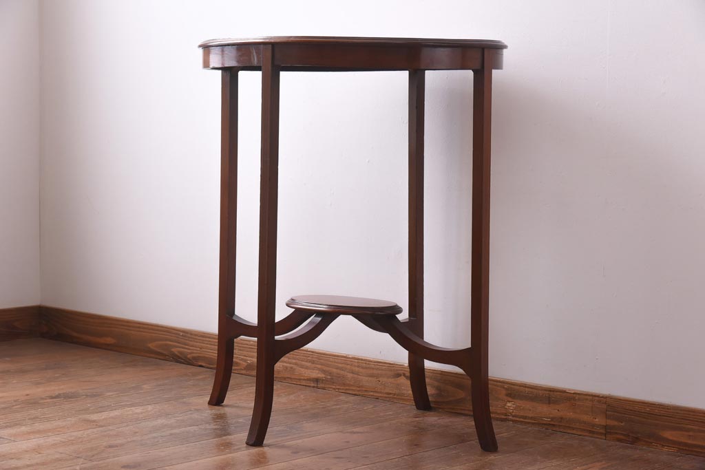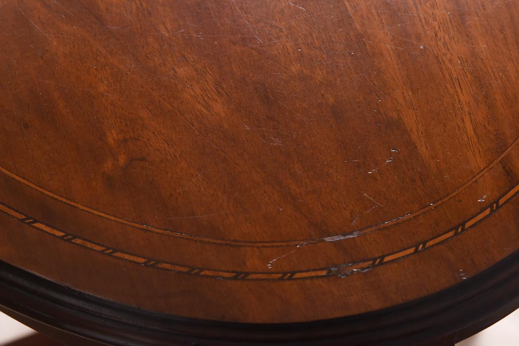 アンティーク家具 イギリスアンティーク マホガニー材 象嵌 上品な雰囲気が魅力のサイドテーブル(飾り台)