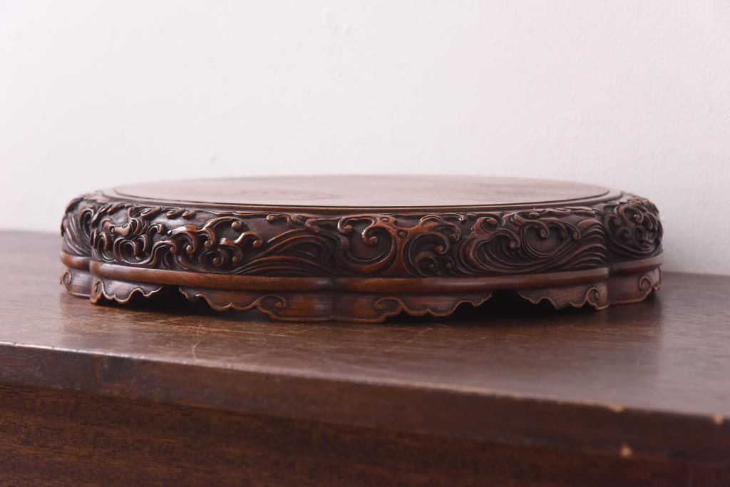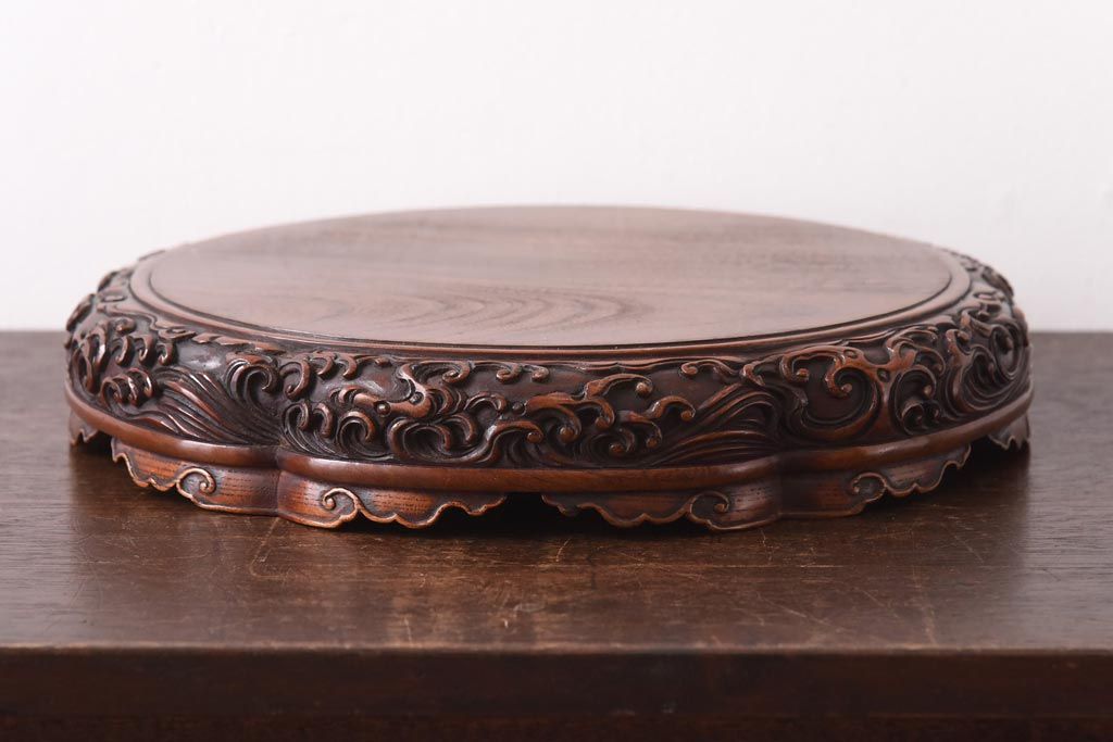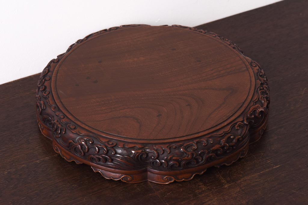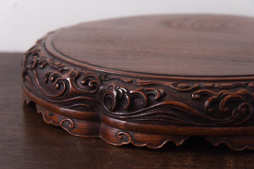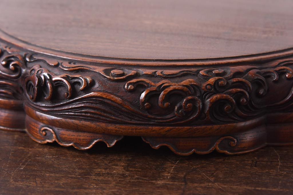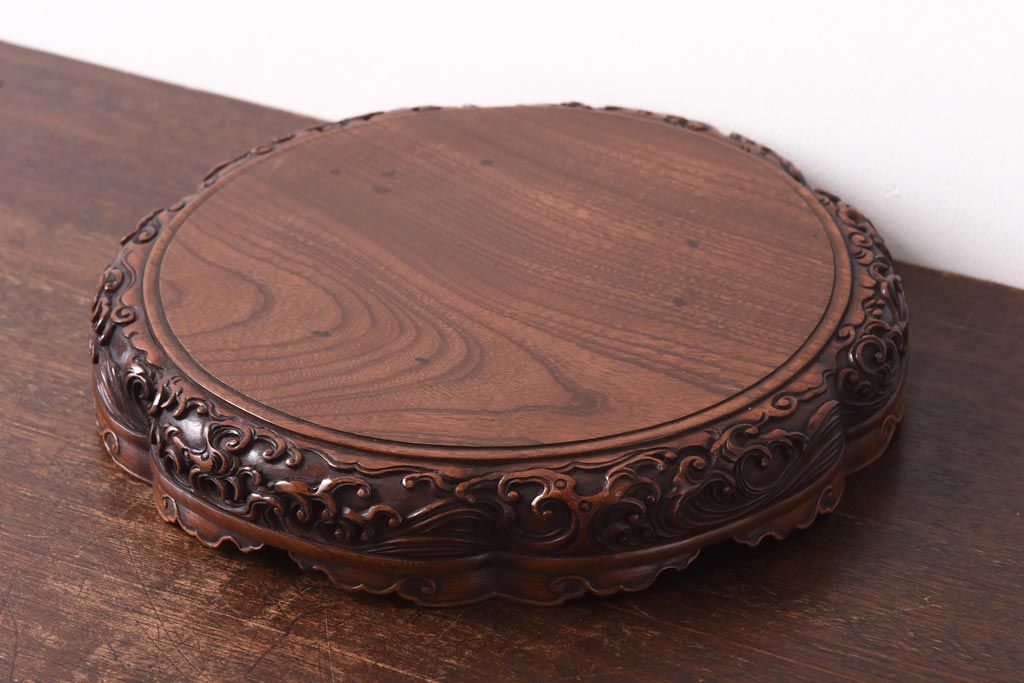 花台・飾り台 > アンティーク雑貨 和製アンティーク ケヤキ材 激レア!美術品のような彫刻が目を引く花台