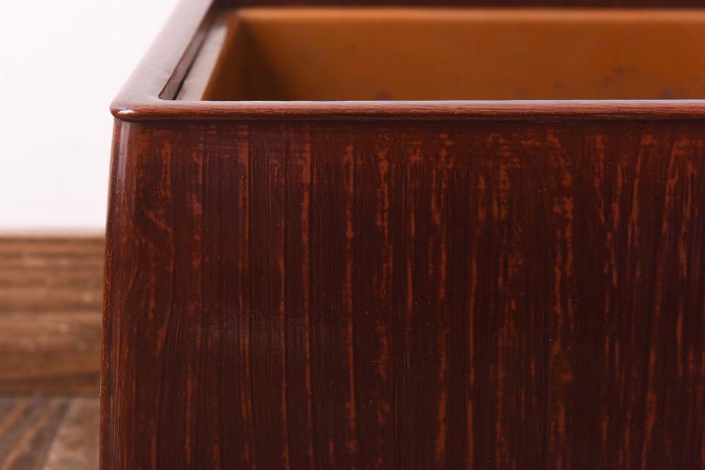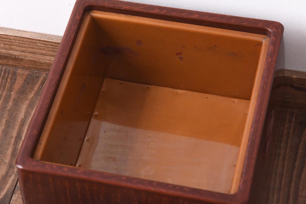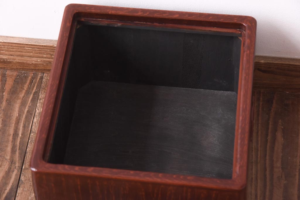 火鉢> 木製火鉢 > アンティーク雑貨 和製アンティーク 漆塗り 上品な雰囲気漂う角火鉢(手あぶり、箱火鉢)