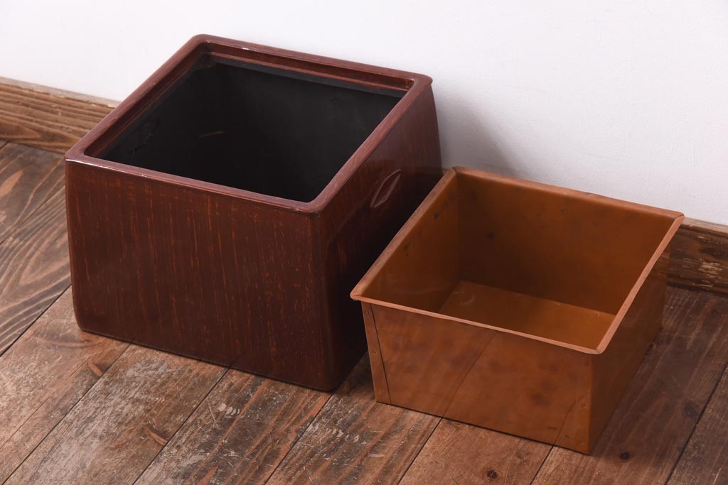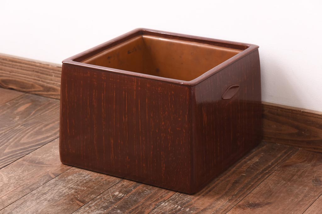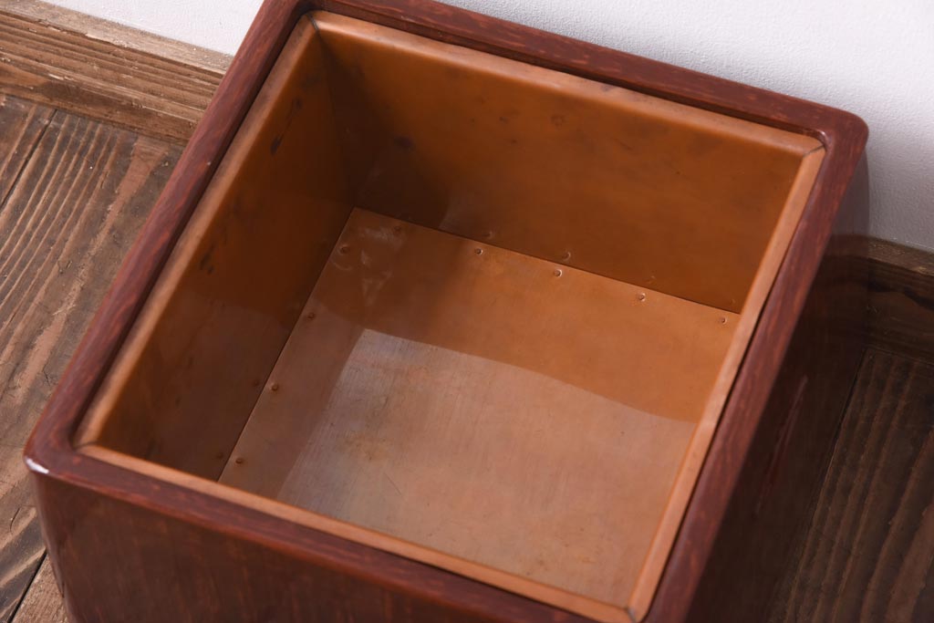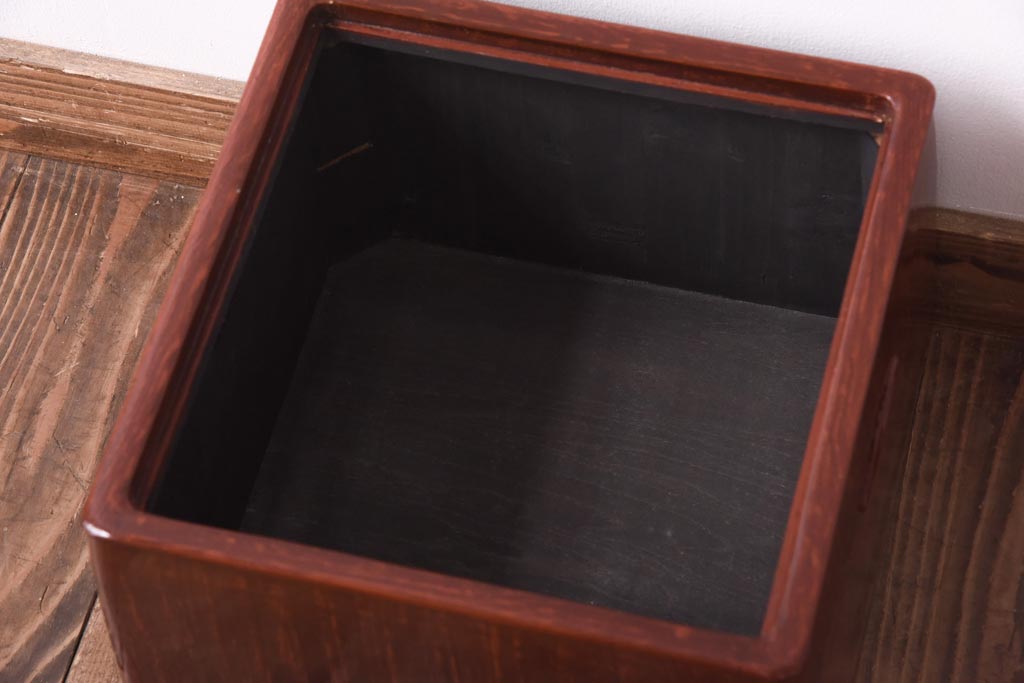 火鉢> 木製火鉢 > アンティーク雑貨 和製アンティーク 漆塗り 上品な雰囲気漂う角火鉢(手あぶり、箱火鉢)(1)