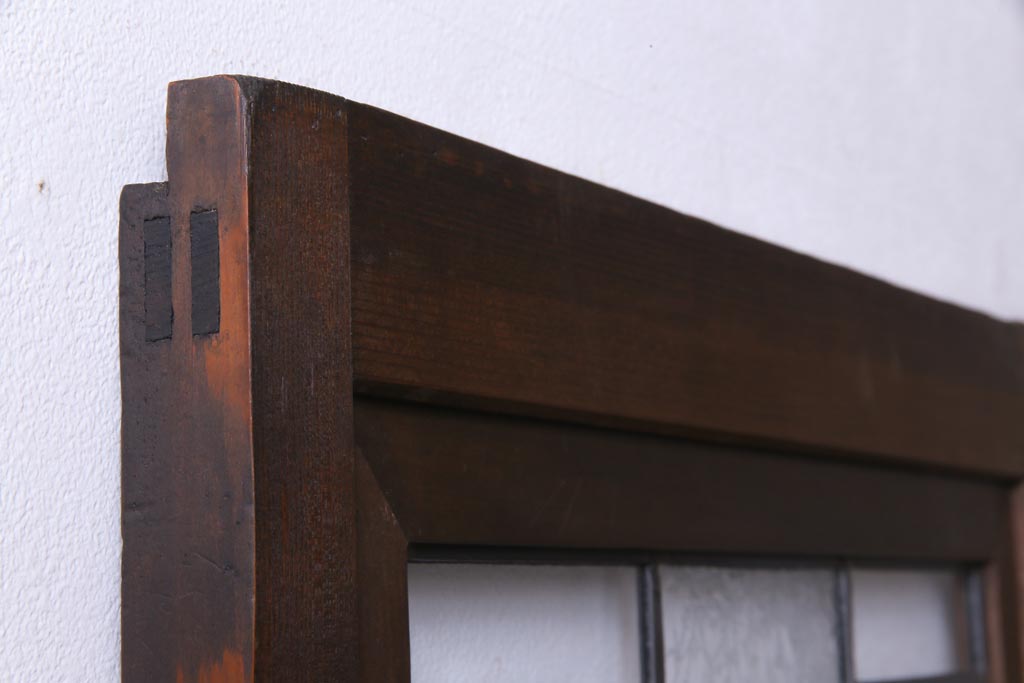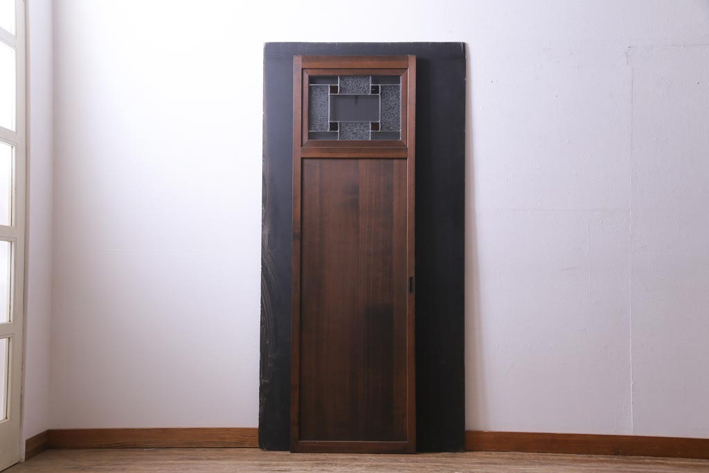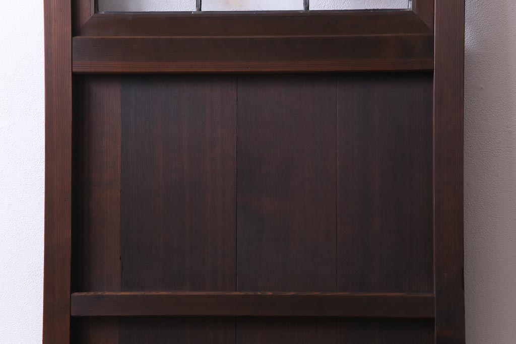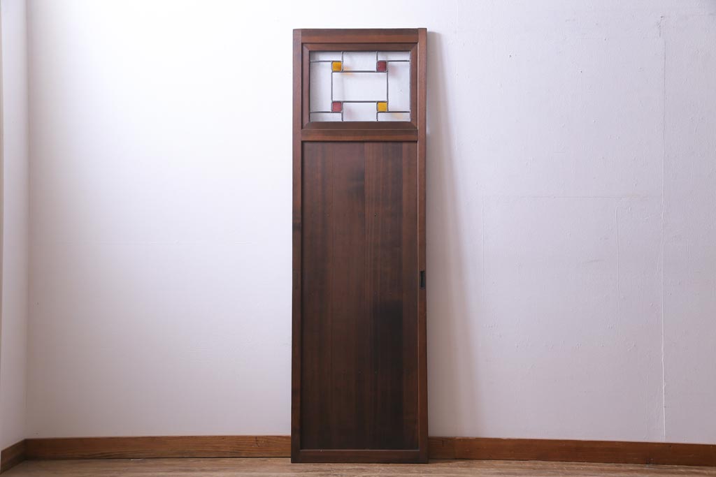 昭和初期 ラフジュ工房オリジナルステンドグラス 色ガラスと結霜ガラスがアクセントのステンドグラス入り引戸1枚(建具)(1)