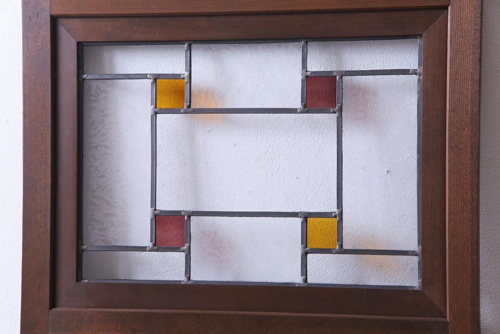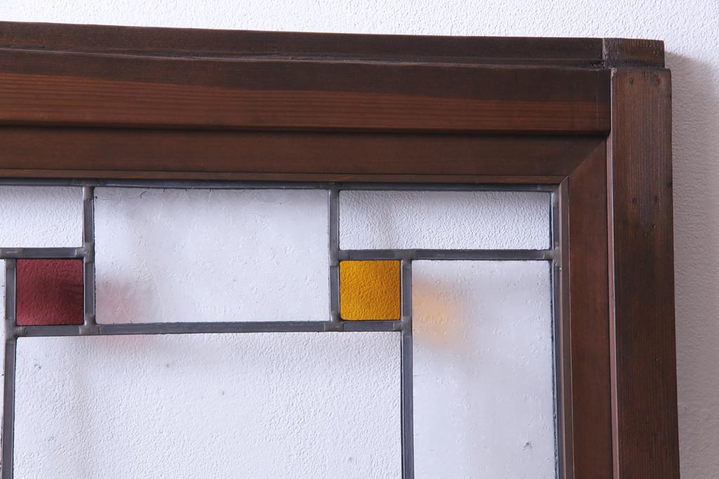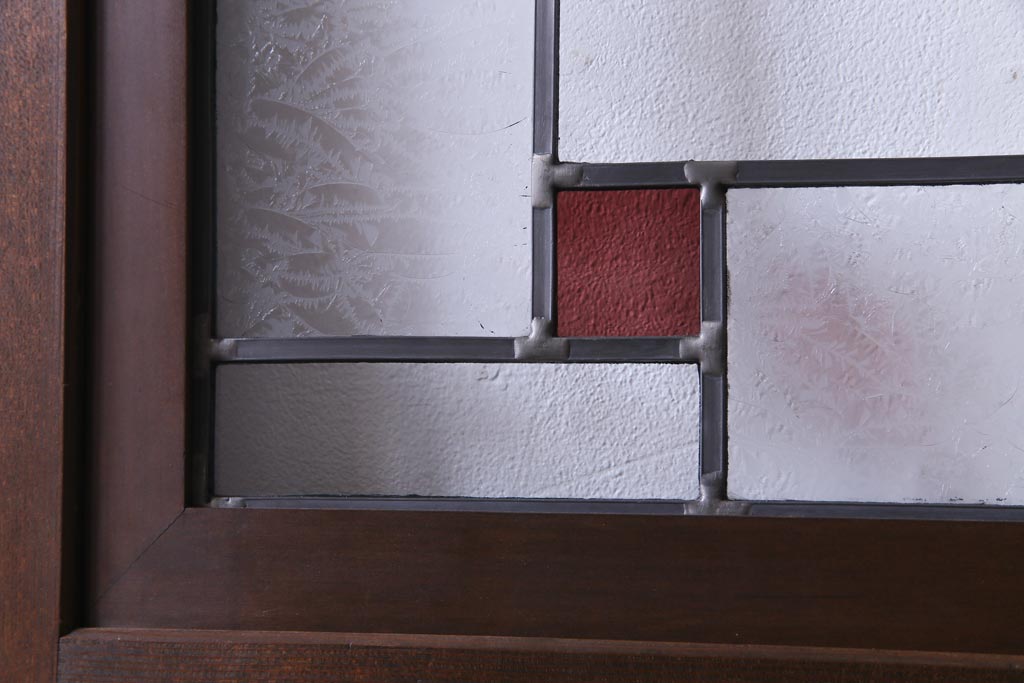 ステンドグラス > 昭和初期 ラフジュ工房オリジナルステンドグラス 色ガラスと結霜ガラスがアクセントのステンドグラス入り引戸1枚(建具)(1)