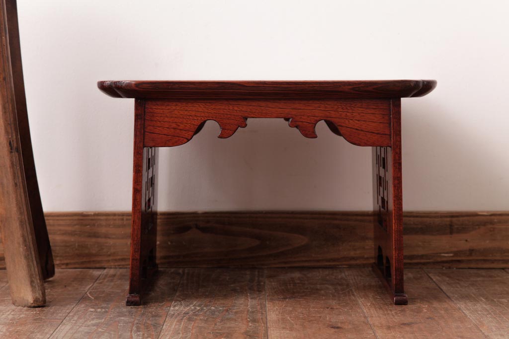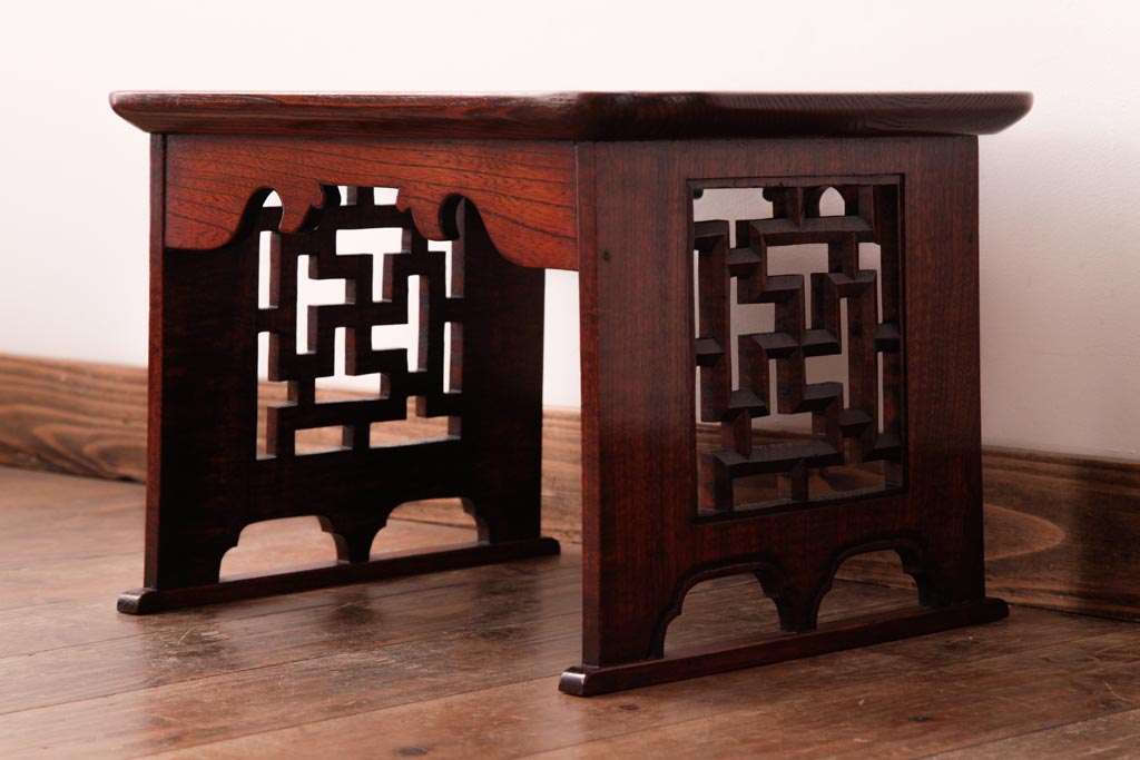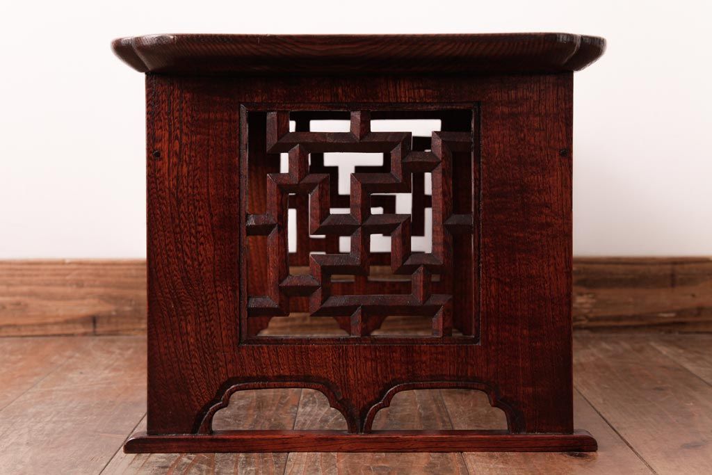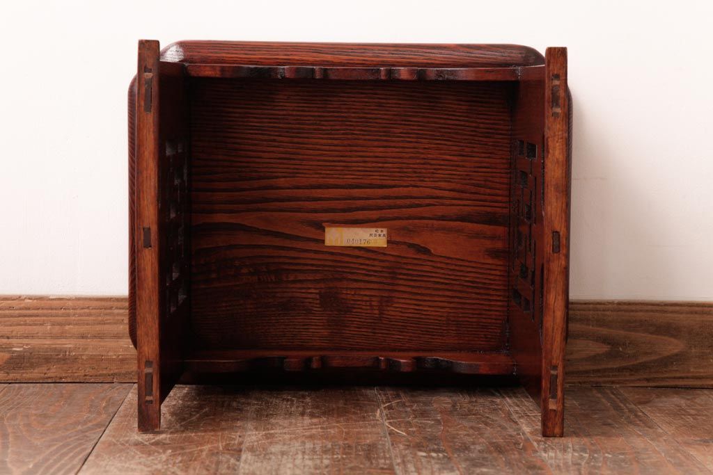 中古 松本民芸家具 栗・ケヤキ材 卍の透かし彫りが目を引く漆塗りの脚付膳(お膳)