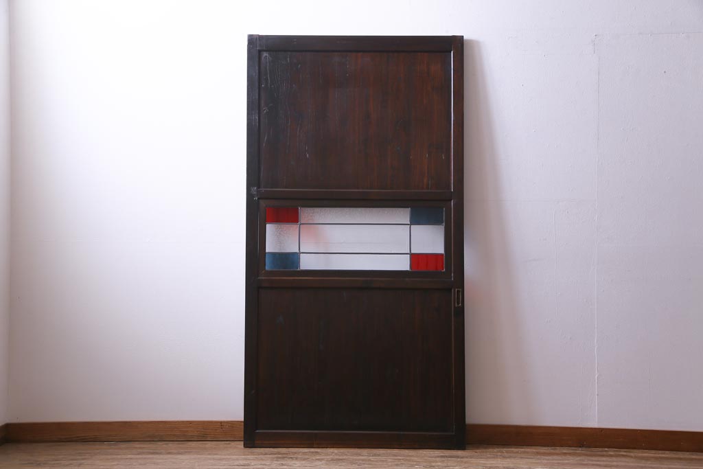 和製アンティーク ラフジュ工房オリジナルステンドグラス 結霜ガラスとステンドグラス入りの和モダンなガラス帯戸1枚(板戸、引戸)です。