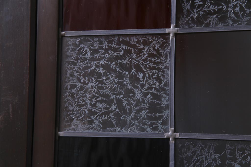 ドア・建具> 板戸・帯戸 > 和製アンティーク ラフジュ工房オリジナルステンドグラス 結霜ガラスとステンドグラス入りの和モダンなガラス帯戸1枚(板戸、引戸)