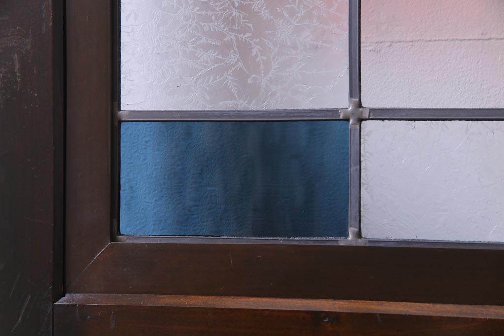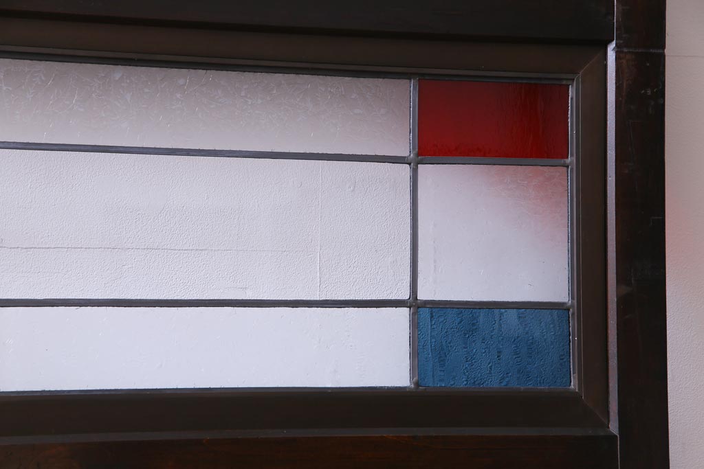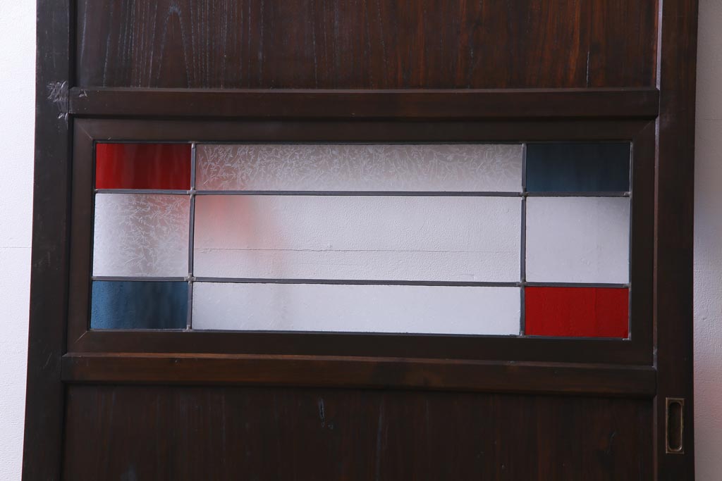 ドア・建具> ガラス戸 > 和製アンティーク ラフジュ工房オリジナルステンドグラス 結霜ガラスとステンドグラス入りの和モダンなガラス帯戸1枚(板戸、引戸)