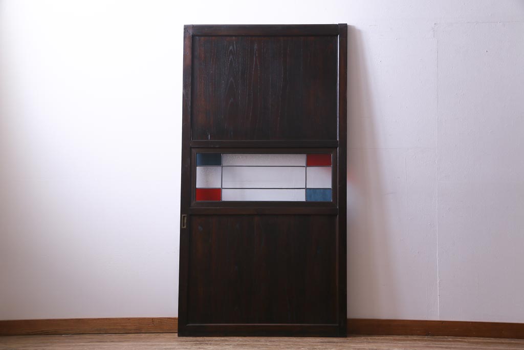 和製アンティーク ラフジュ工房オリジナルステンドグラス 結霜ガラスとステンドグラス入りの和モダンなガラス帯戸1枚(板戸、引戸)