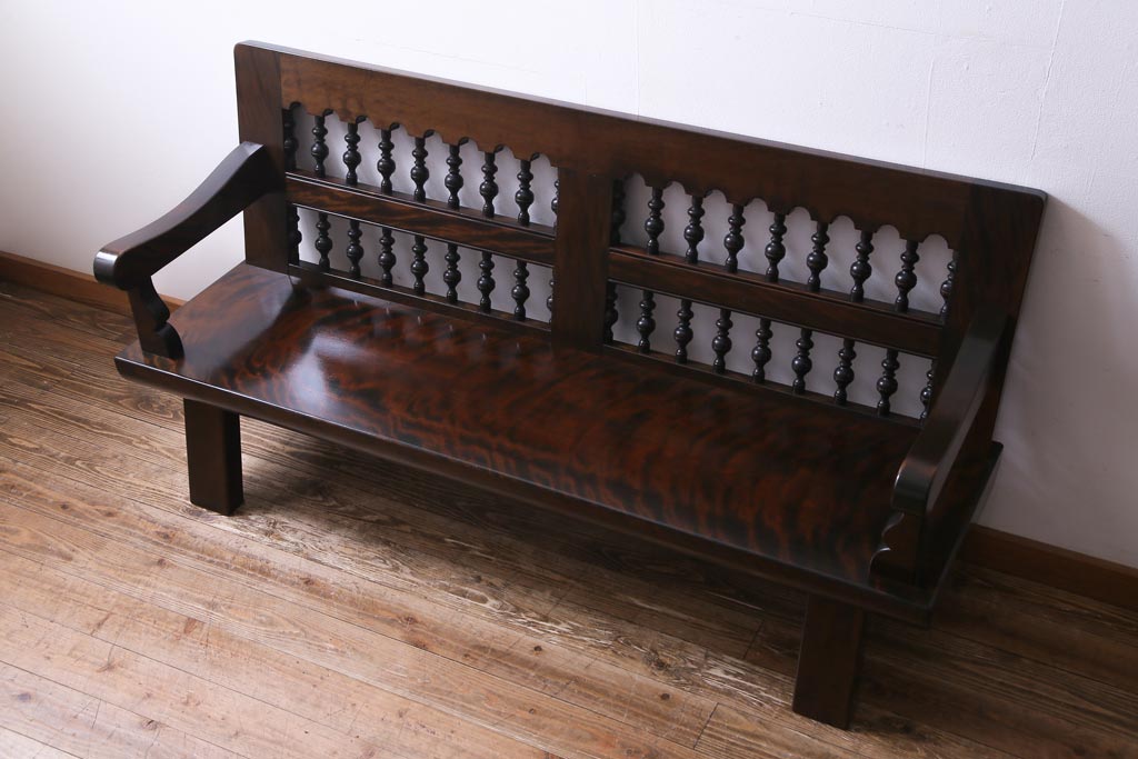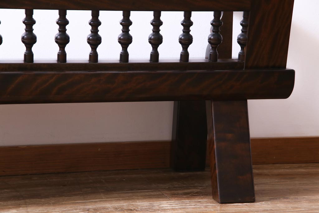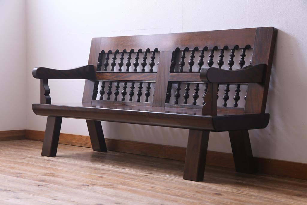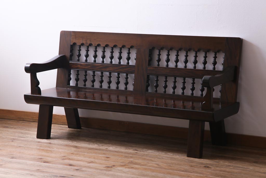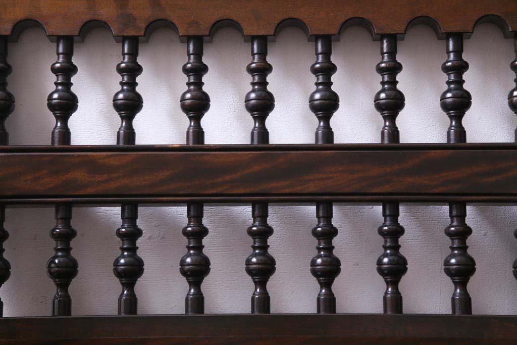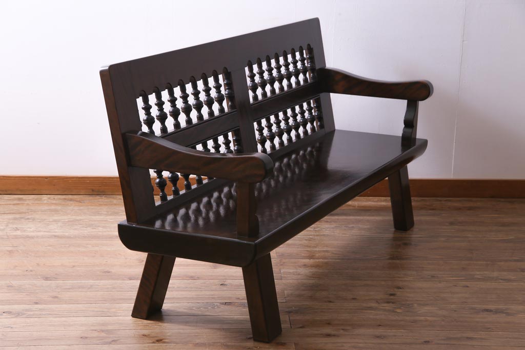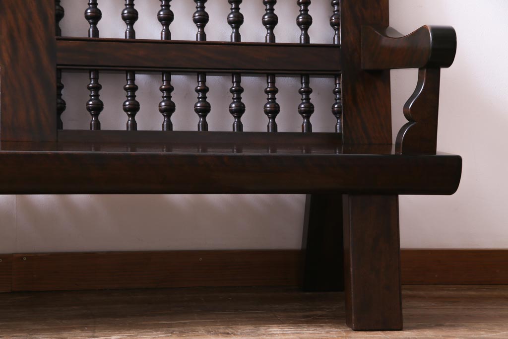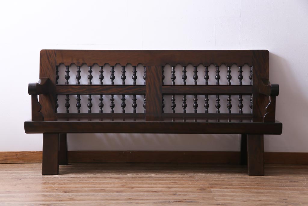 民芸家具 > ビンテージ 松本民芸家具 厚みのある一枚板を座面に使ったスピンドルバックベンチ(長椅子)(定価約85万円)